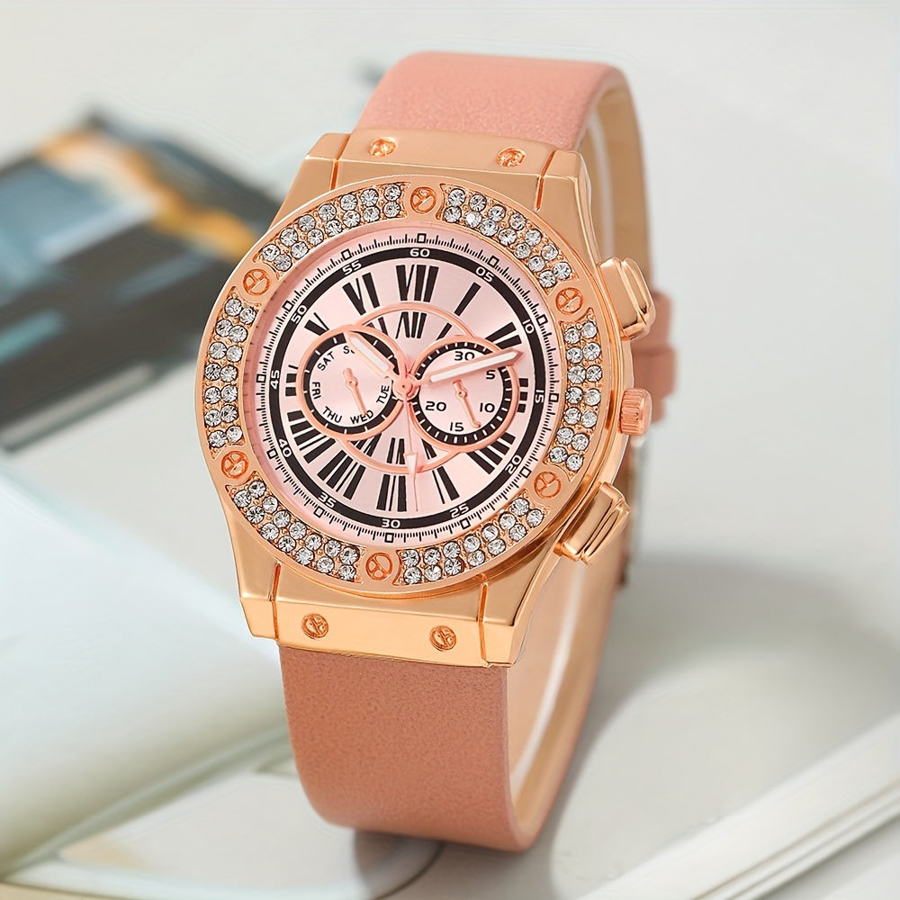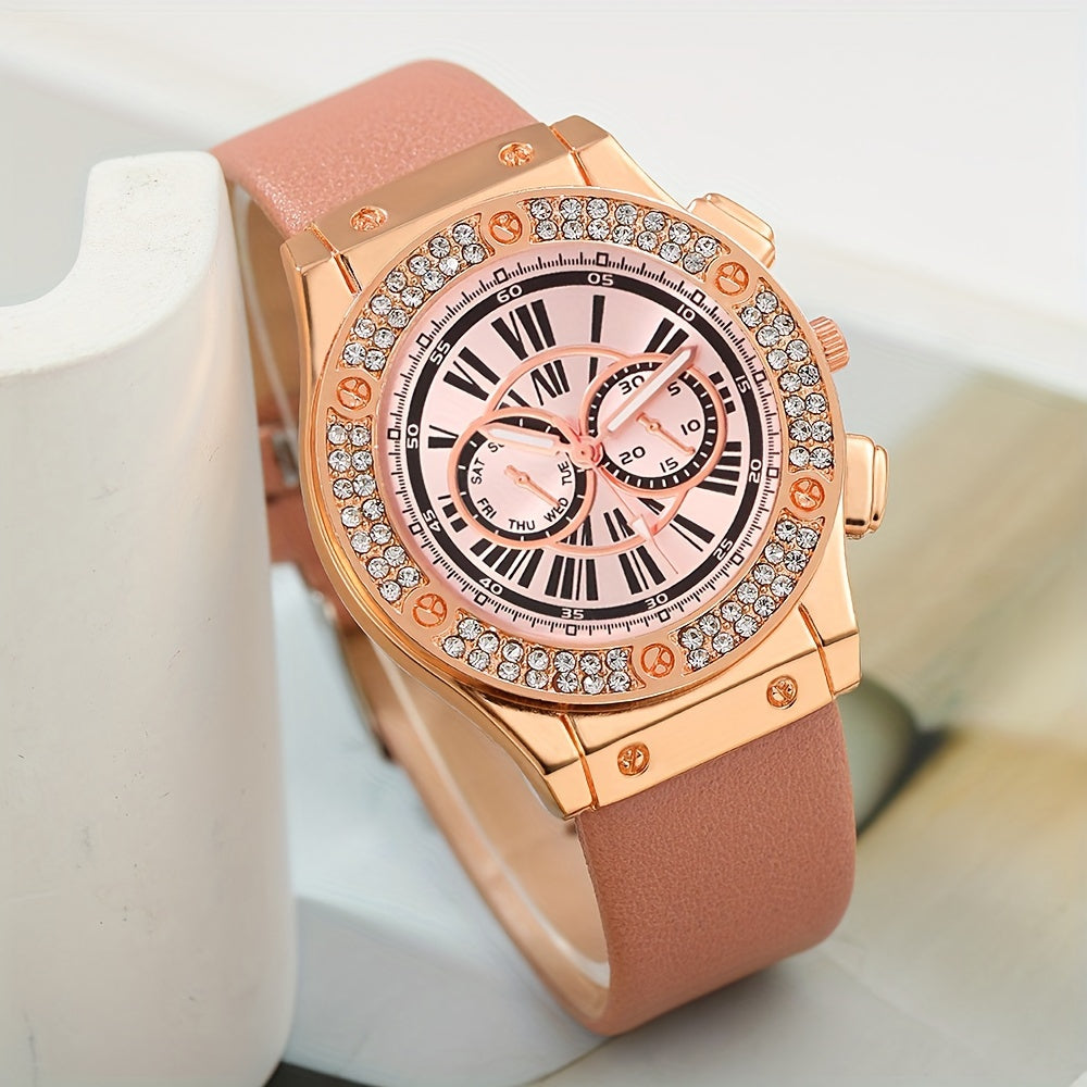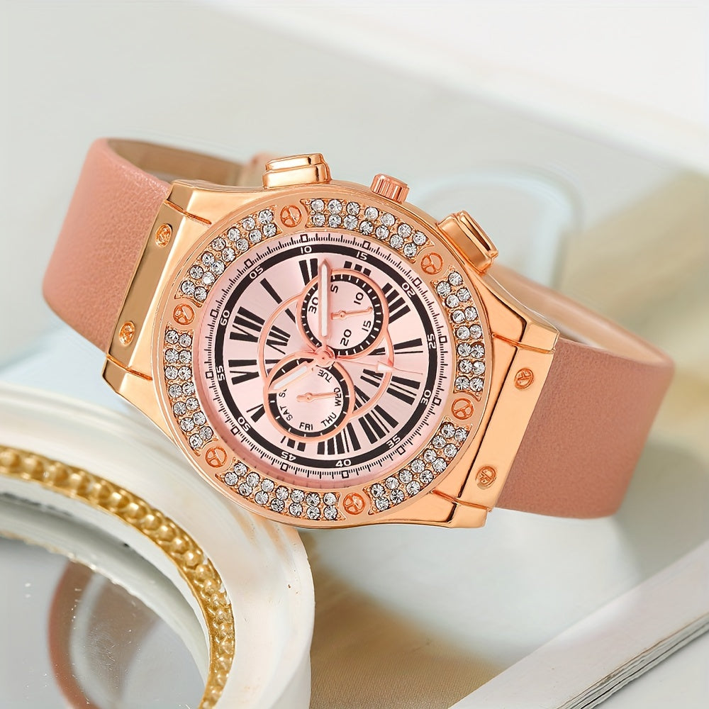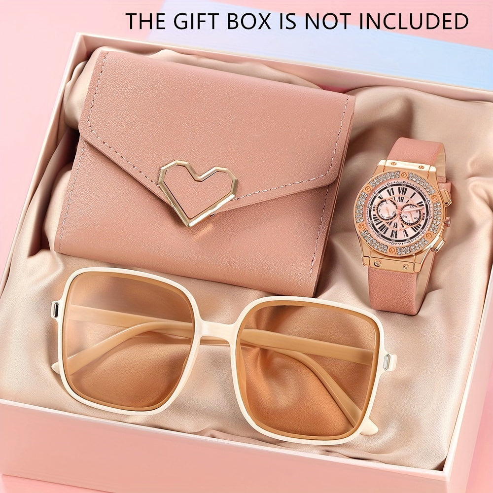 Ayollar modasi soati to'plami, kvarts mexanizmi bilan yuradigan yurak hamyon va ko'zoynaklar bilan, 3 ta bo'lak