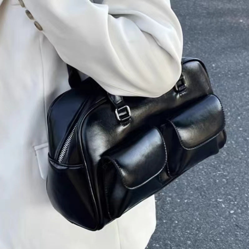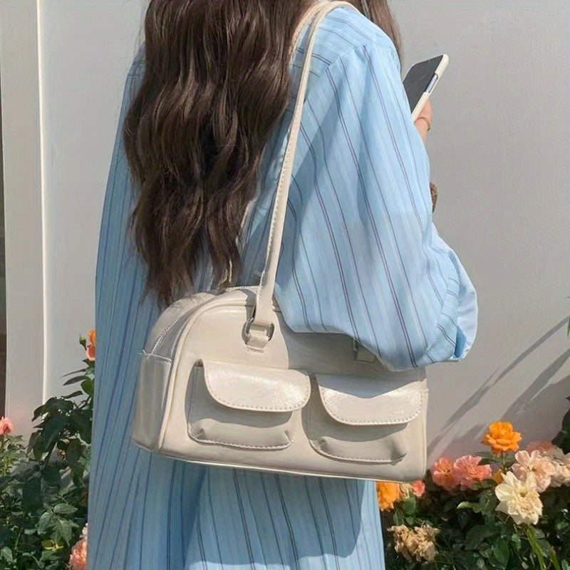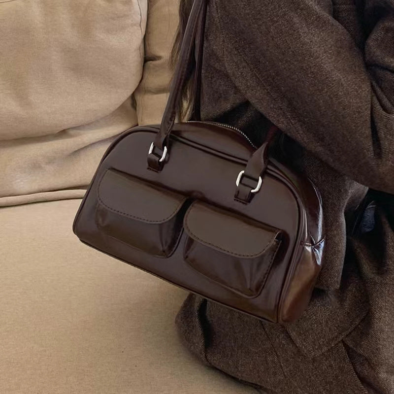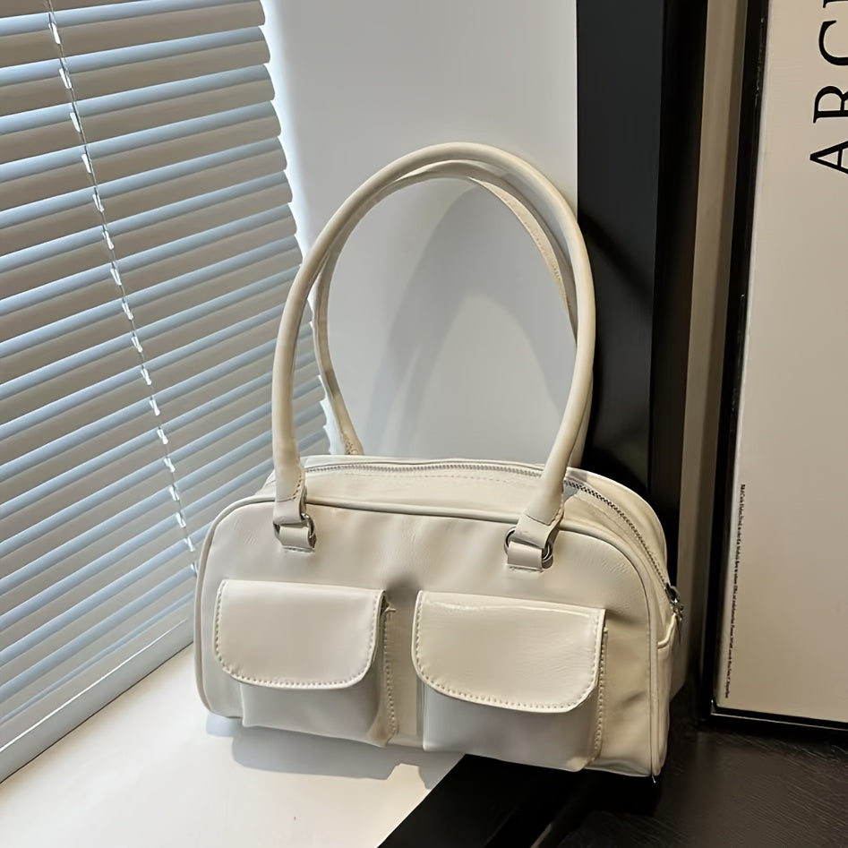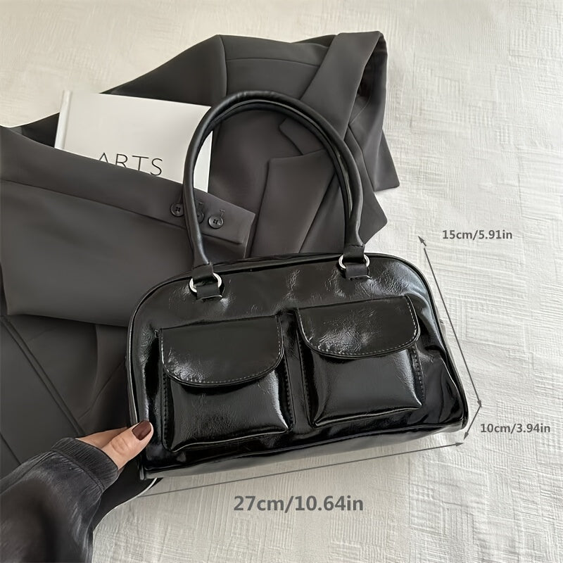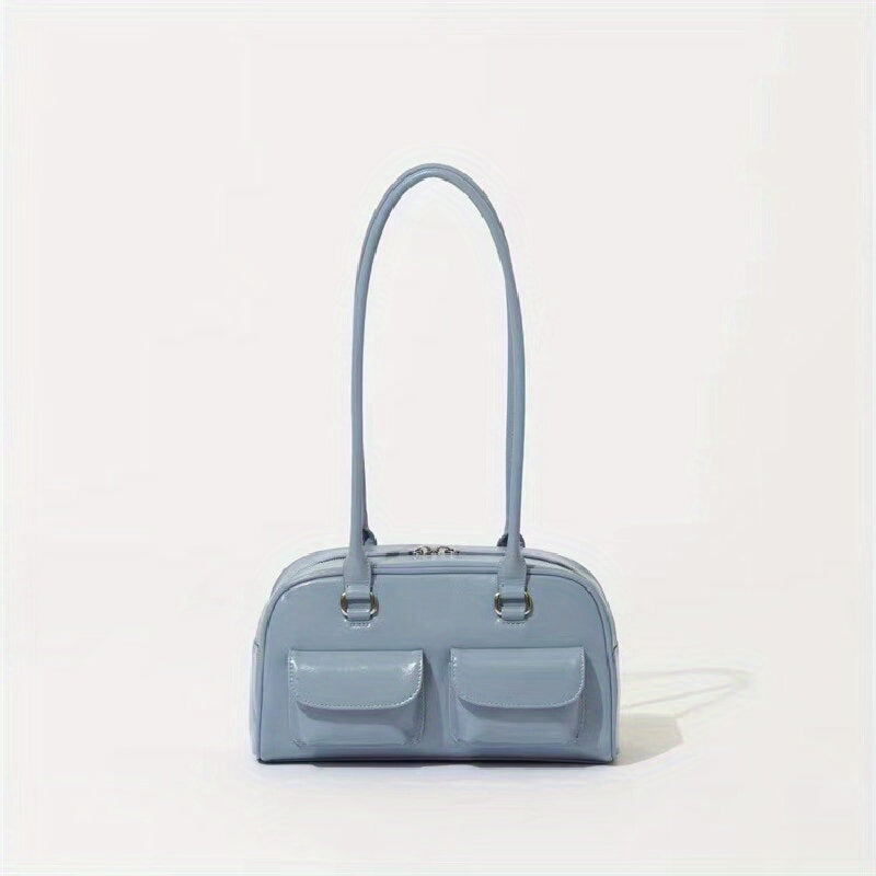 Zamonaviy ayollar uchun retro yelka sumkasi, katta sig'imli, porloq qoplama, zip yopilishi, bir rangda (qora/kolada/oq/ko'k). Ishga borish va har kuni foydalanish uchun ideal, yangilik sumkasi.