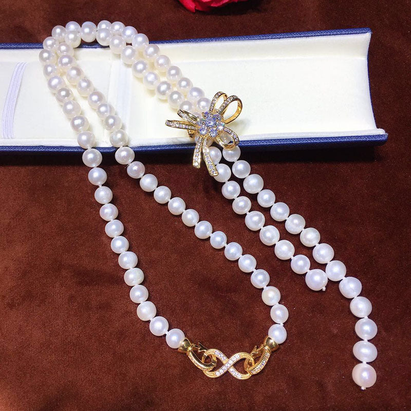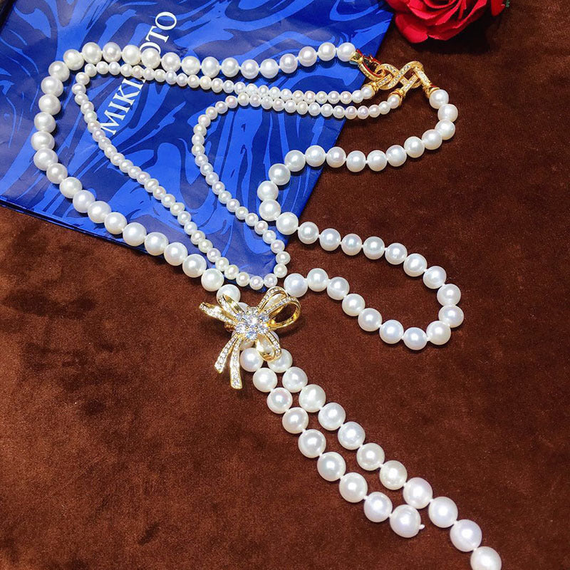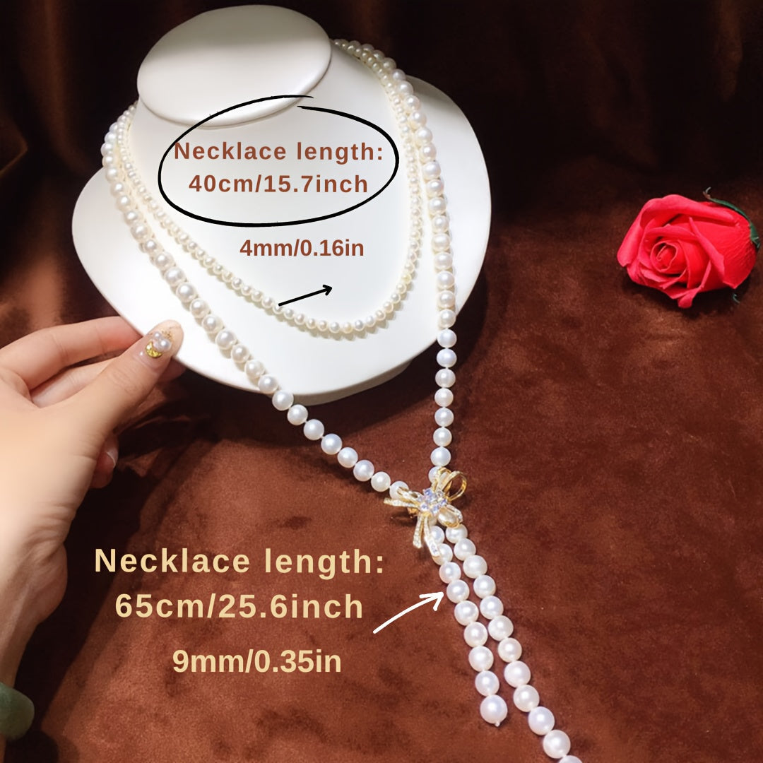 Tabiiy shirin suv marvaridlari bilan bezatilgan zamonaviy Y-zanjir, yoqimli dizayn, har kuni kiyish uchun mukammal, 14-fevral va Onalar kunida sovg'a berish uchun ajoyib.