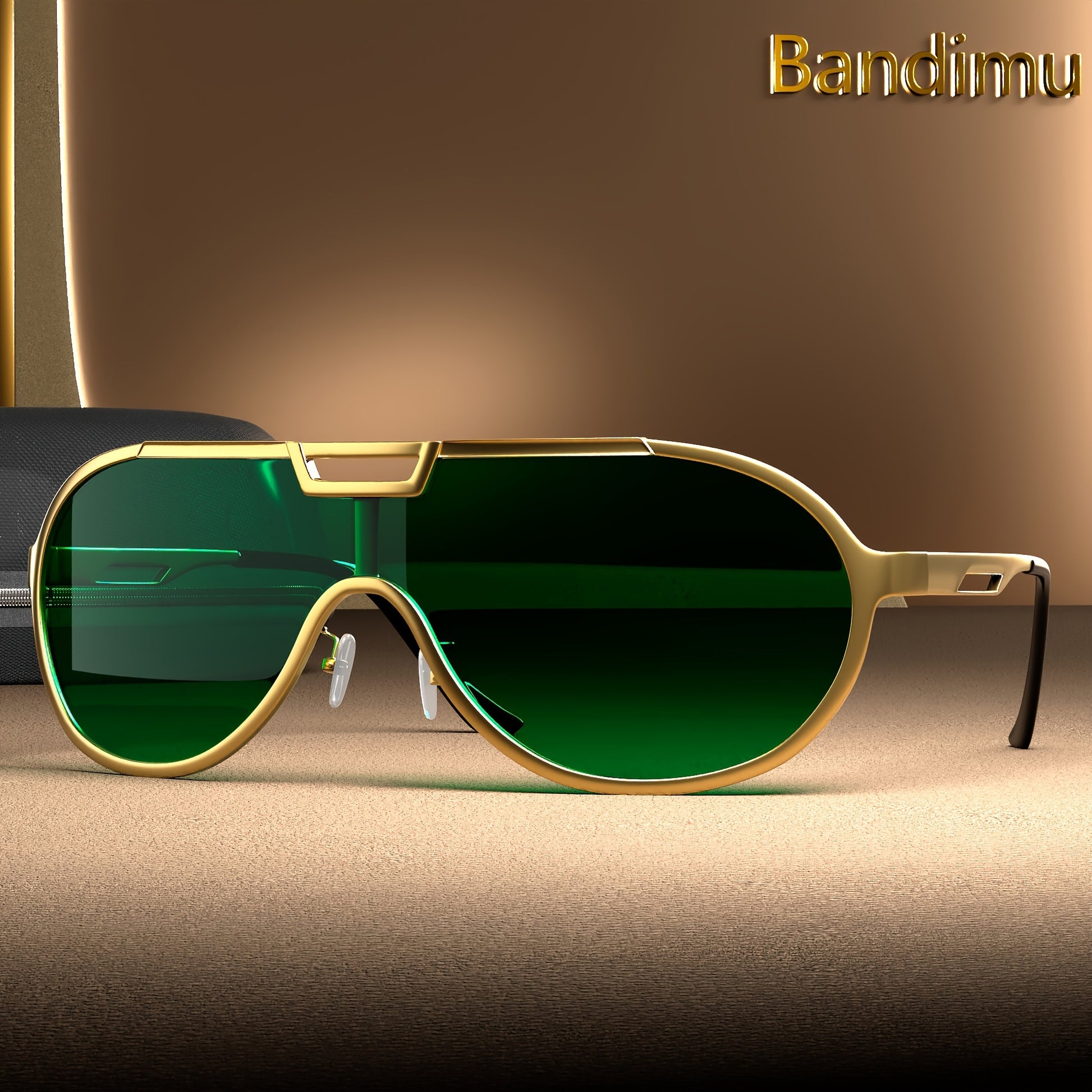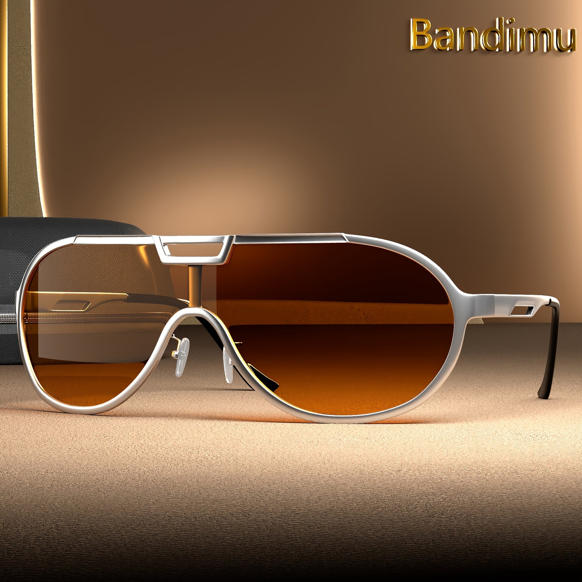 Tashqarida velosiped va ko'chalar uslubiga mo'ljallangan katta o'lchamli oltin ramkali quyosh ko'zoynaklari, himoya qutisi bilan