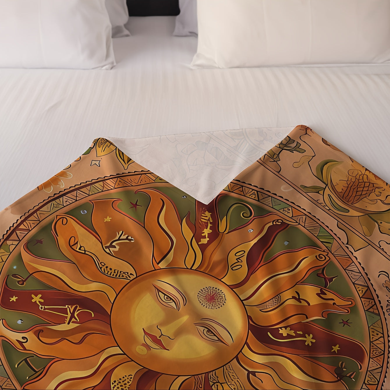 "Quyosh naqshli bosma tashqi ko'rpa, yumshoq va plush polyester to'qima matodan tayyorlangan. Zamonaviy uslub uchun raqamli bosma xususiyatlariga ega. Divan, yotoq, ofis, lagerda yoki sayohat paytida foydalanish uchun mukammal. Uy bezatish uchun ideal va"