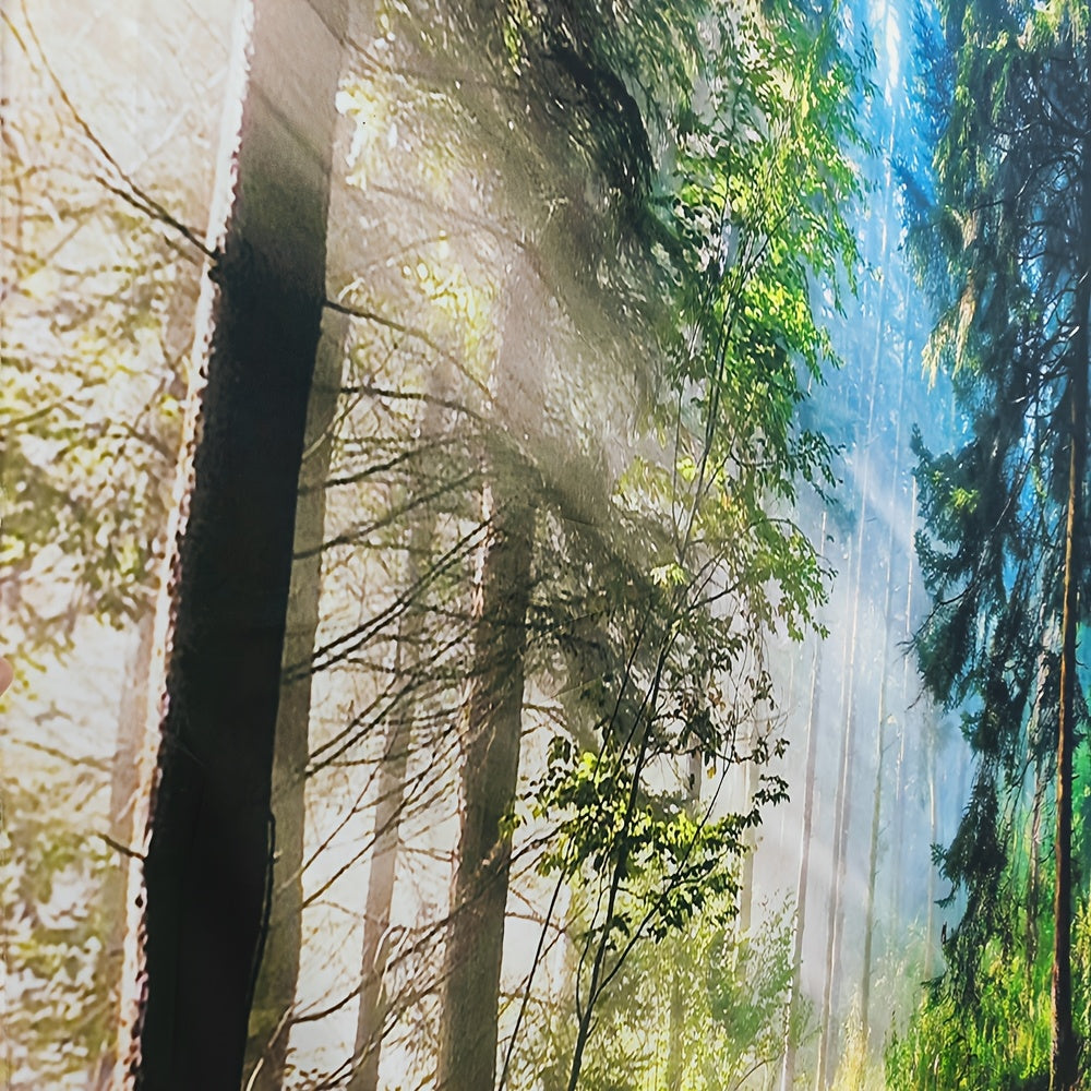 Sizning ichki yotoqxonangiz uchun 6 juft o'rnatish to'plami bilan birga keladigan, chiziqli naqshga ega bo'lgan, cho'zilgan polyesterdan tayyorlangan super katta o'rmon manzarasi fon bezak.
