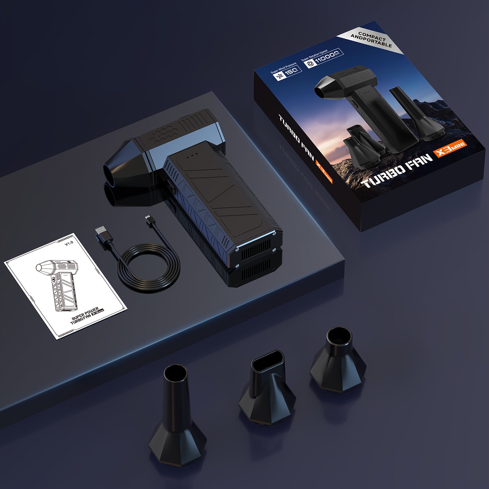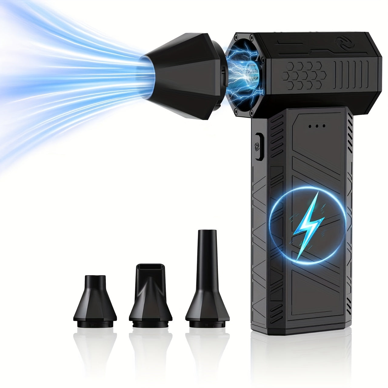 Brushless Motor bilan Super Mini Turbojet Fan, Qo'lda ushlash uchun dizayn, Type-C tez zaryadlash, Quvvat ko'rsatkichi - Avtomobil, Uy, Kompyuter, Klaviatura uchun mos, Yuqori tezlikda kuchli turbina ventilyatori, Avtomobil changi
