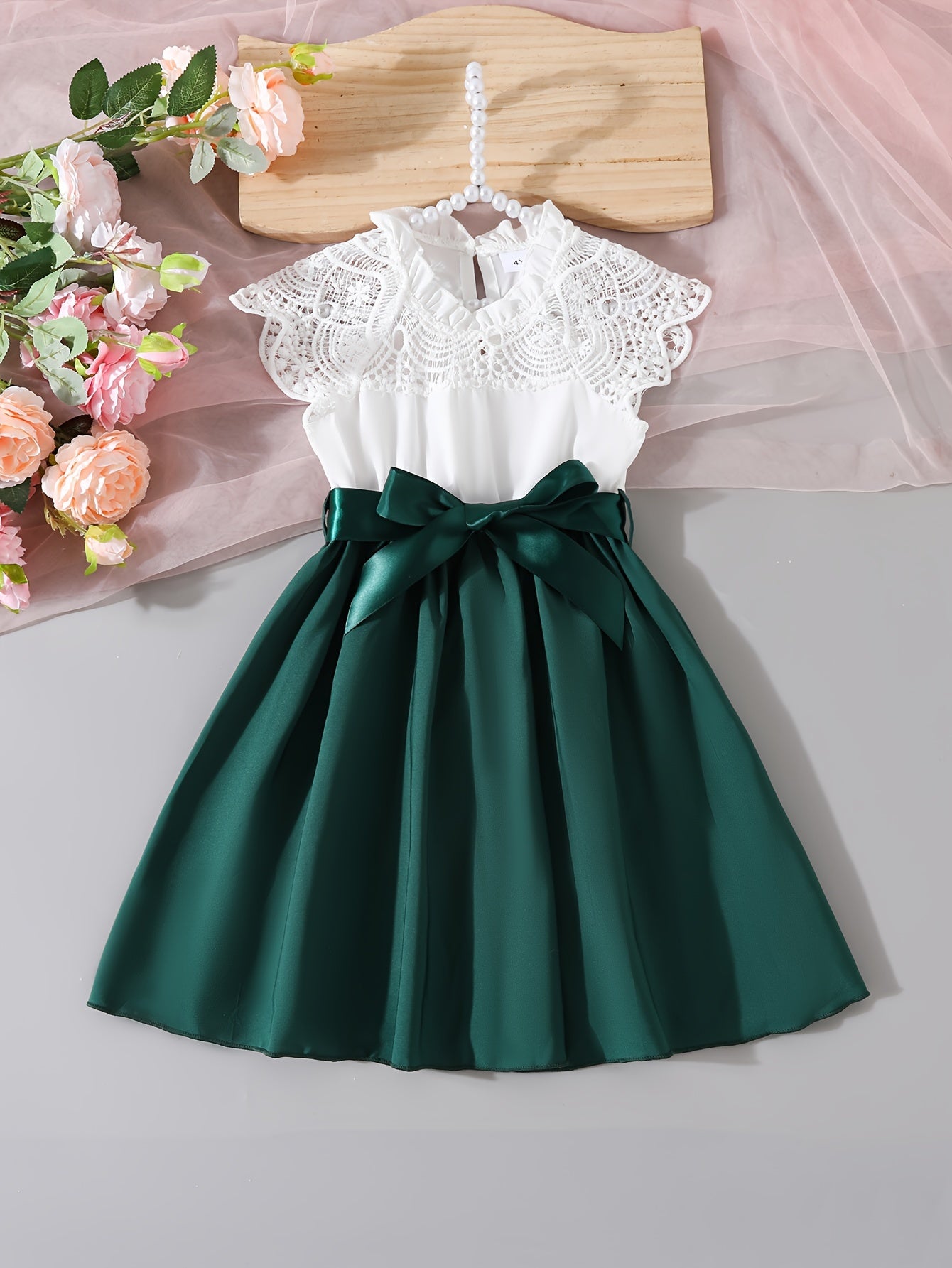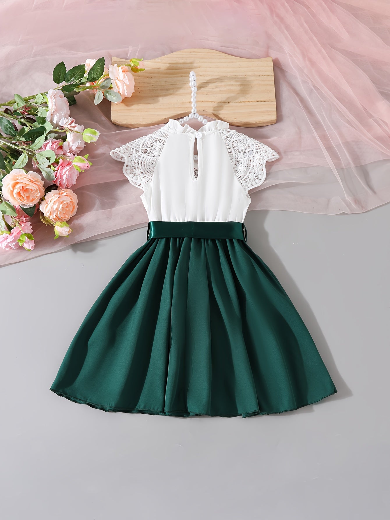 Shirin Qizlar Dantelli Yengsiz A-Line Yozgi Kiyim Belbog' bilan - Norasmiy kiyim uchun mukammal