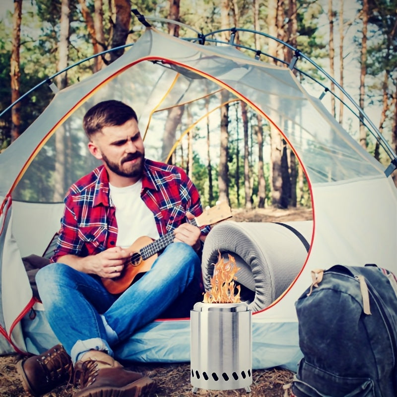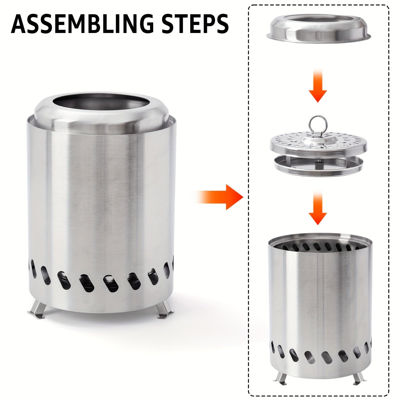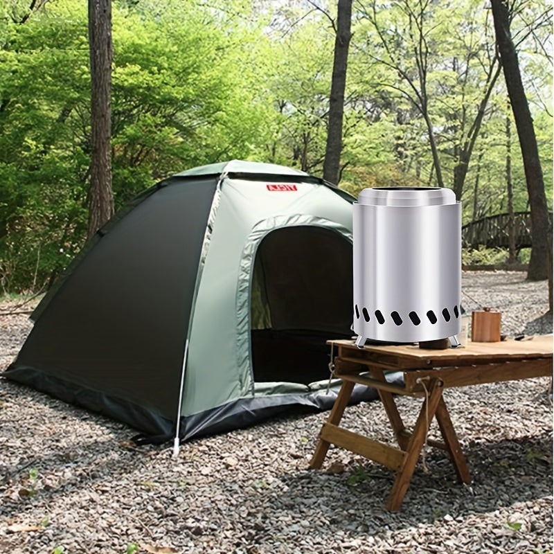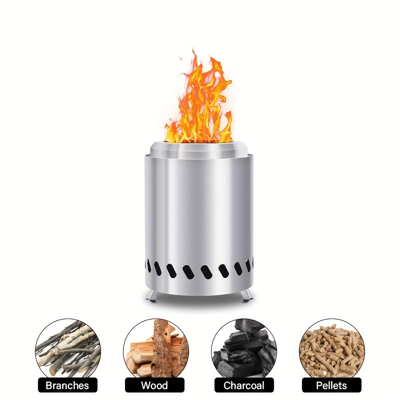 Stol usti olov pit, kichik va portativ, tutunsiz, yog'och yoki pelletlar bilan ishlaydi, zanglamaydigan po'latdan.