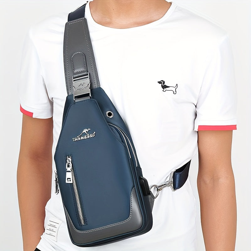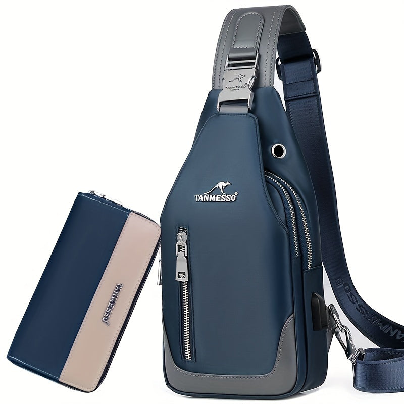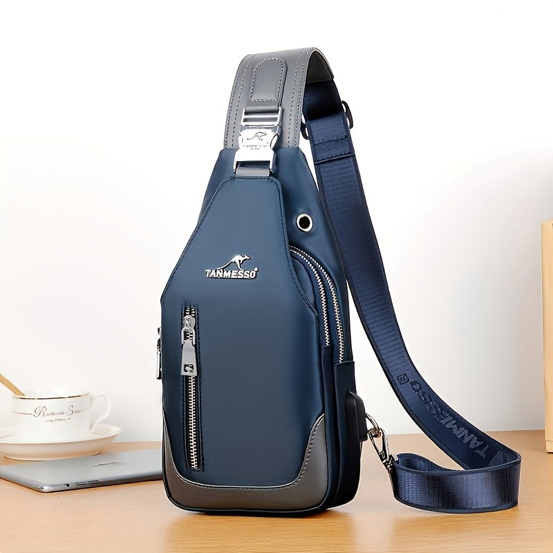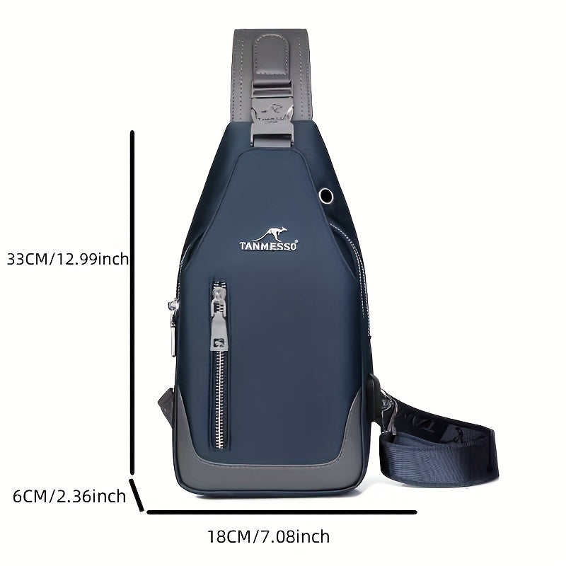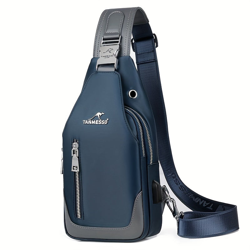 TANMESSO Erkaklar uchun Qora Ko'k Rangdagi Bir Necha Bo'limli Anti-O'g'irlik Oksford Ko'krak Sumkasi, Moslashtiriladigan Tasmali va Tasodifiy Chiqishlar uchun USB Porti