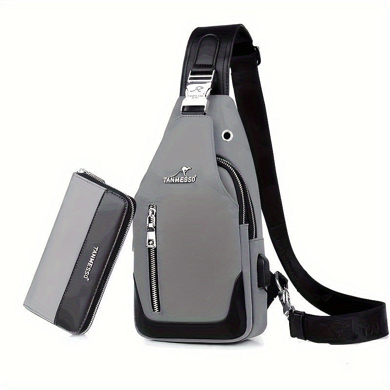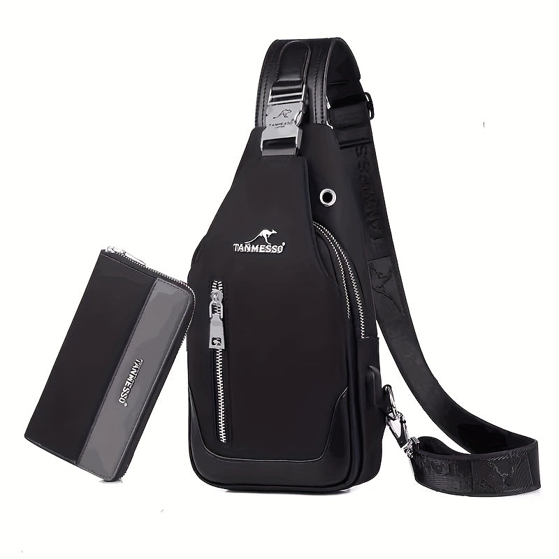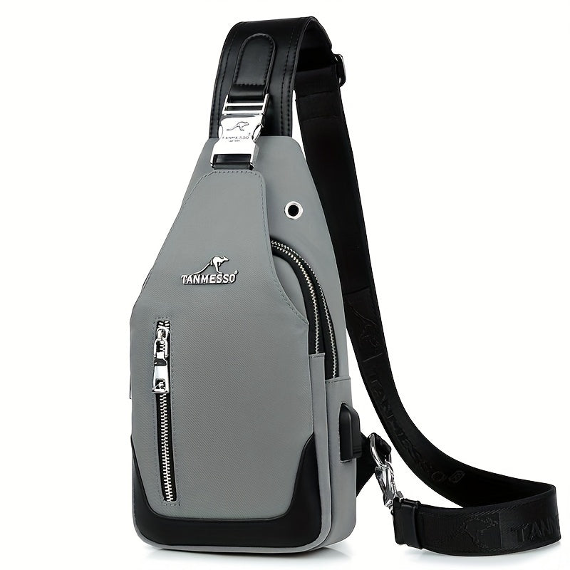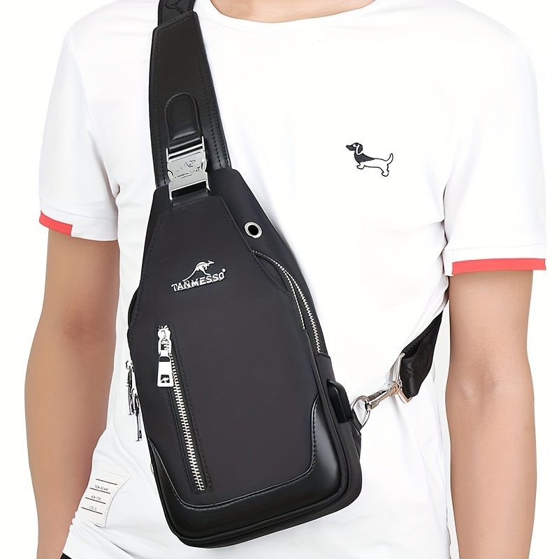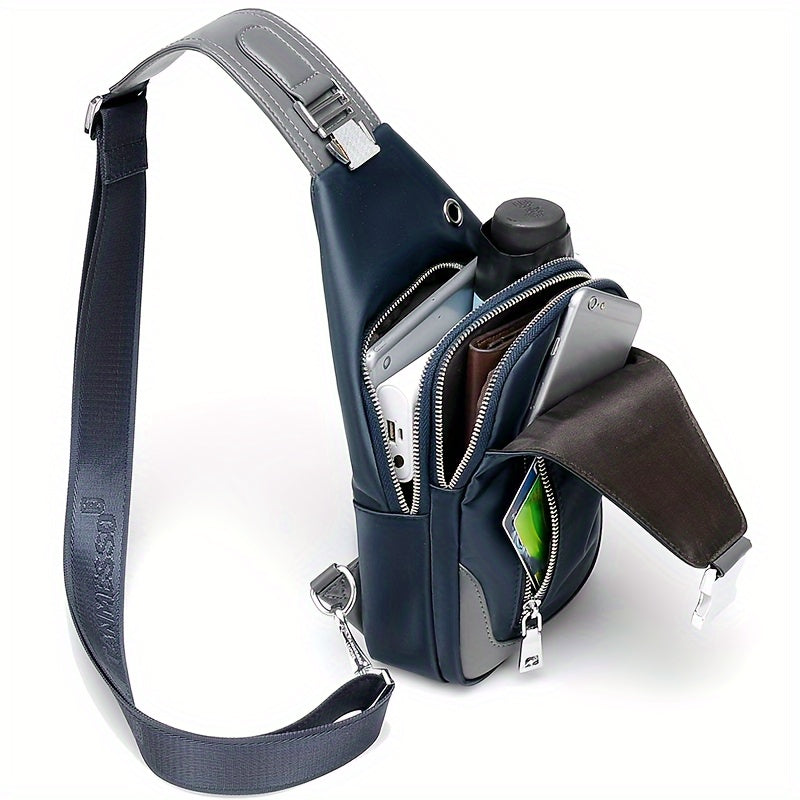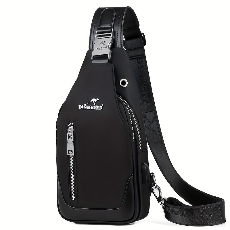 TANMESSO Erkaklar uchun Qora Ko'k Rangdagi Bir Necha Bo'limli Anti-O'g'irlik Oksford Ko'krak Sumkasi, Moslashtiriladigan Tasmali va Tasodifiy Chiqishlar uchun USB Porti