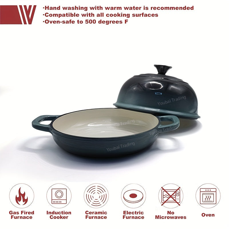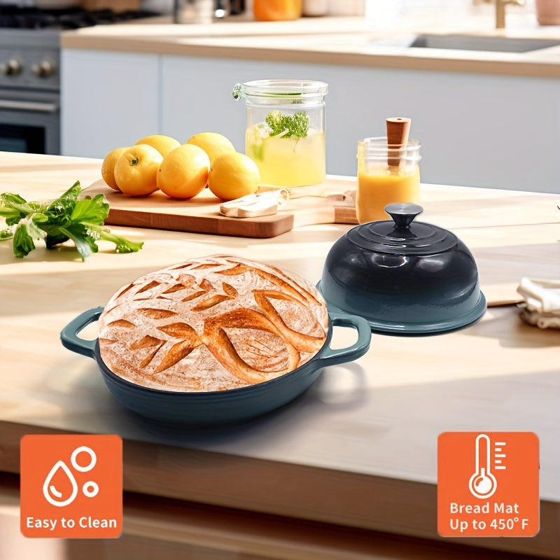 Teal/Oq Emal Qoplangan Qozon Non Pishirish Panasi - Yopishqoq Dumaloq Non Tayyorlovchi - Uyda Non va Shirinliklar Pishirish uchun Ajoyib - Mukammal Oshxona Sovg'a Variant