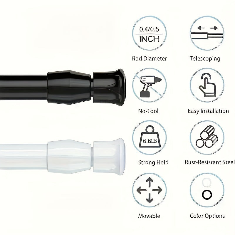 Oʻzgaruvchan teleskopik tayoq eshiklar, derazalar, hammom, oshxona, quritish va bezak uchun