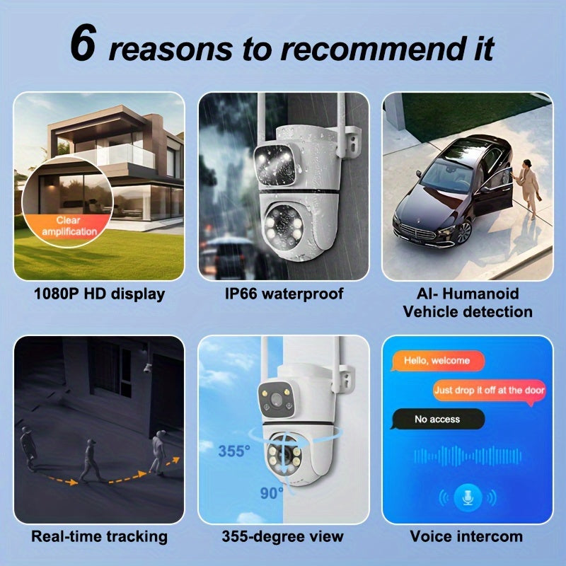 1080P WiFi Xavfsizlik Kamerasi Ichki Tashqi Suv o'tkazmaydigan Panoramik 355° Kechqurun Ko'rish