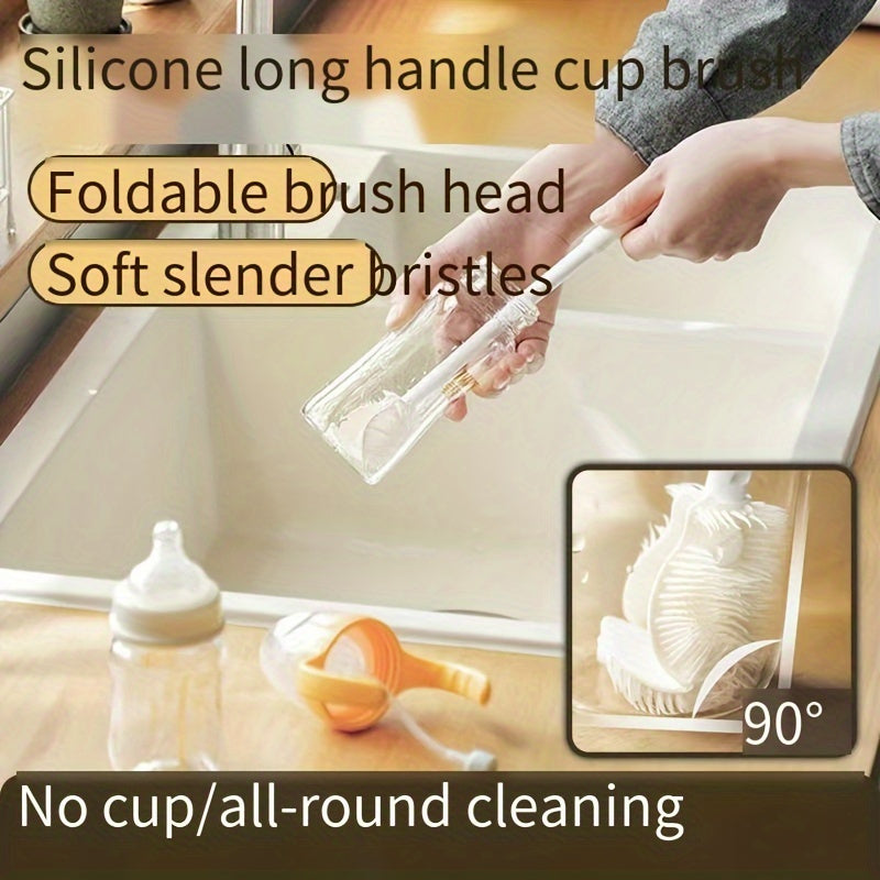 Uzun tutqichli yig'iladigan stakan cho'tkasi, suv idishlari va bo'shliqlar uchun yumshoq silikon tikanlar bilan