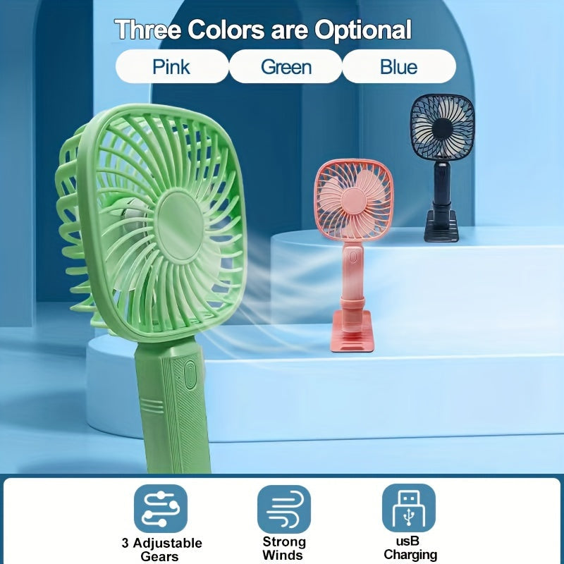 USB bilan qayta zaryadlanadigan qoʻl minifanasi, 3 tezlik bilan, portativ, bardoshli plastmassa