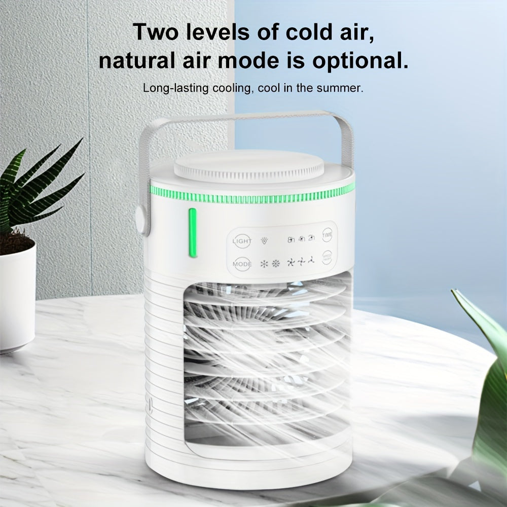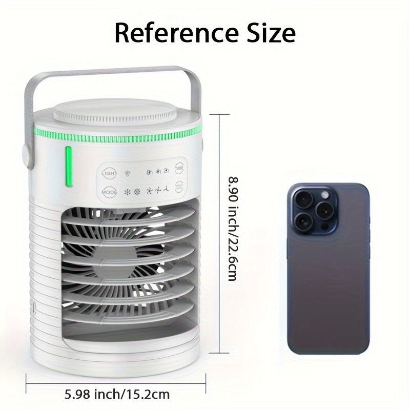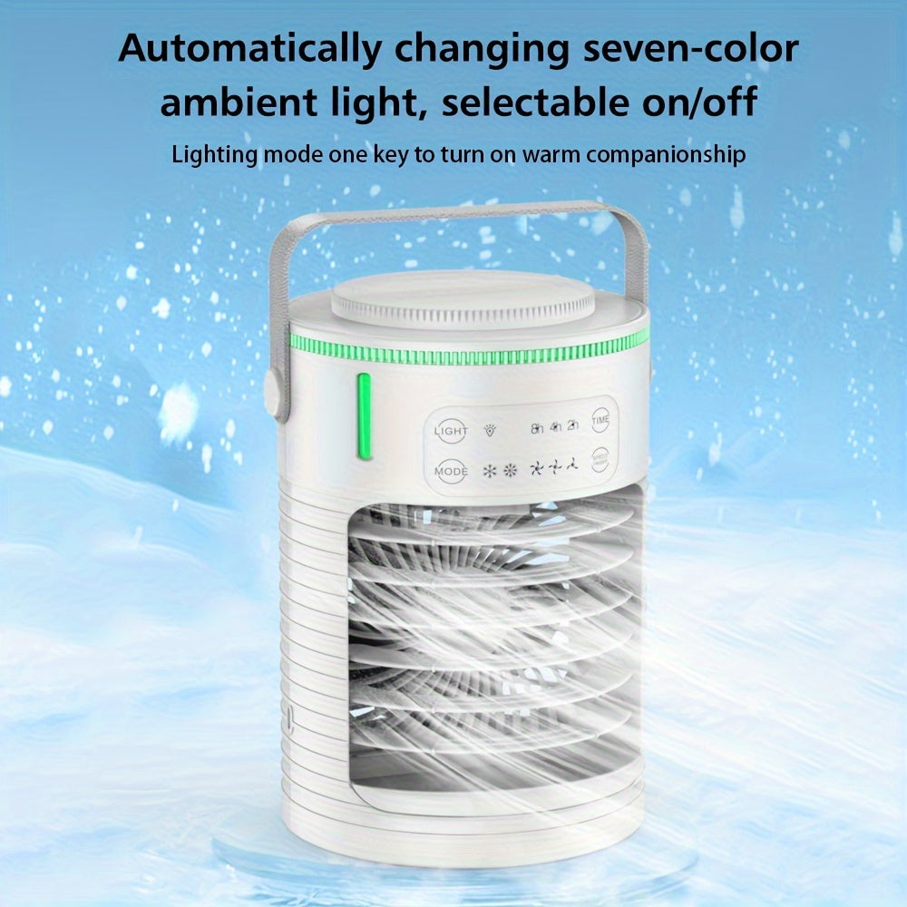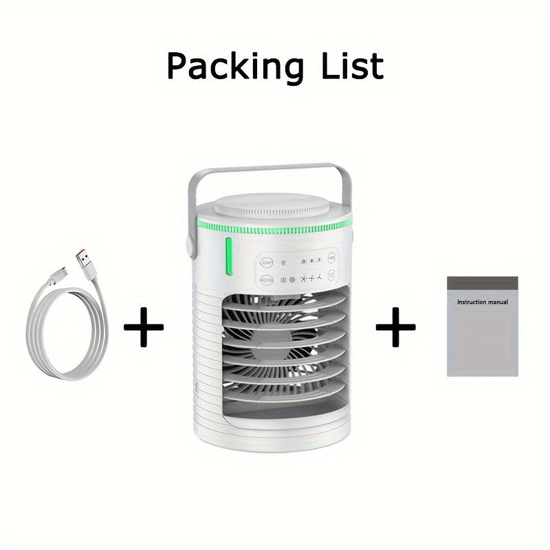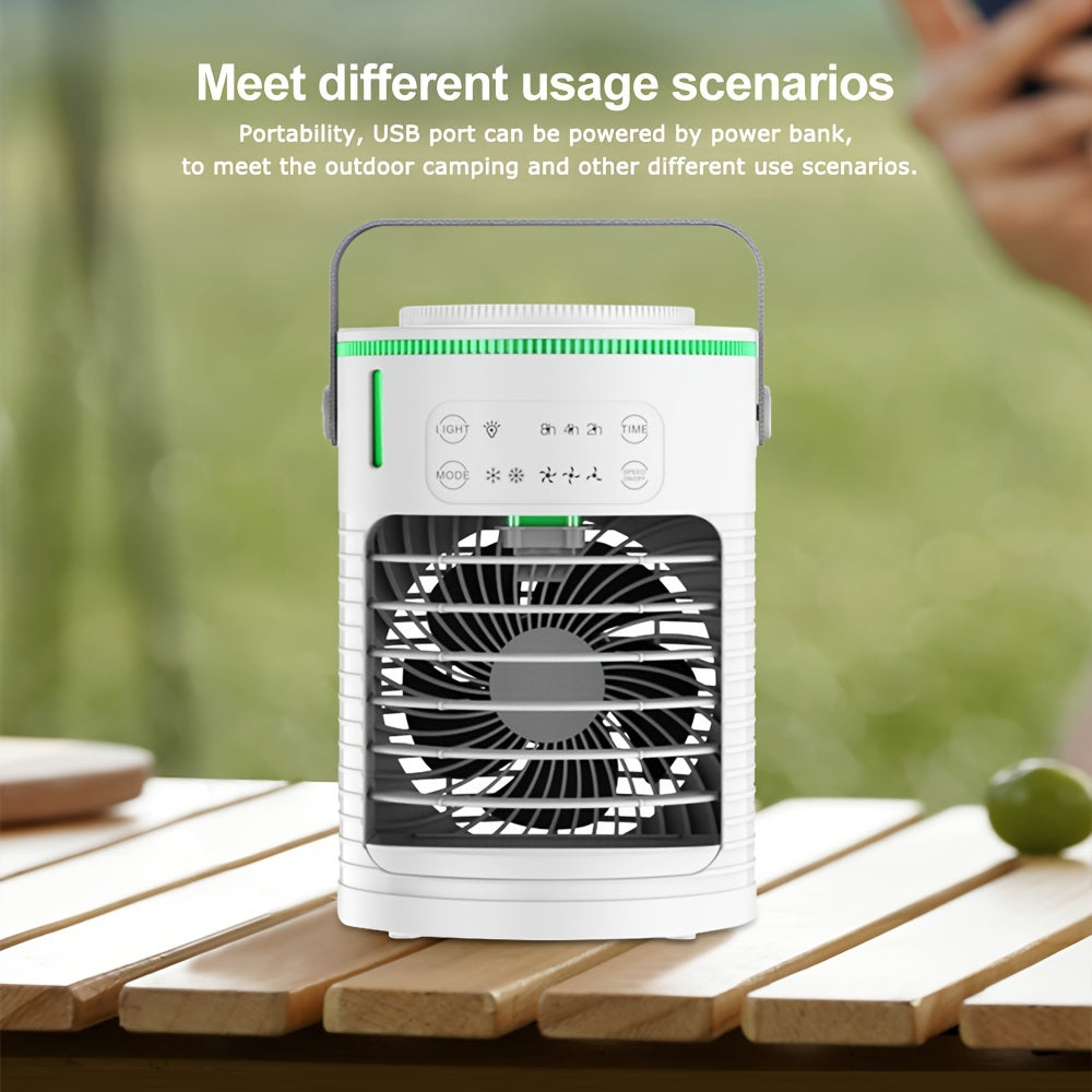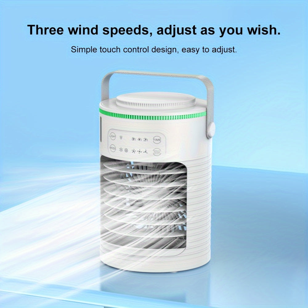 Rangli chiroqlar bilan portativ mist ventilyatori, 3 tezlik, USB quvvati, sensorli boshqaruv