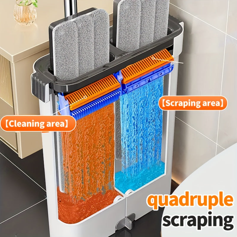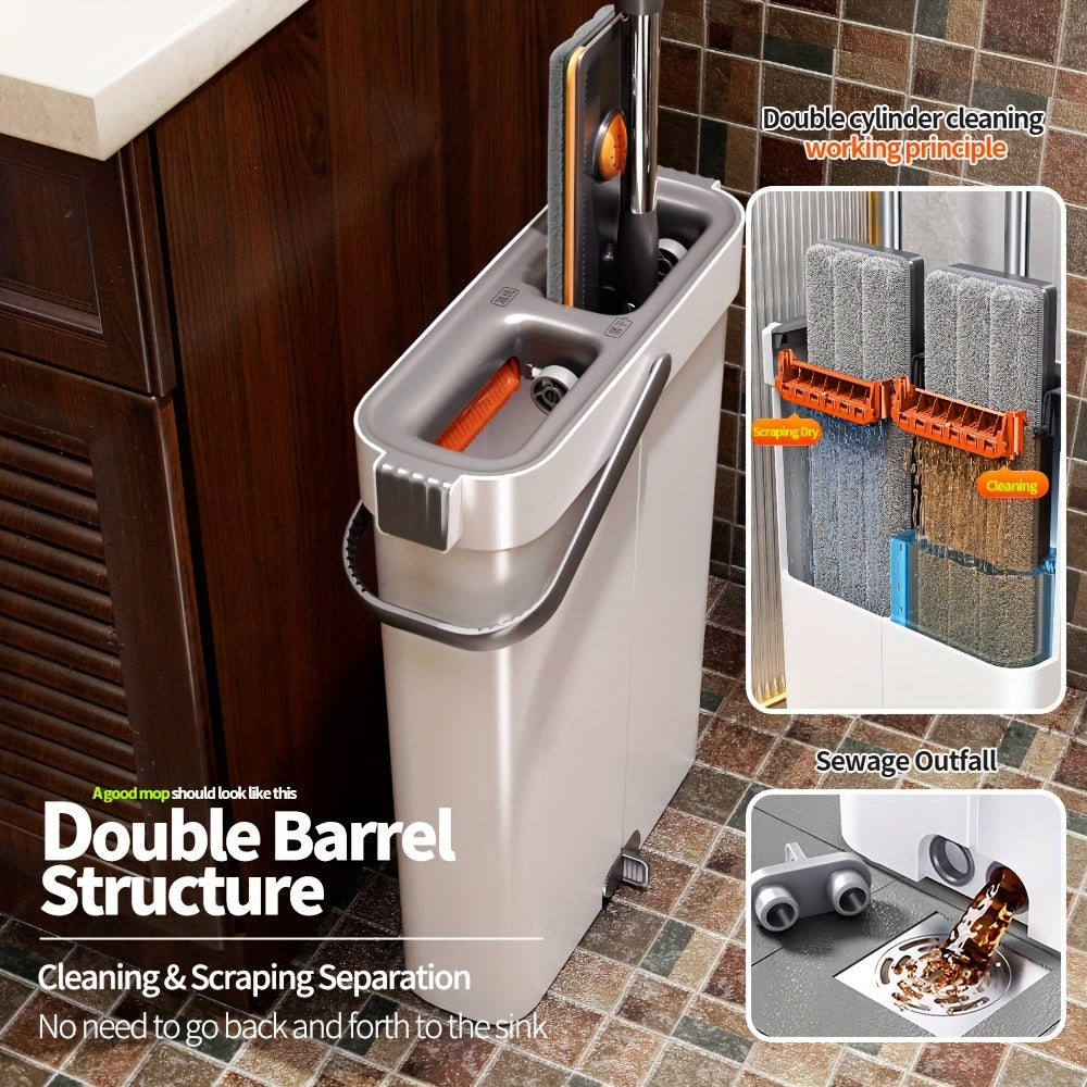 Ikki barrelli mop va qopqoq to'plami 33 sm zanglamaydigan po'latdan yuvish va quruq tekis moplar