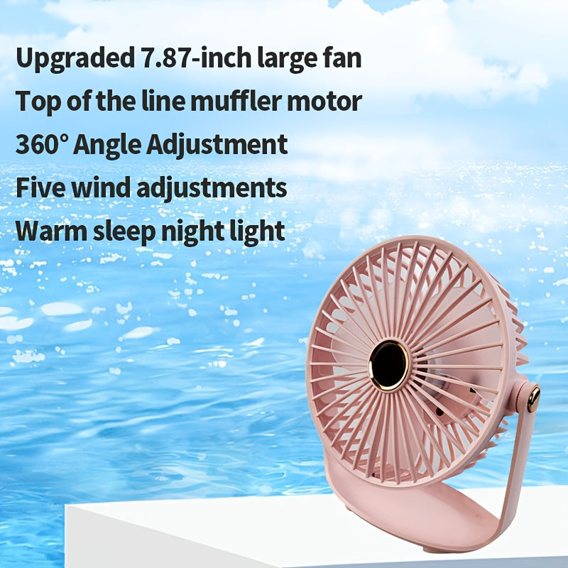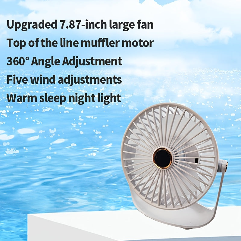 Jkuoo portativ stol ventilyatori maksimal qamrov uchun 360° aylanish xususiyati bilan jihozlangan. Uning tinch brushless motoru tinch ishlashni ta'minlaydi, 5 tezlikni sozlash imkoniyati esa shaxsiy qulaylikni ta'minlaydi. Ventilyator shuningdek, qulay...