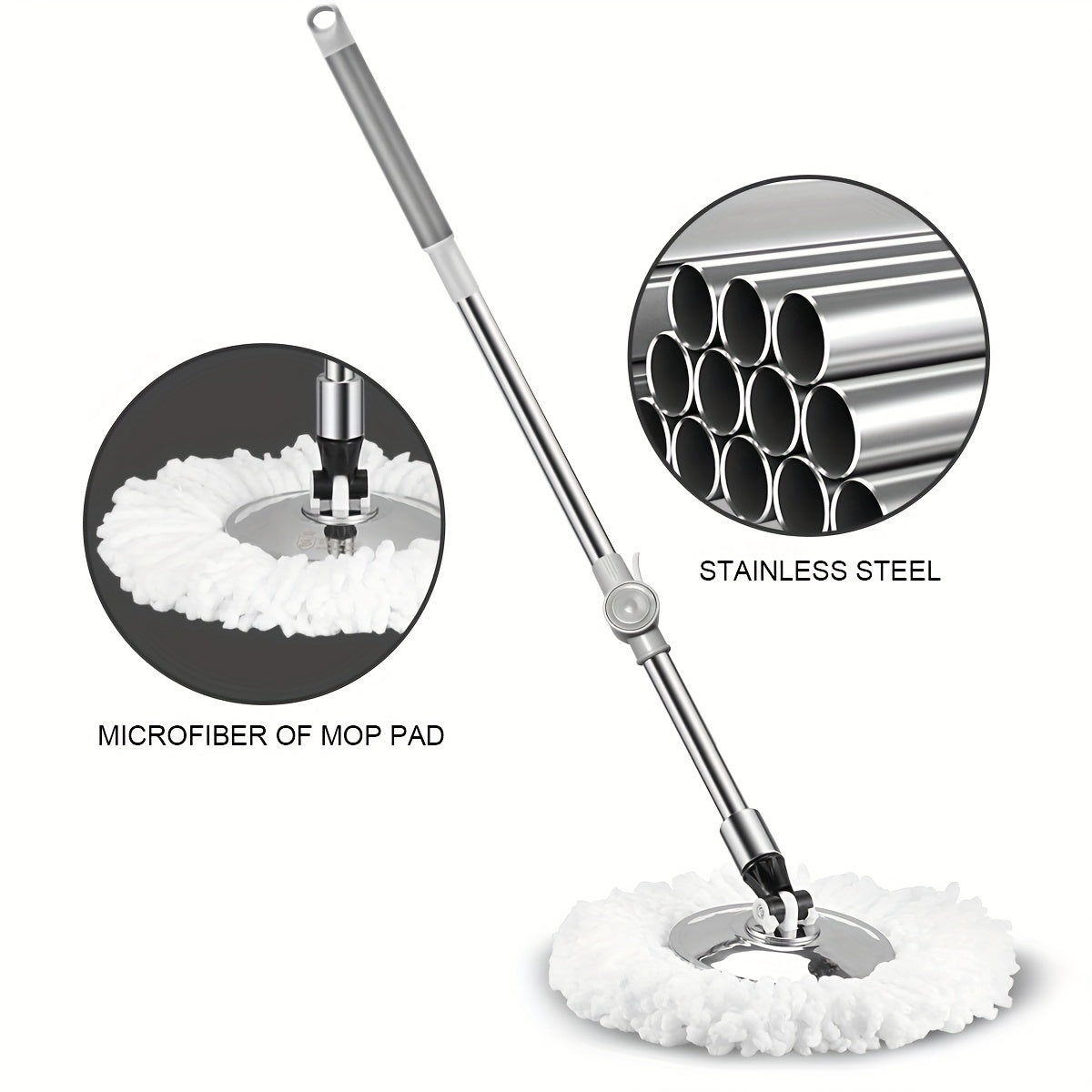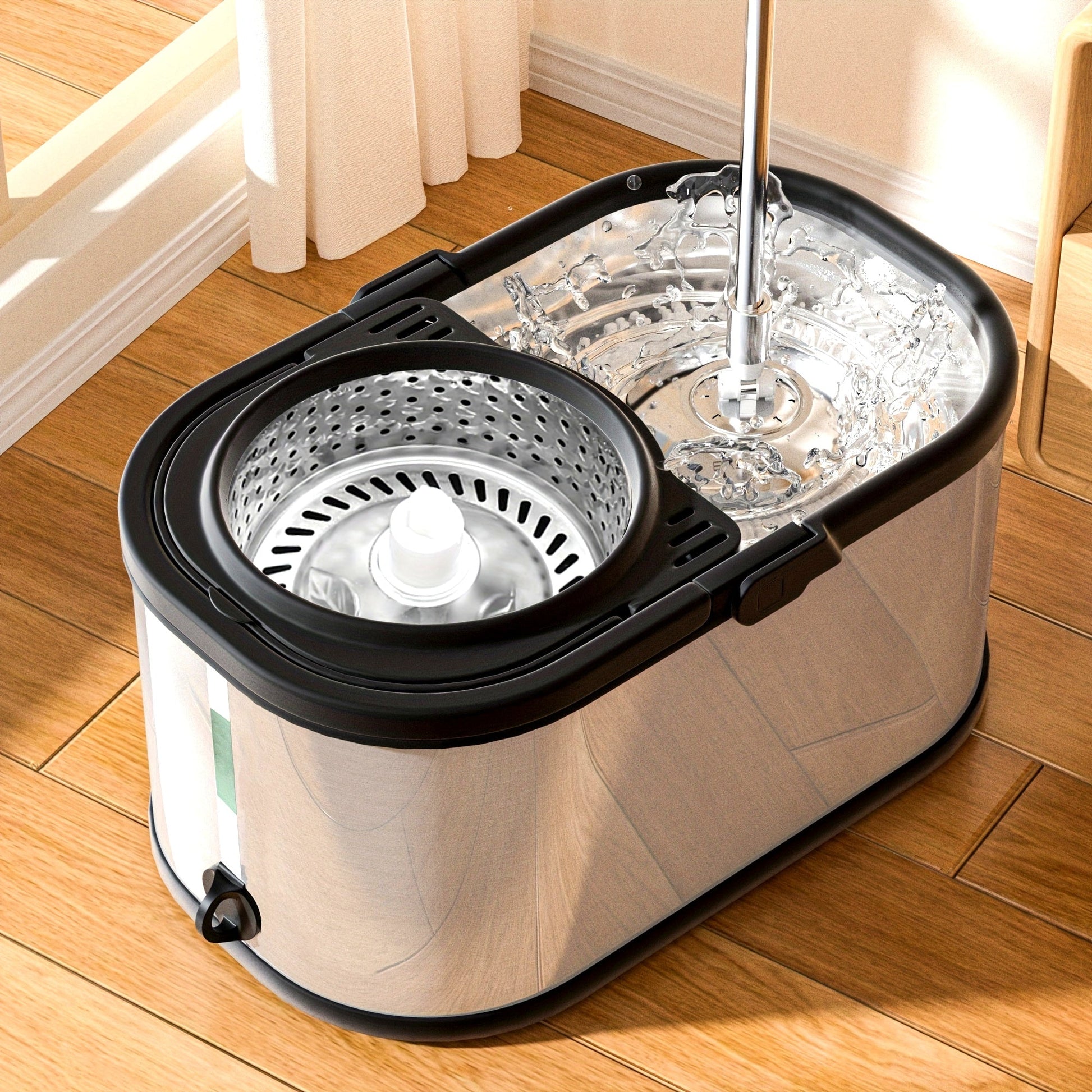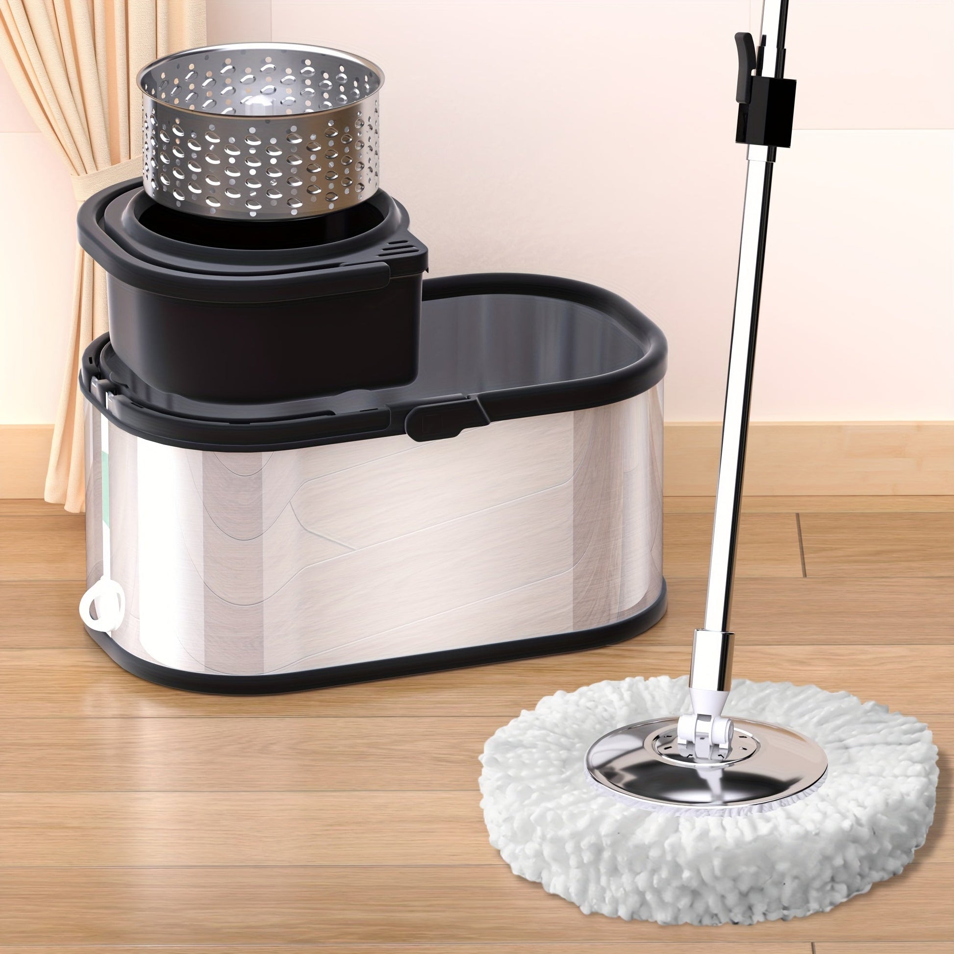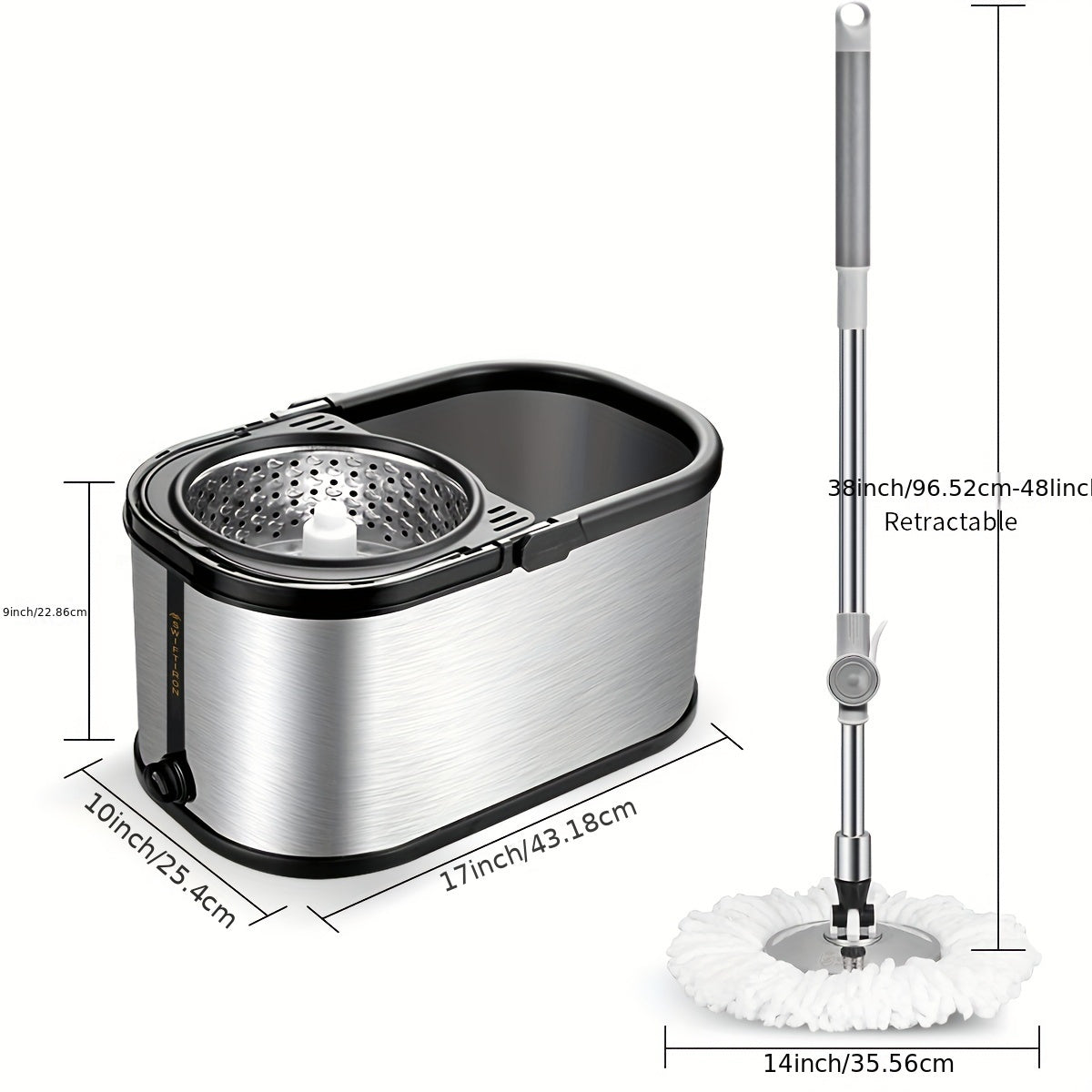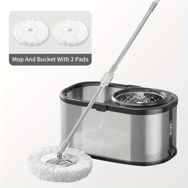 Qayta ishlatiladigan yostiqlari bilan zanglamaydigan po'latdan yasalgan Spin Mop va kova to'plami, ho'l va quruq pol uchun