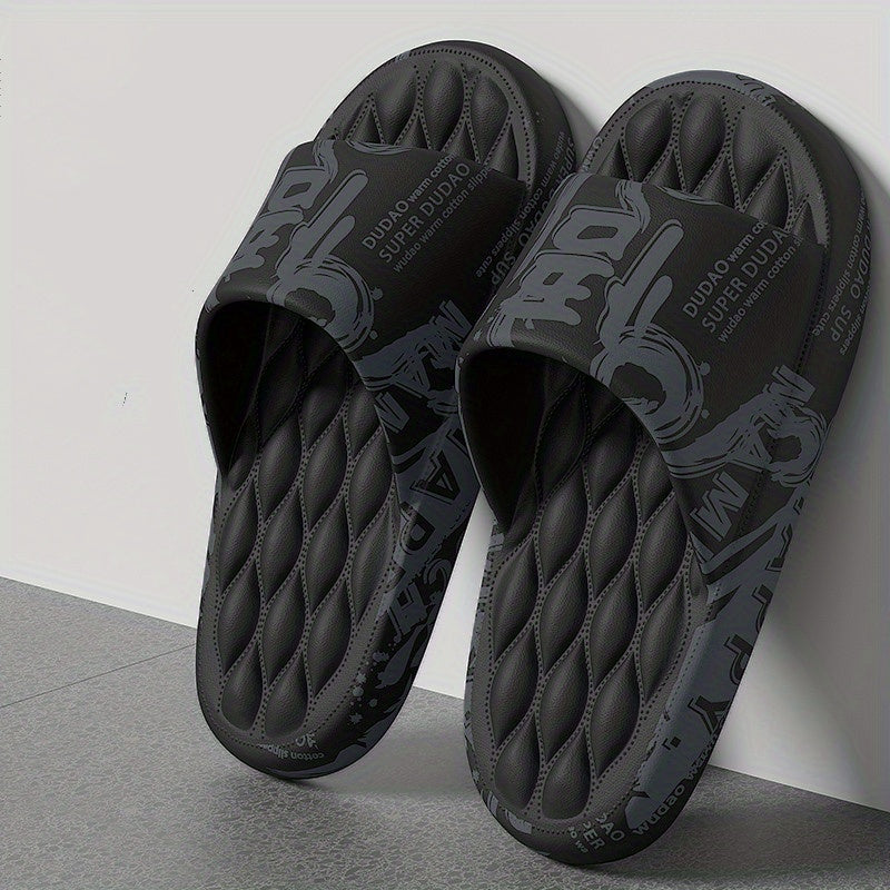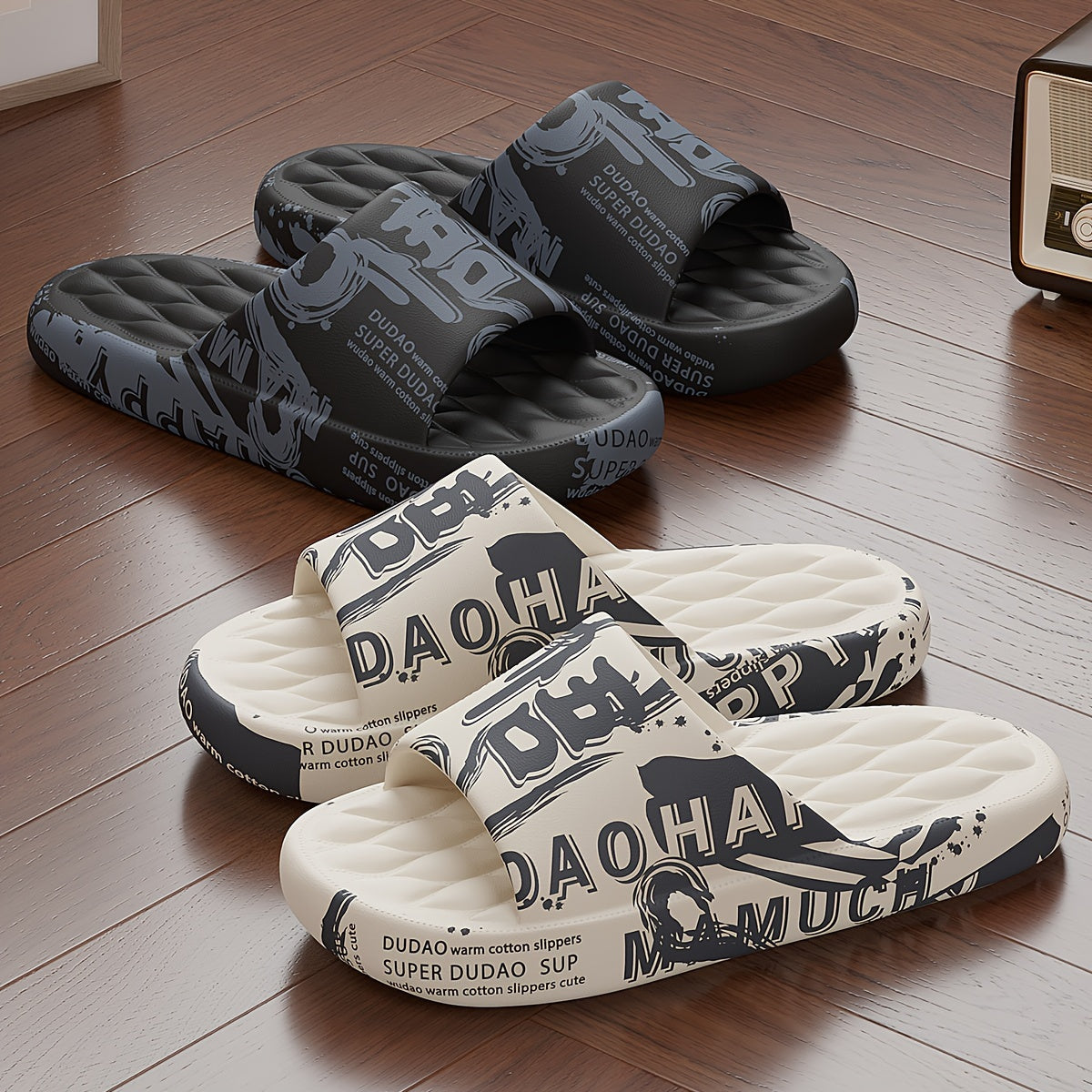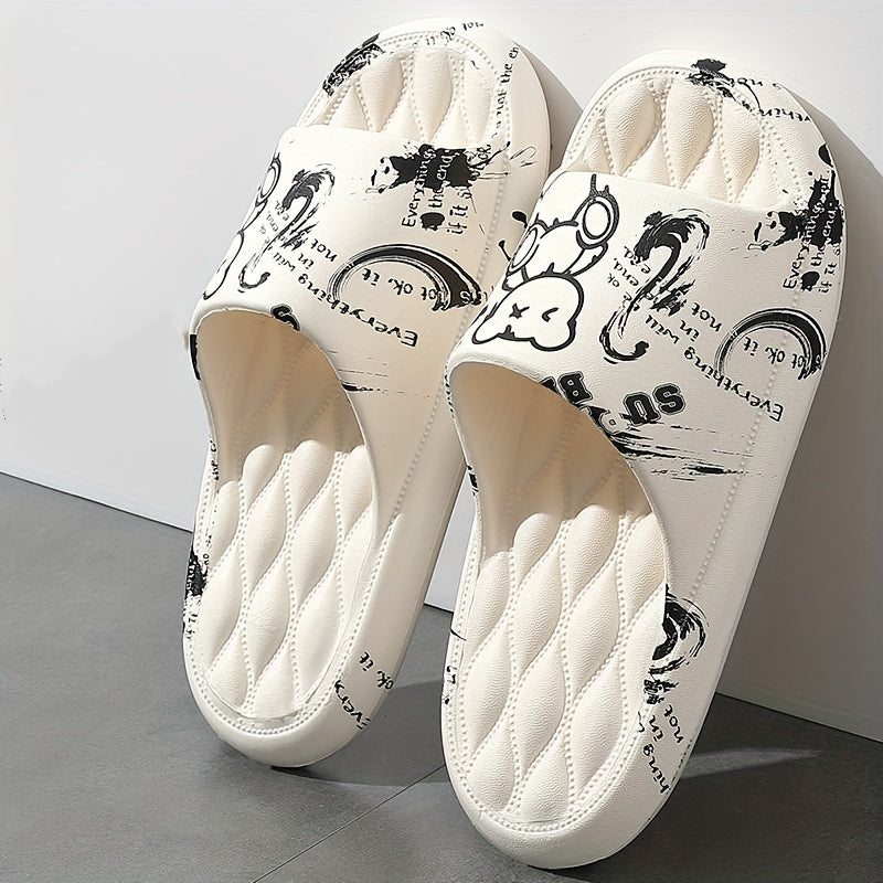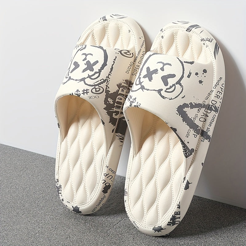 Bu katta o'lchamdagi erkaklar yozgi sandallari, ichki va tashqi joylarda kiyish uchun mo'ljallangan, qalin, sirpanmaydigan taglikka ega va multfilm dizaynlari bilan bezatilgan.