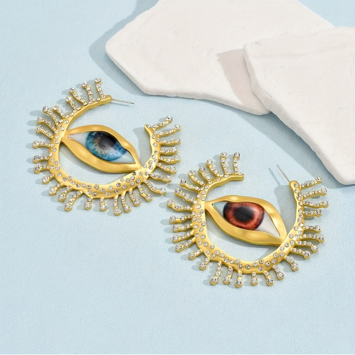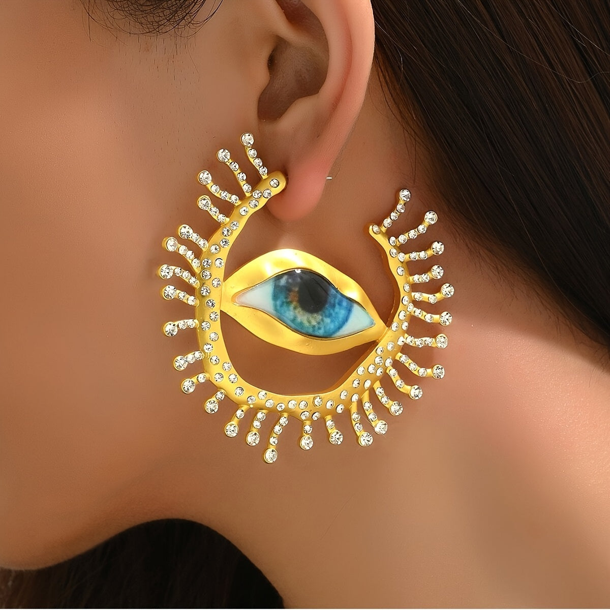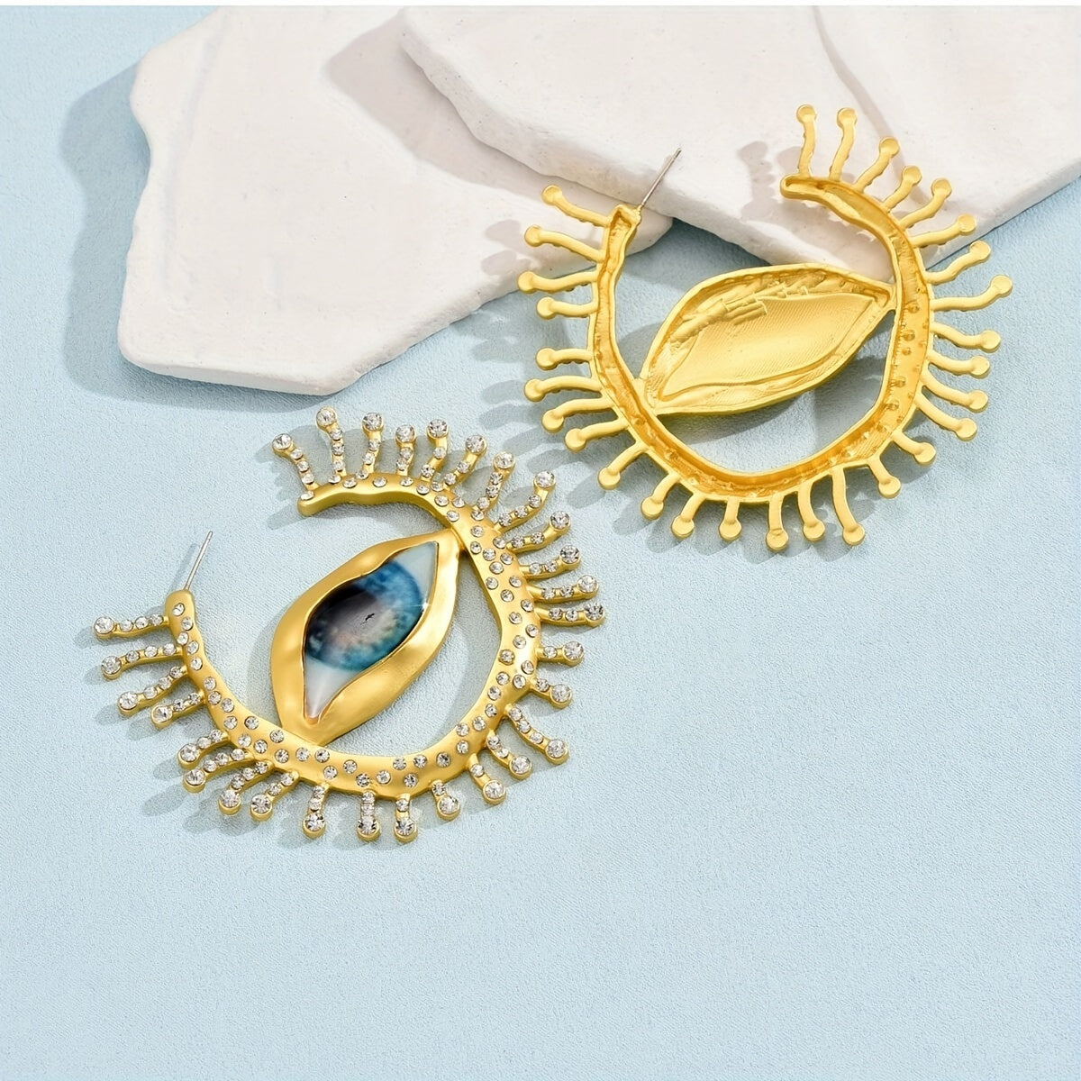 Ushbu punk uslubidagi bayonotli sirg'alar metall rhinestone'lar bilan oshirilgan ko'z shaklidagi dizaynga ega. Partiyalar, ta'tillar va har kuni kiyish uchun mukammal. Ushbu jasur osma sirg'alar bilan zargarlik to'plamingizga noyob bir tuyg'u qo'shing.