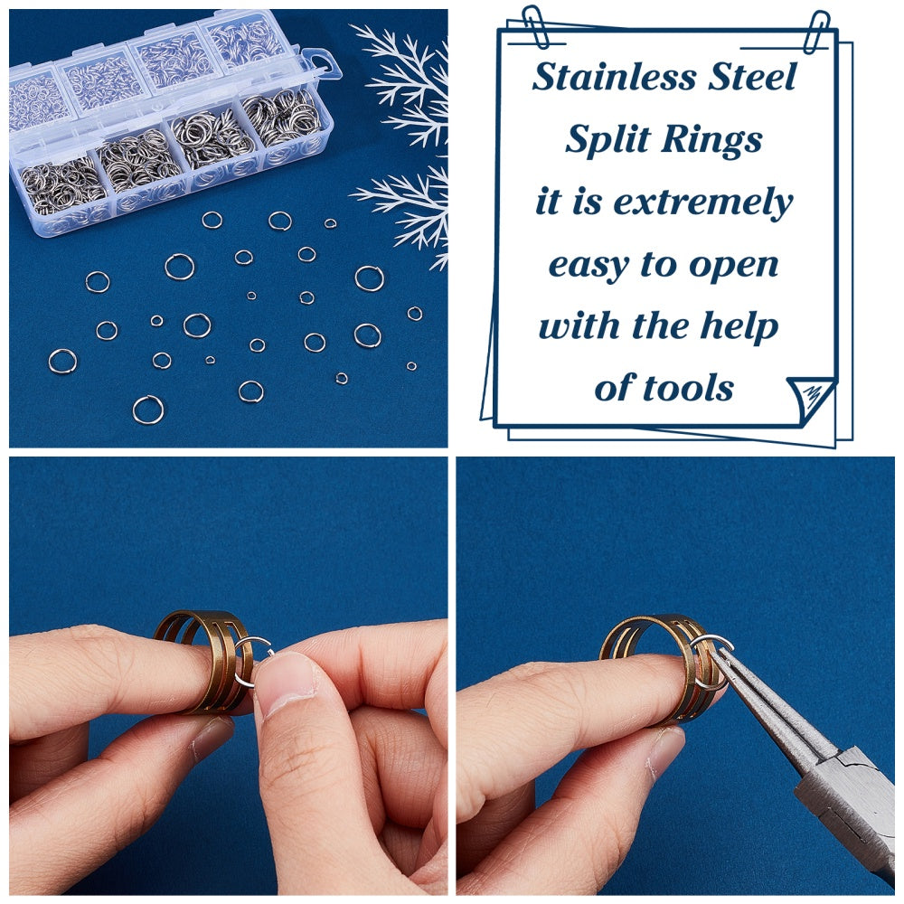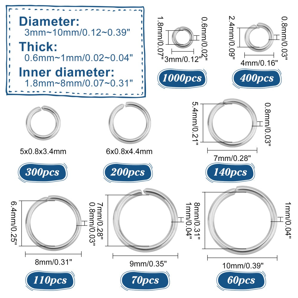 Stainless Steel Jump Rings 2240 dona 20-22 Gauge 3-10mm diametrli ochiq dumaloq zargarlik buyumlari uchun