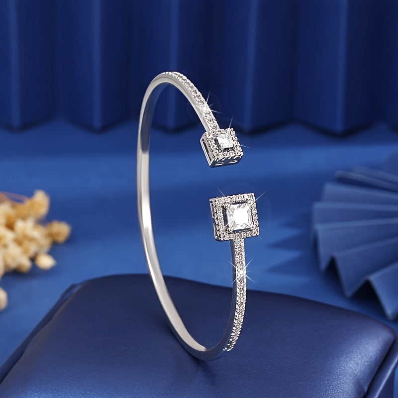 Ushbu nafis Boho uslubidagi bilaguzuk 925 kumushdan tayyorlangan bo'lib, kvadrat Moissanite toshiga ega. Bu ayollar uchun har kuni kiyish yoki sovg'a sifatida mukammal bo'lgan modali va porloq zargarlik buyumidir. Har mavsum uchun mos, bahor uchun ideal.
