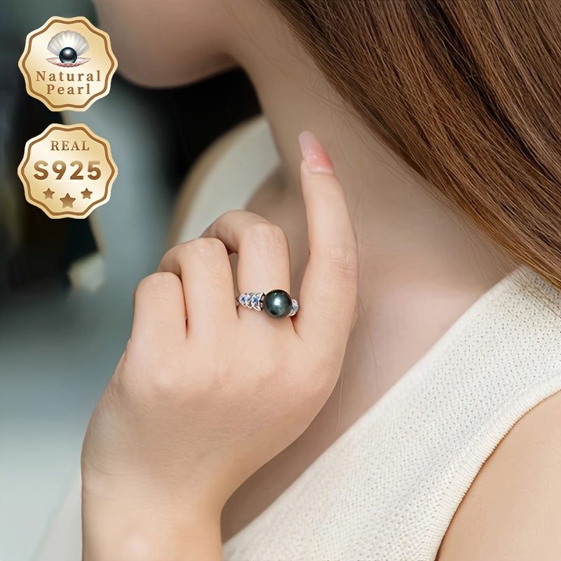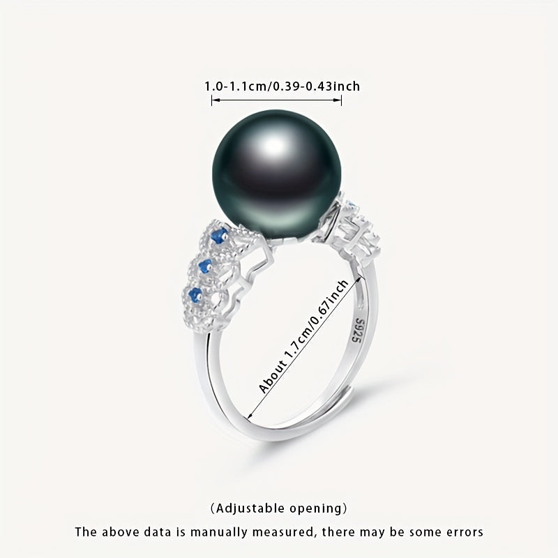 Vintage Sterling Silver Cuff Ring Tahitian Black Saltwater Pearl va Zirconia bilan