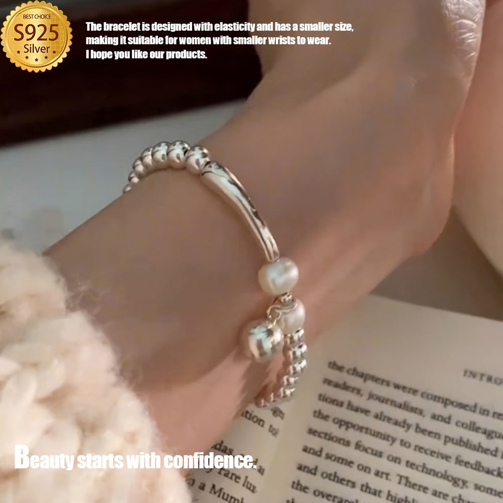 Ayollar uchun kumush rangli marjonli bilaguzuk, nafis zargarlik sovgʻasi