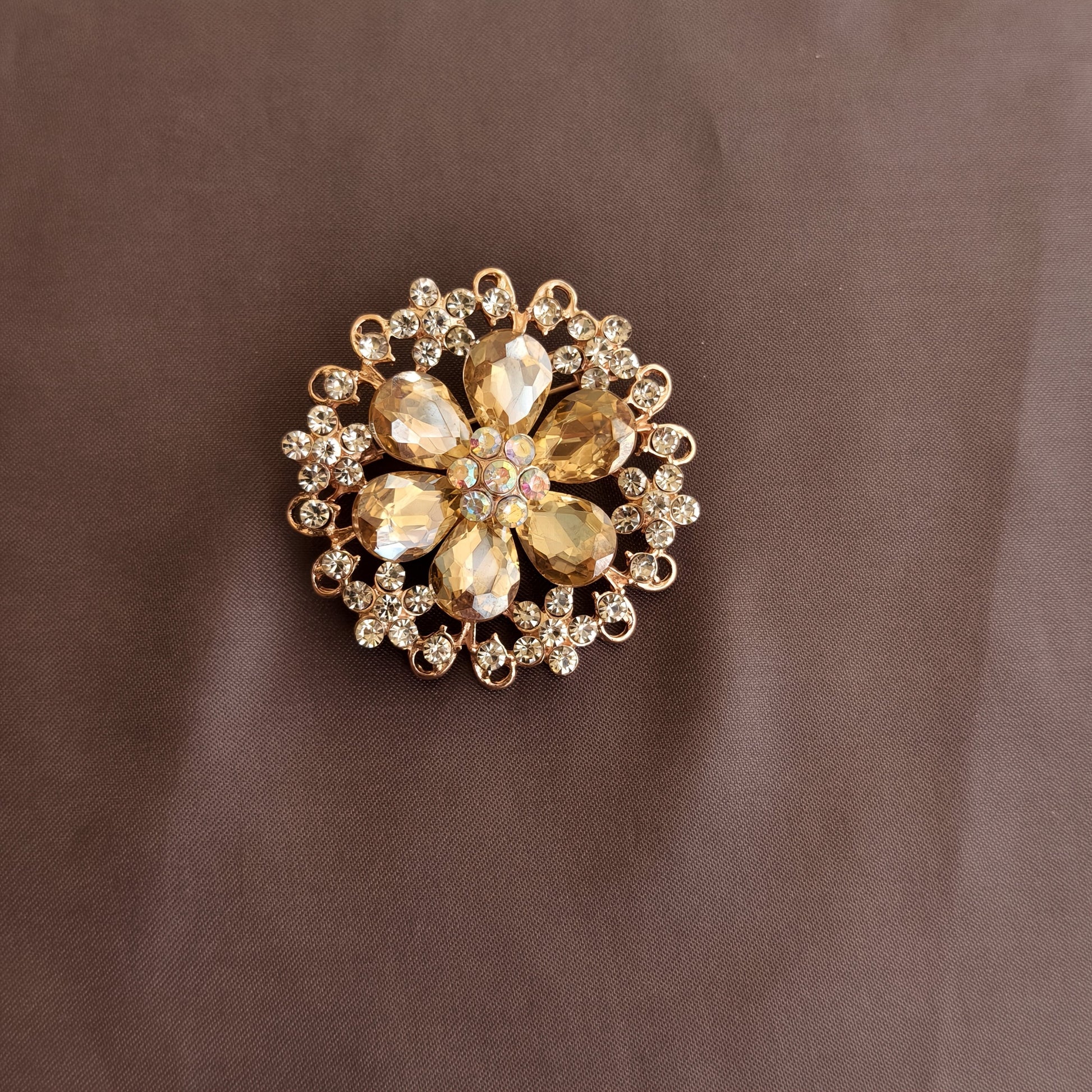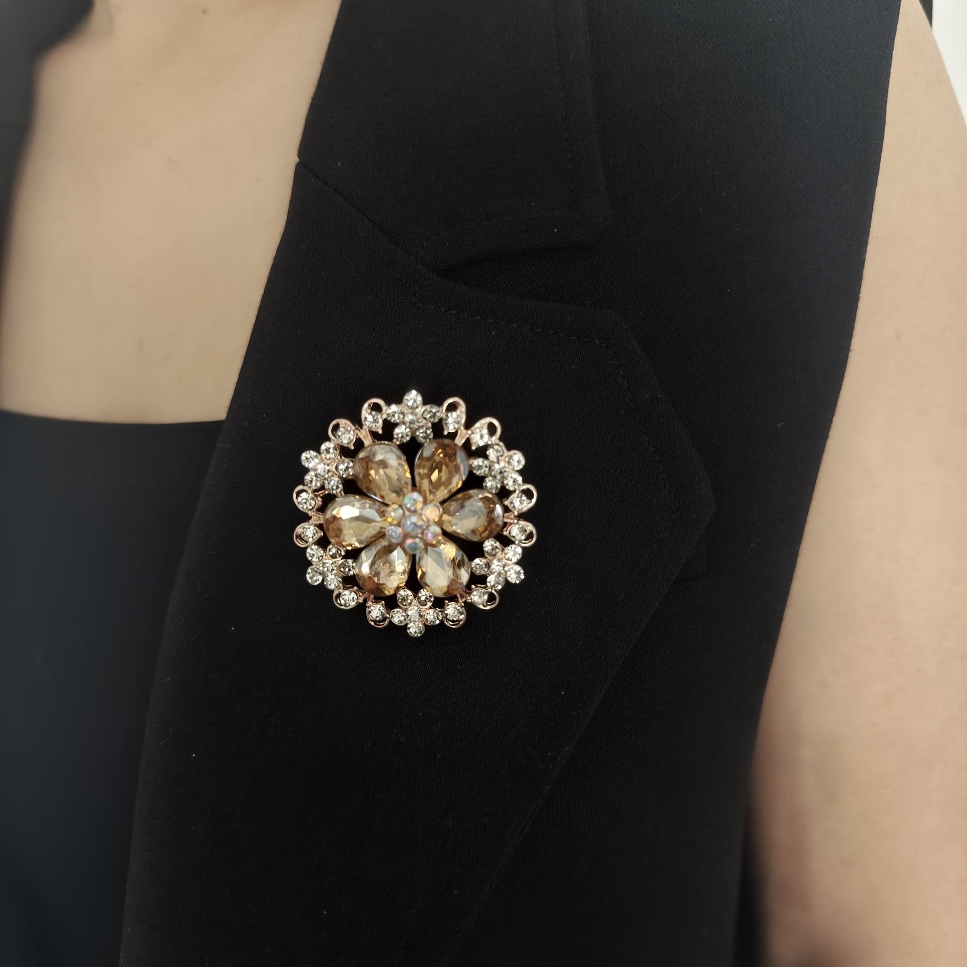 Vintage olti bargli gul brosh, rhinestone bilan bezatilgan alloy zargarlik buyumlari ayollar uchun