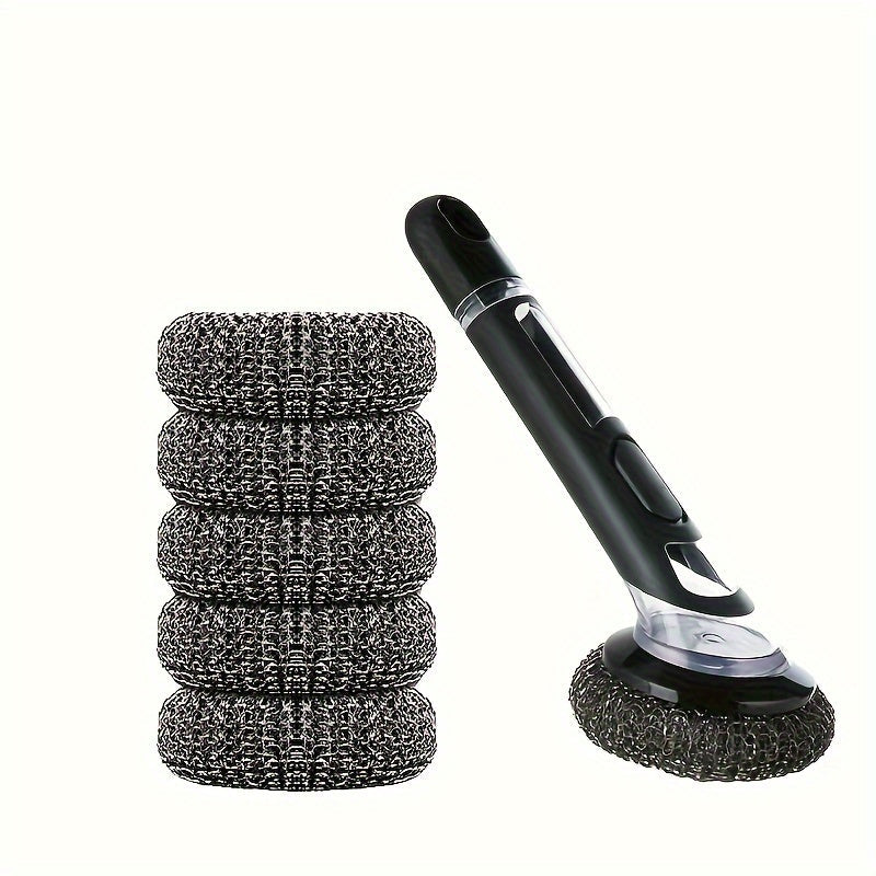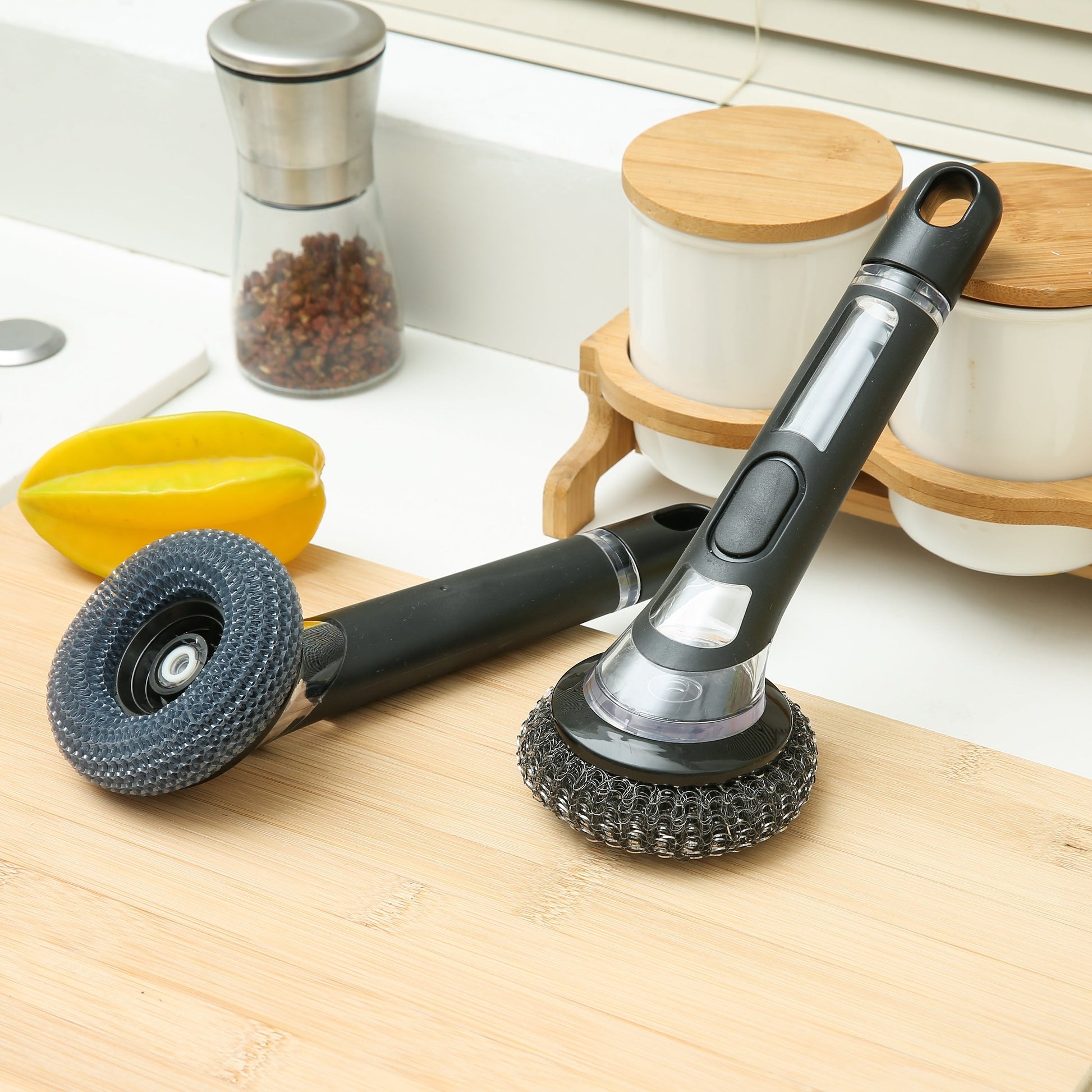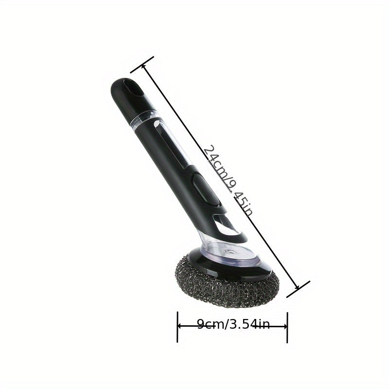 Ushbu muhim oshxona asbobi - ichki sabun tarqatuvchiga ega bo'lgan mustahkam va ko'p maqsadli tozalash cho'tkasi. Qozonlar, skovorodkalar va idishlar uchun mukammal, ushbu qayta ishlatiladigan tozalovchi vosita har qanday uy uchun zarurdir.