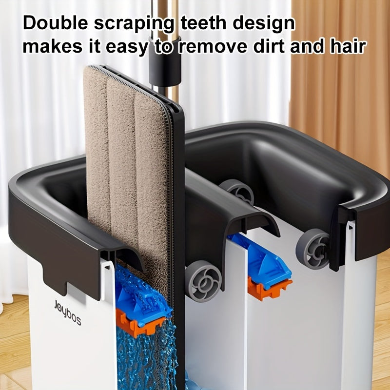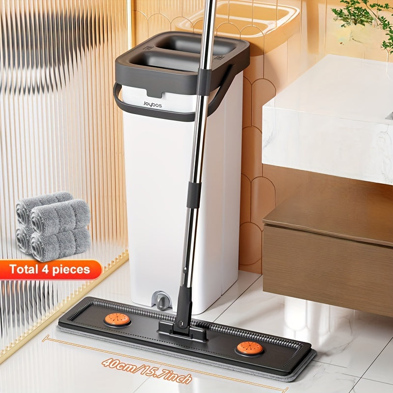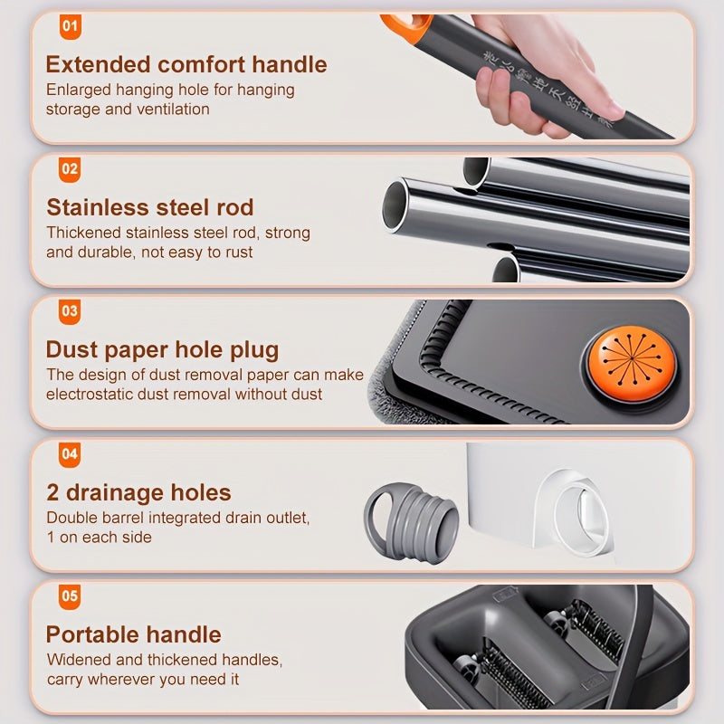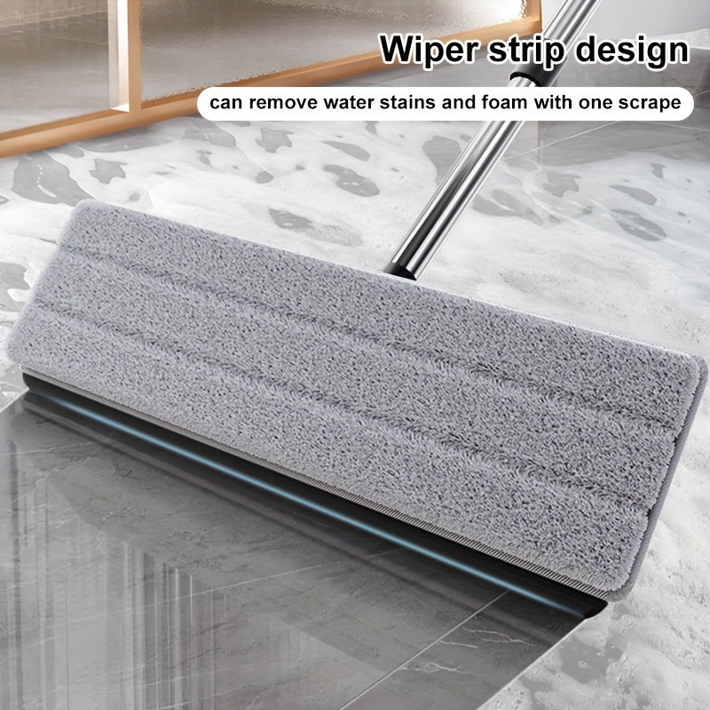Ushbu tekis mop katta o'lchamda bo'lib, idish va qirqish bilan jihozlangan, qo'lsiz tozalash imkonini beradi. U ho'l va quruq tozalash vazifalariga mos keladi va to'rt ta mato bilan ta'minlangan. Uzunroq tutqich esa oson harakatlanishni ta'minlaydi.