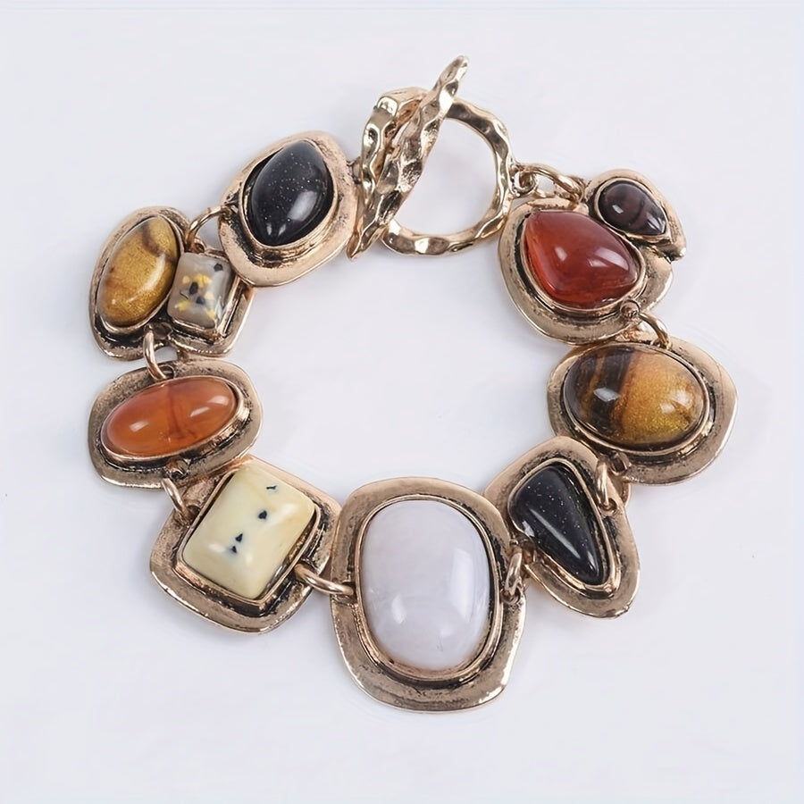 Ushbu Oltin Rangli Rezina Bilaguzuk Vintage Bohem uslubida kundalik kiyish yoki sovg'a berish uchun ideal. Uning uzunligi 19 sm/7.48 dyuym va kengligi 2.6 sm/1.02 dyuym.