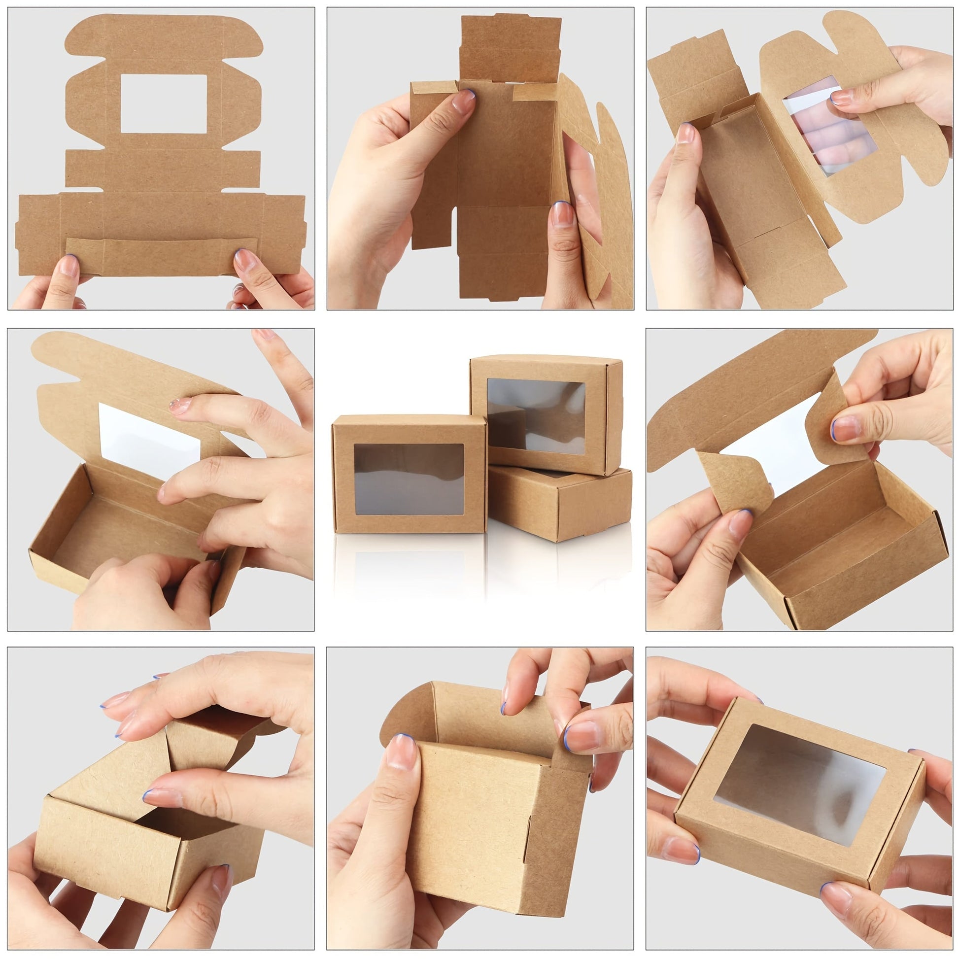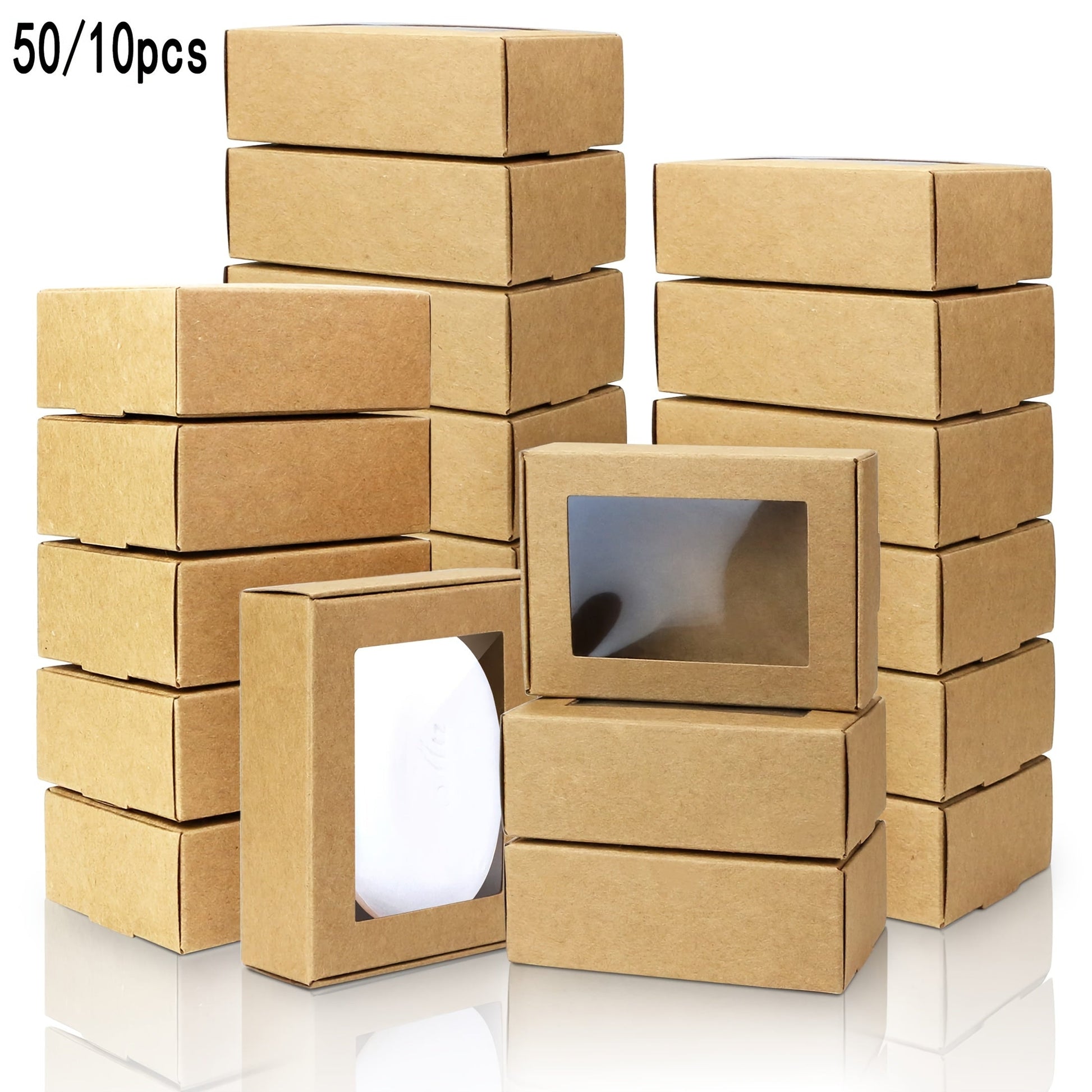 Zargarlik buyumlari uchun shaffof oynali 50 ta kichik kvadrat Kraft qog'oz qutilar