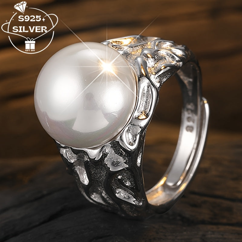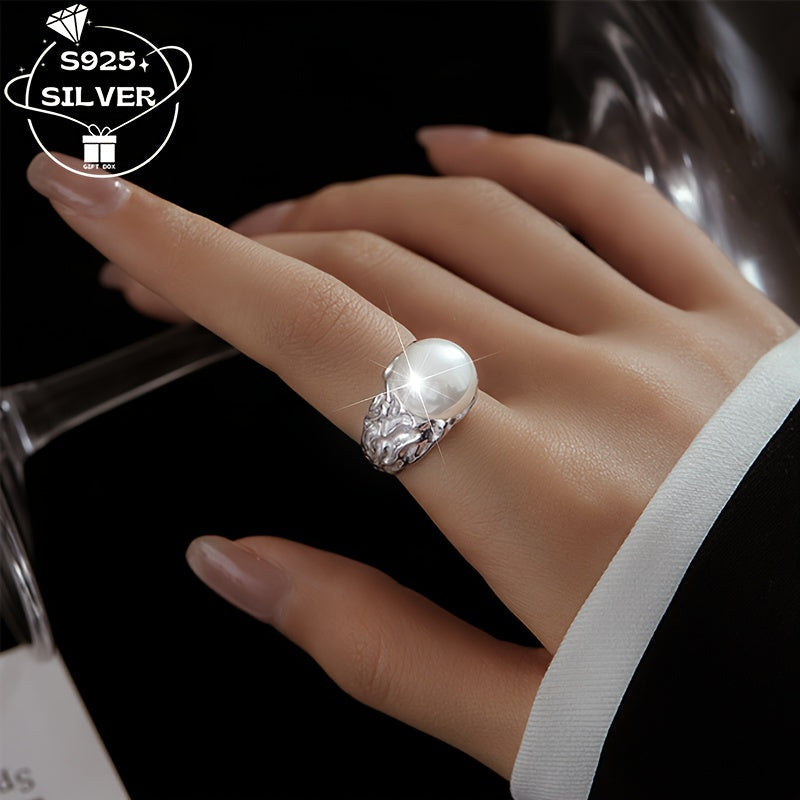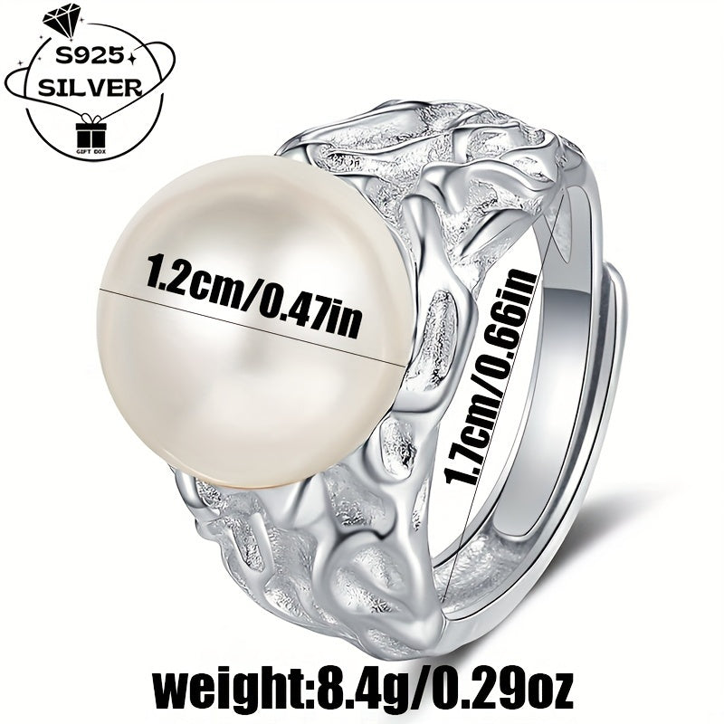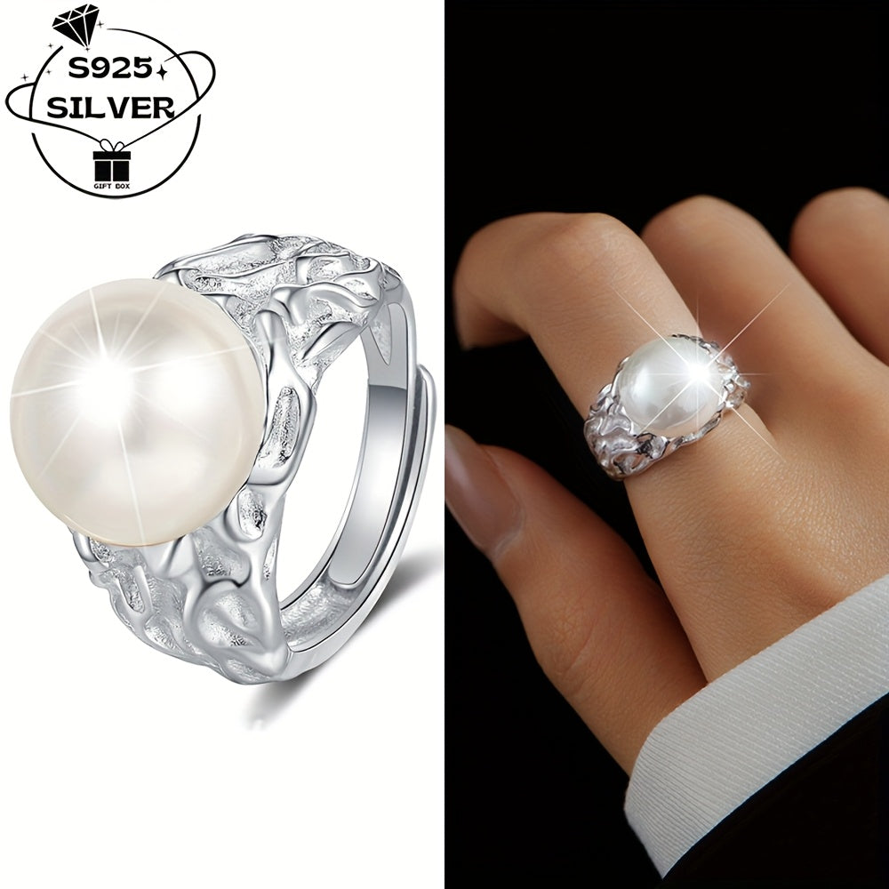 Kuzatuvchi ayollar uchun kumush Pearl ochiq uzuk, kundalik kiyimlar va maxsus tadbirlar uchun mos