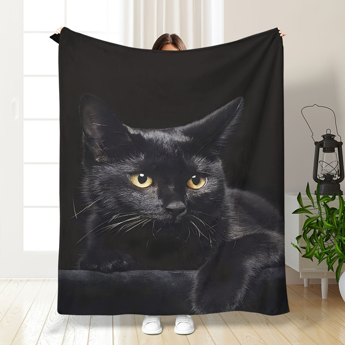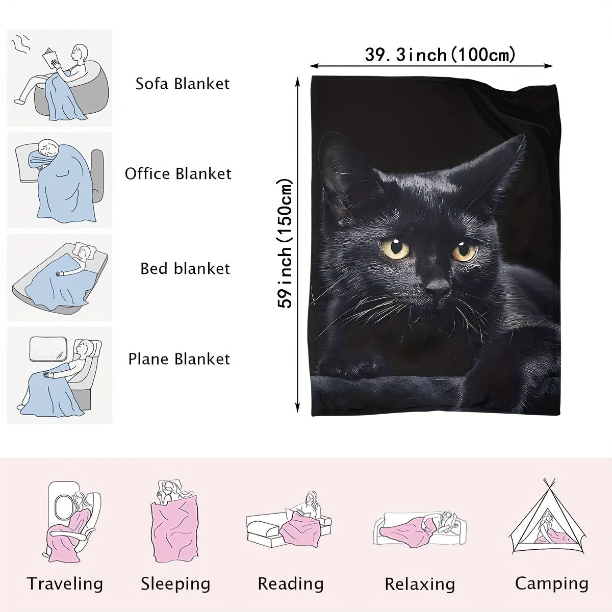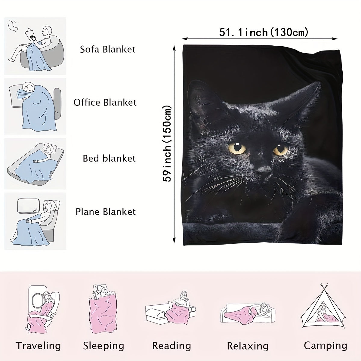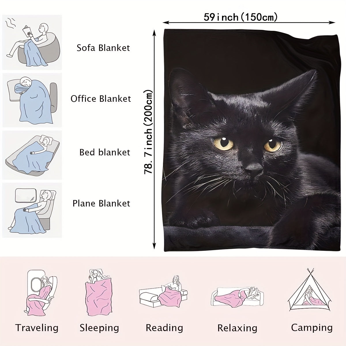 Qora mushuk naqshli yostiqchali yumshoq va qulay choyshab, divan, yotoq, sayohat va uy bezak uchun
