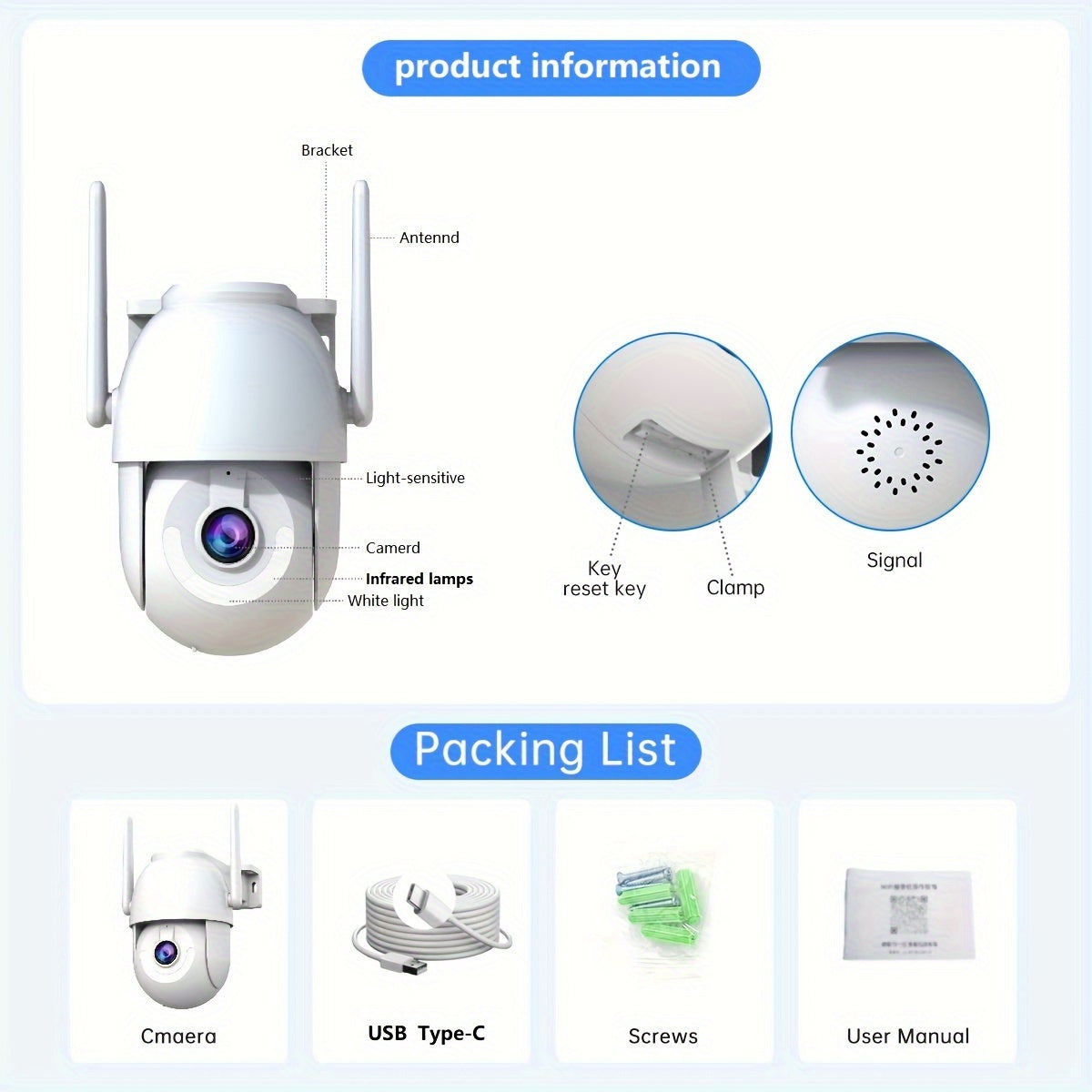 Ulanmagan tashqi xavfsizlik kamerası 3MP HD insonni kuzatish harakatini aniqlash 64GB bilan ta'minlangan