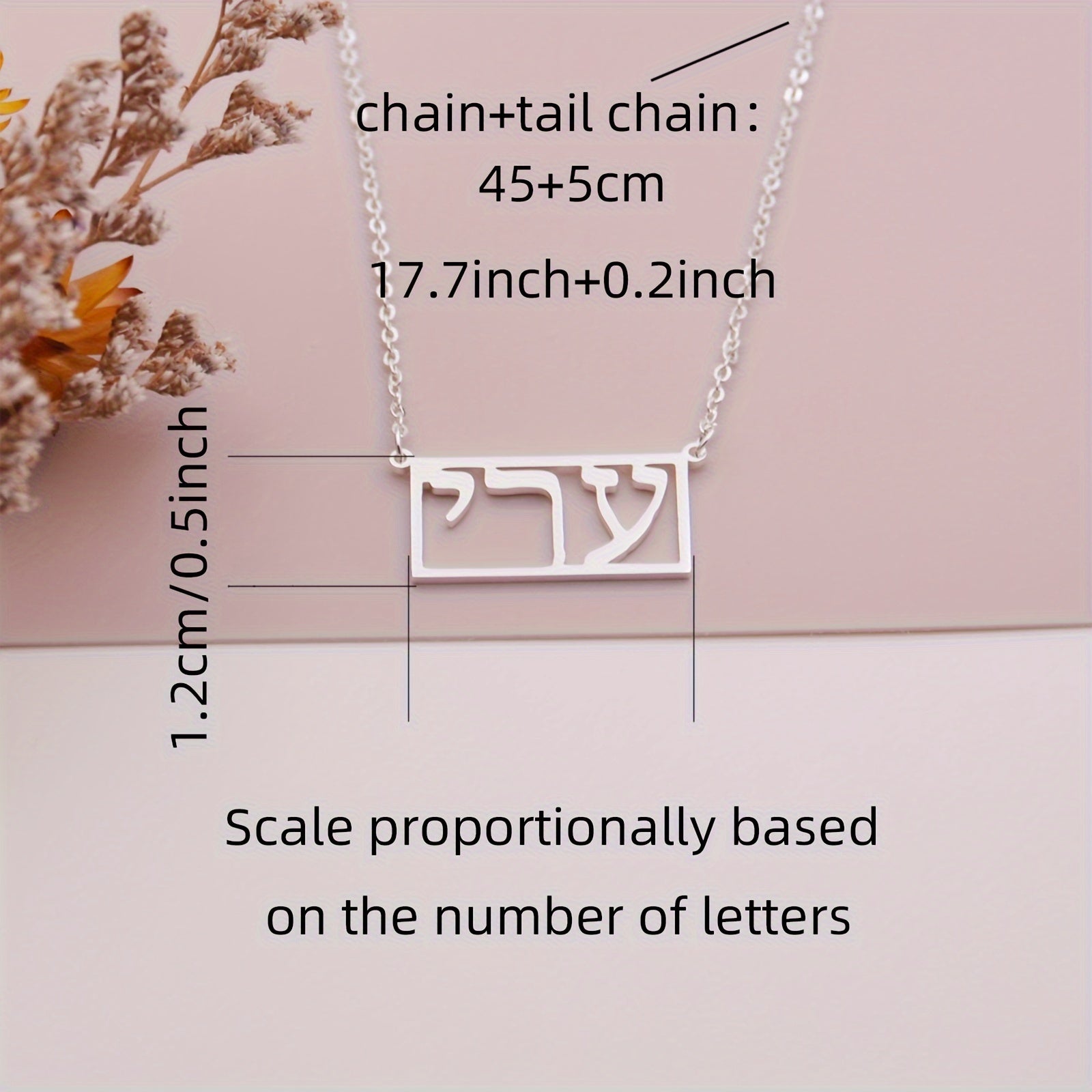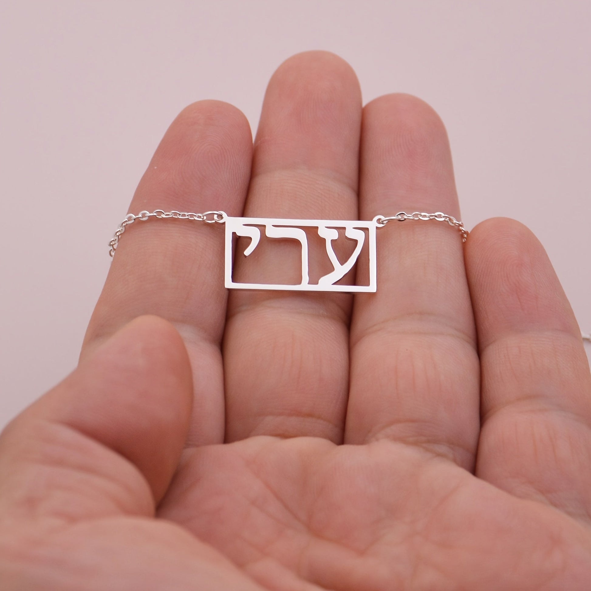 Ushbu shaxsiylashtirilgan to'rtburchakli marjon sizning ivrit ismingizni o'z ichiga oladi, 1-10 ta belgiga joy bor. (Ivrit tili uchun maxsus)