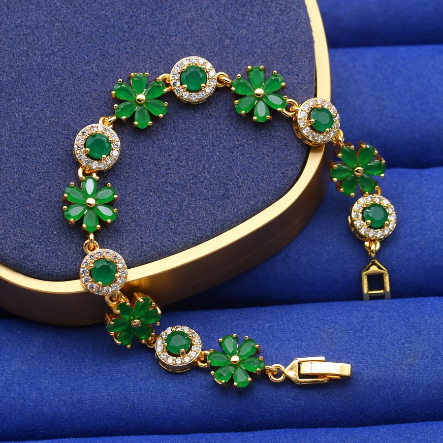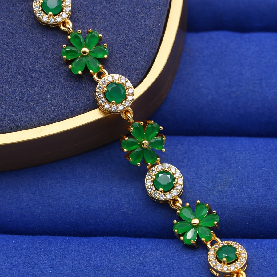 Ayollar uchun sinka zanjirli uzuk va sintetik smaragd va rhinestones bilan