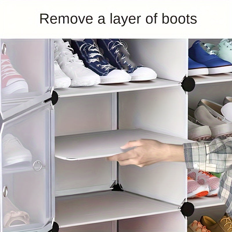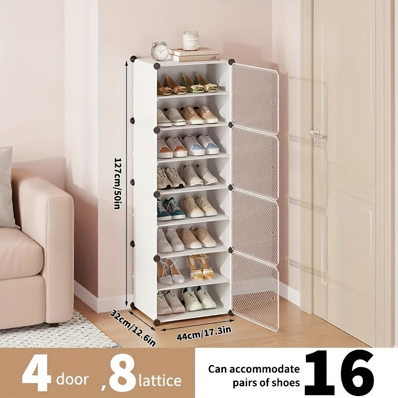 Resin mustaqil poyabzal javoni tashkilotchisi 8 qavatli 14 kubli chang o'tkazmaydigan saqlash