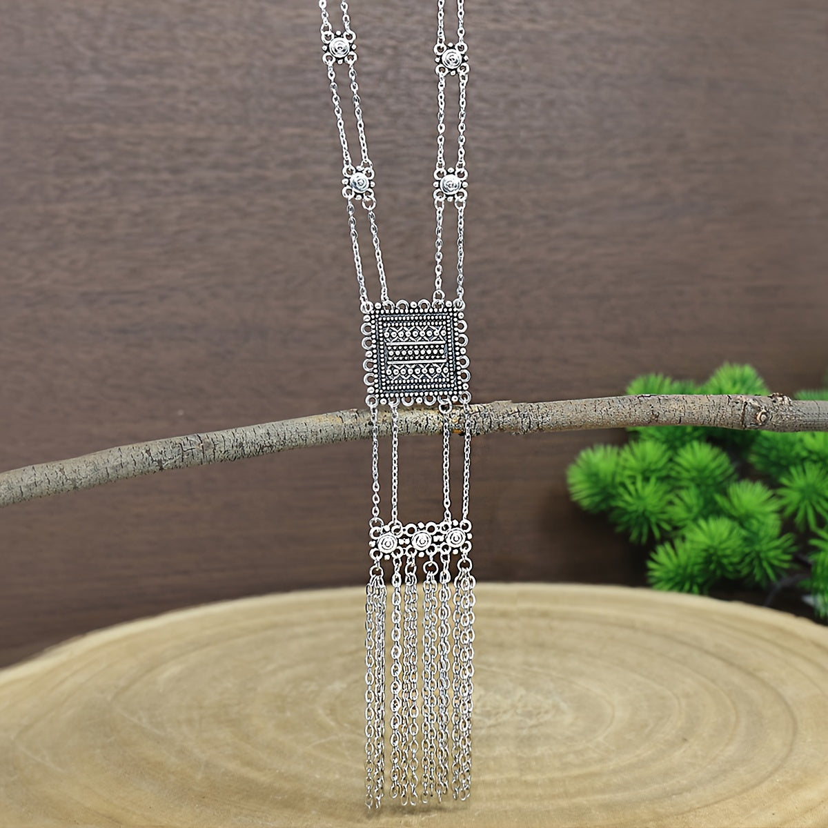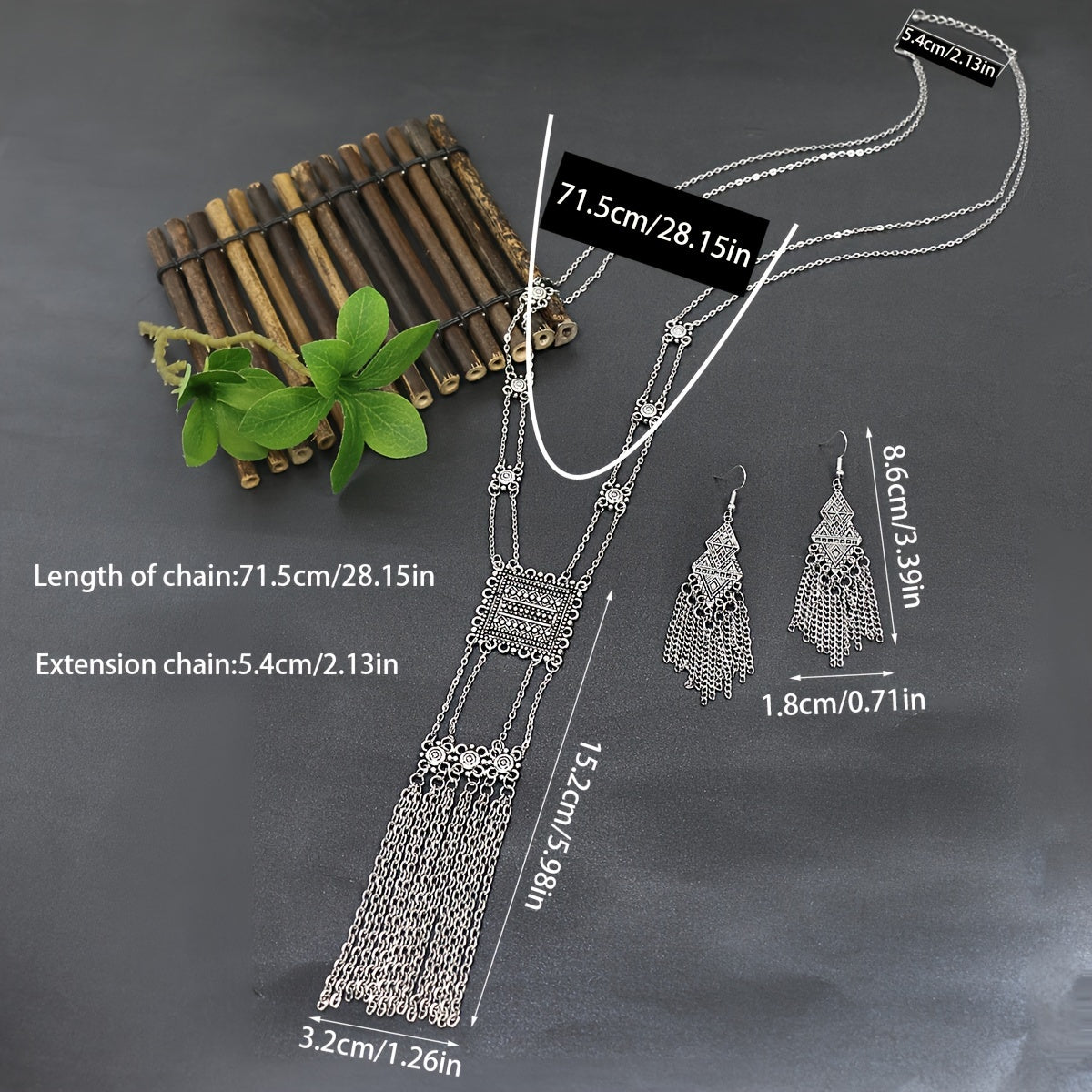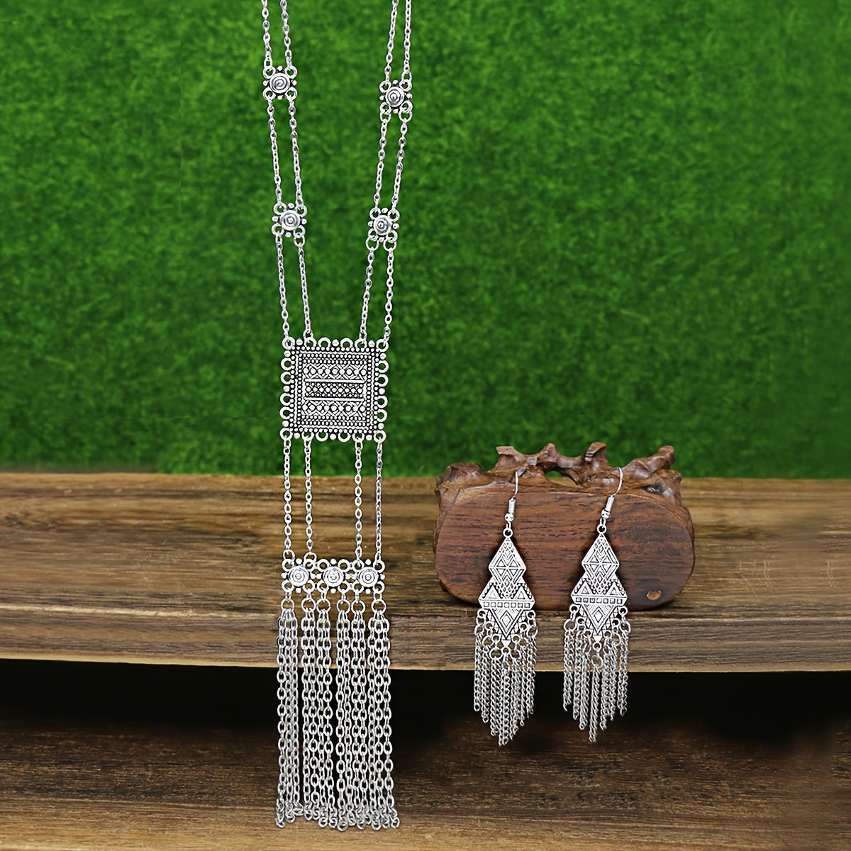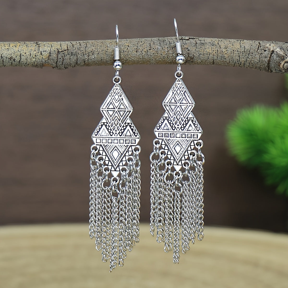 Ayollar etnik uslubdagi zargarlik to'plami, geometrik taqinchoq va tassel sirg'alar bilan