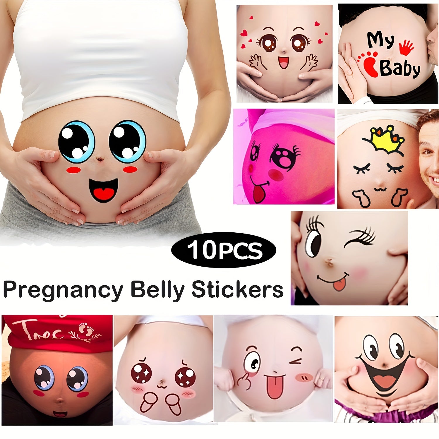 10 Rivojlanish uchun homiladorlik qorniga yopishtiriladigan stikerlar, Fotosuratlar uchun kulgili ifodalar, esdalik