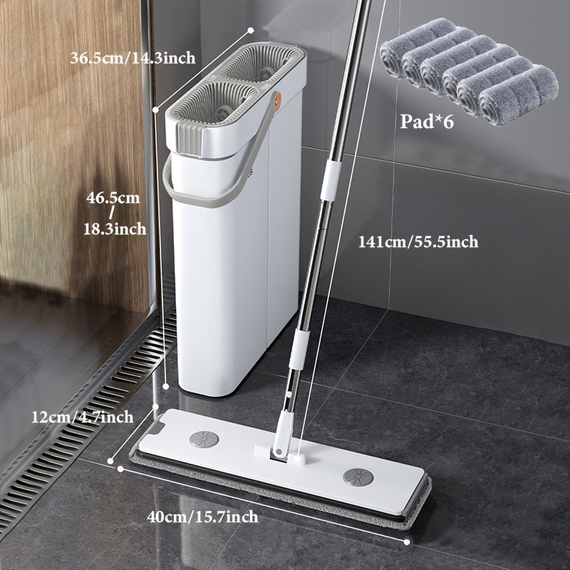 Qoʻldan ozod tekis mop va kova toʻplami, 6 ta yostiq bilan nam va quruq polni tozalash uchun