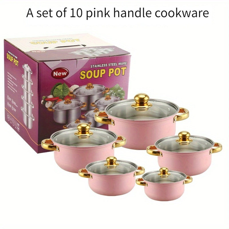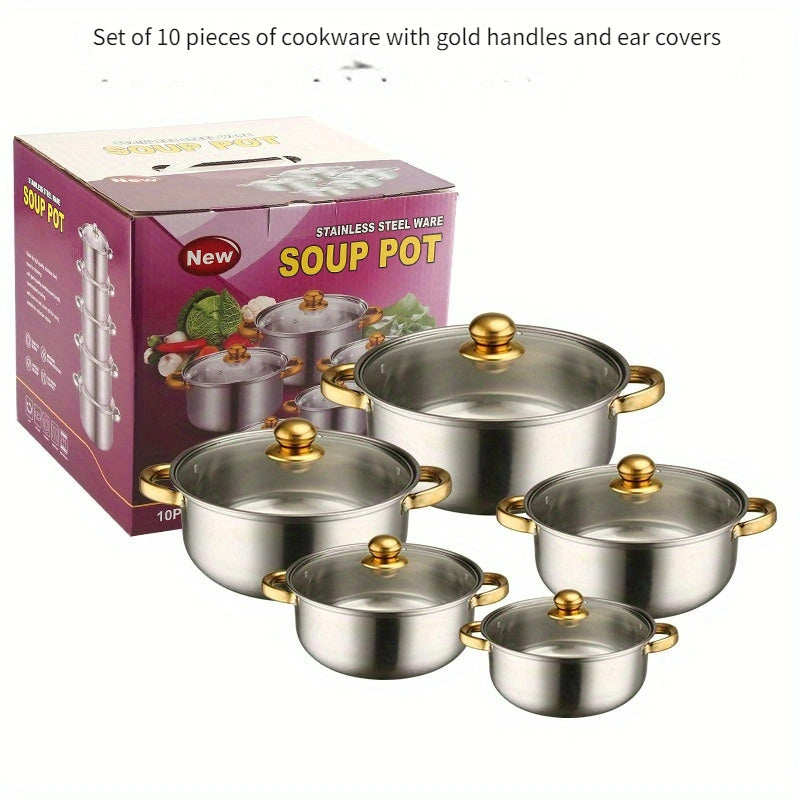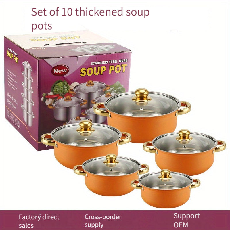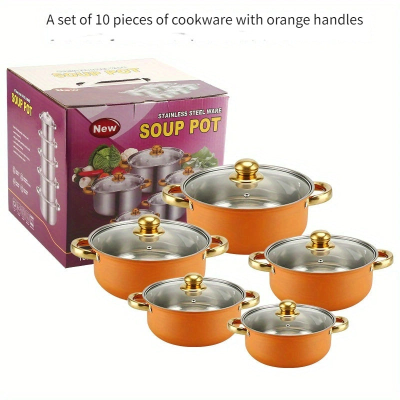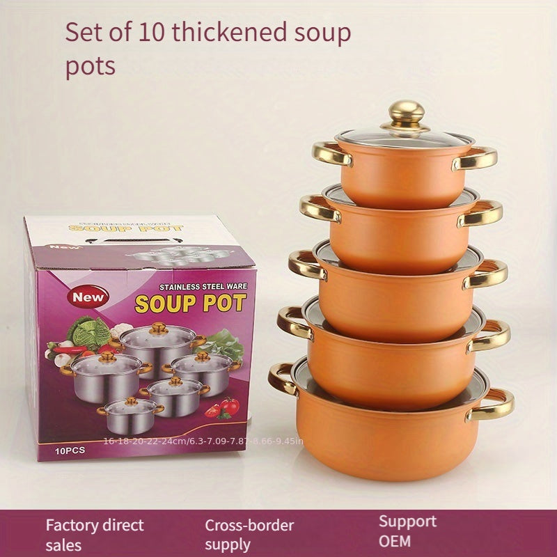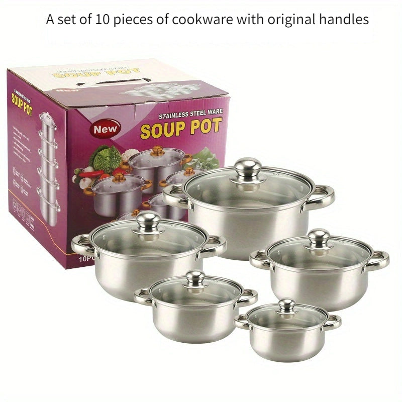 10 ta dona zanglamaydigan po'latdan yasalgan idishlar to'plami, qopqog'lar bilan, sho'rva, sut va sous qozonlari