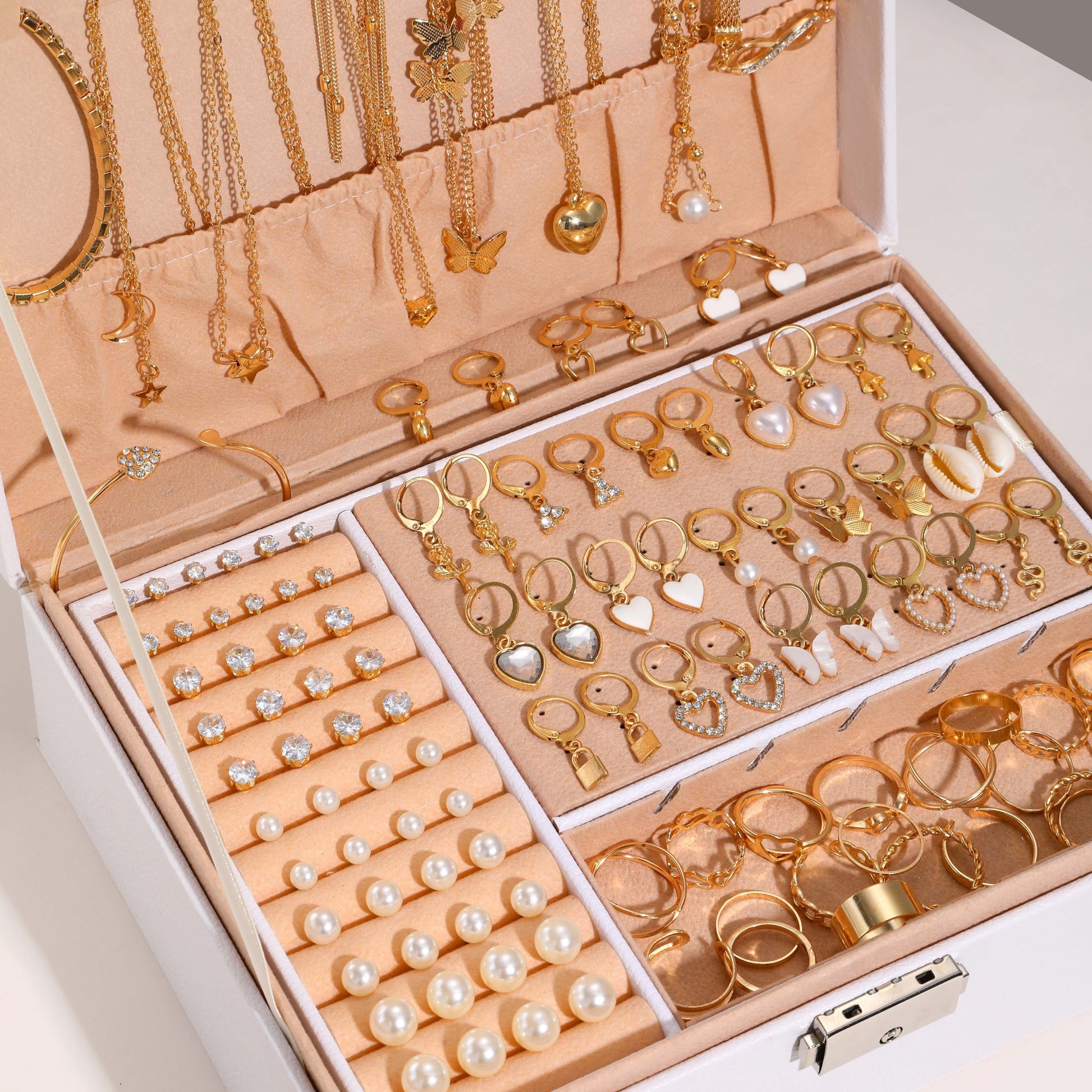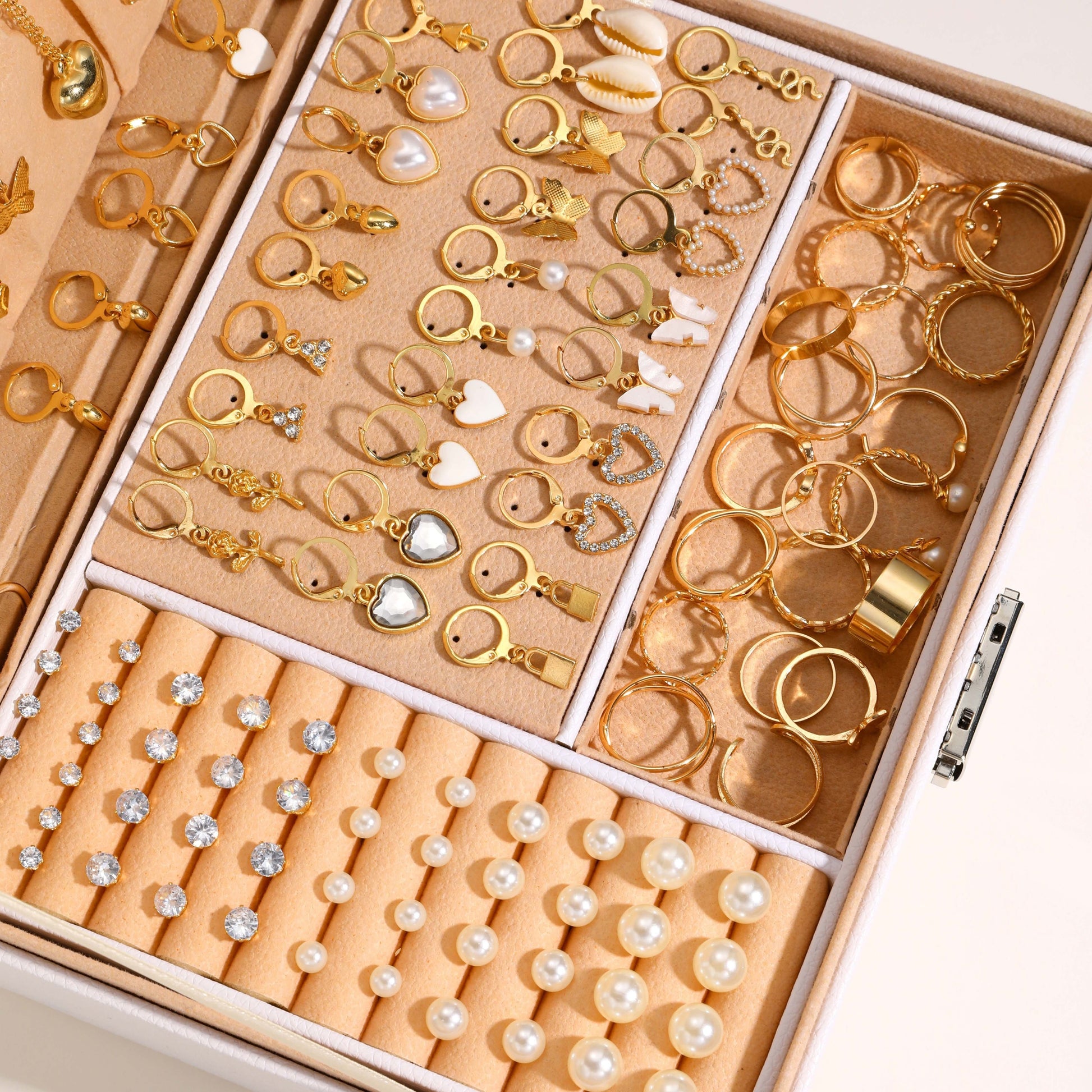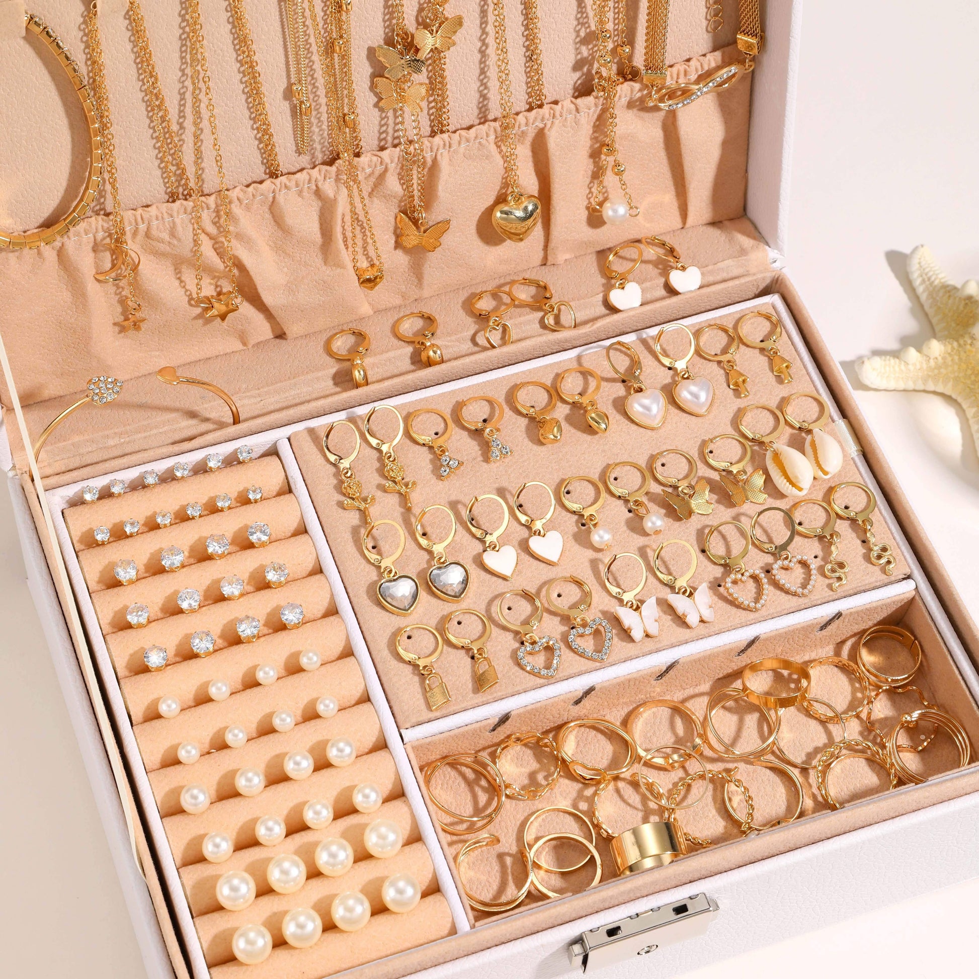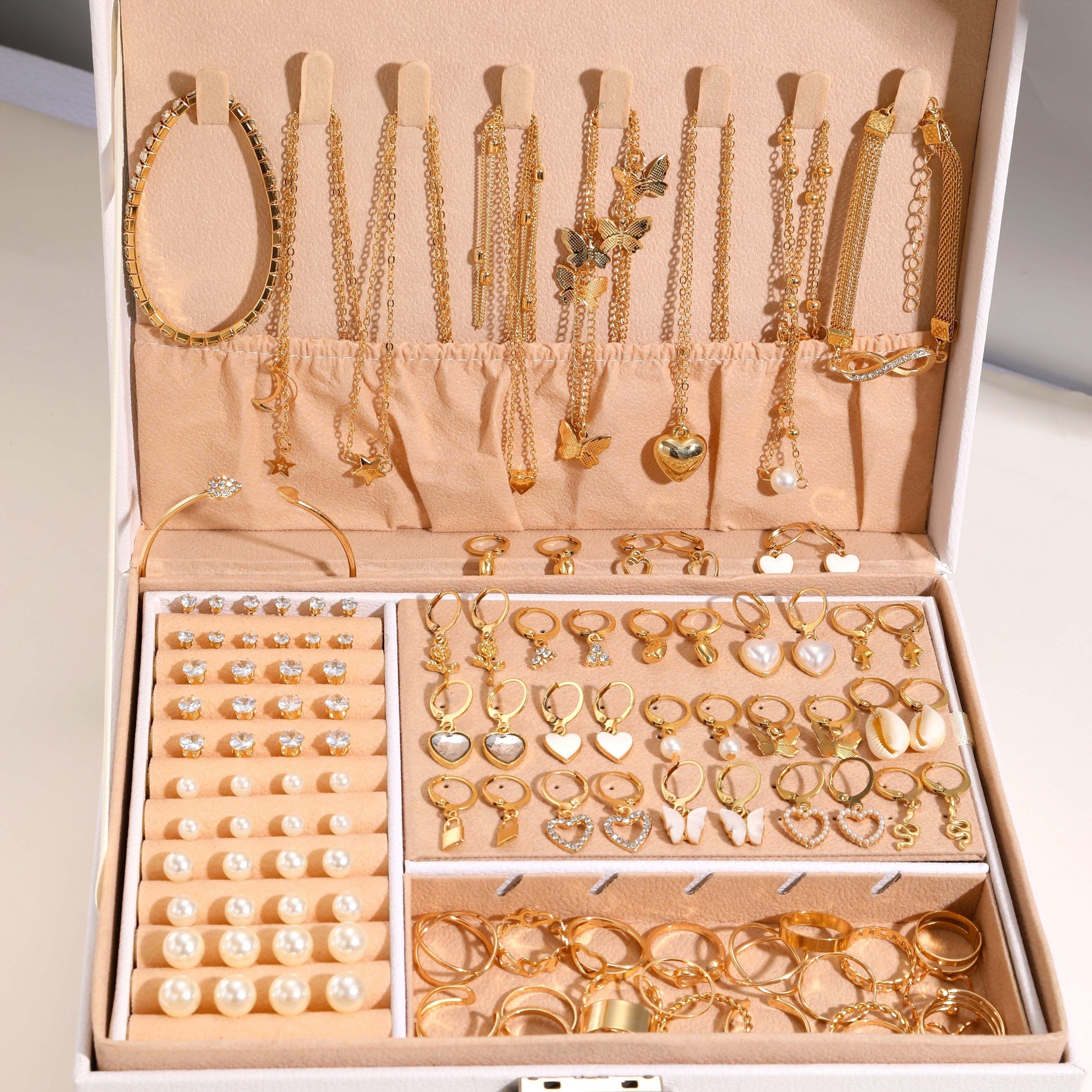 Ayollar uchun vintage kumush zargarlik to'plami, zirconiyning yurak va kapalak shaklidagi taqichlari bilan, 115 dona