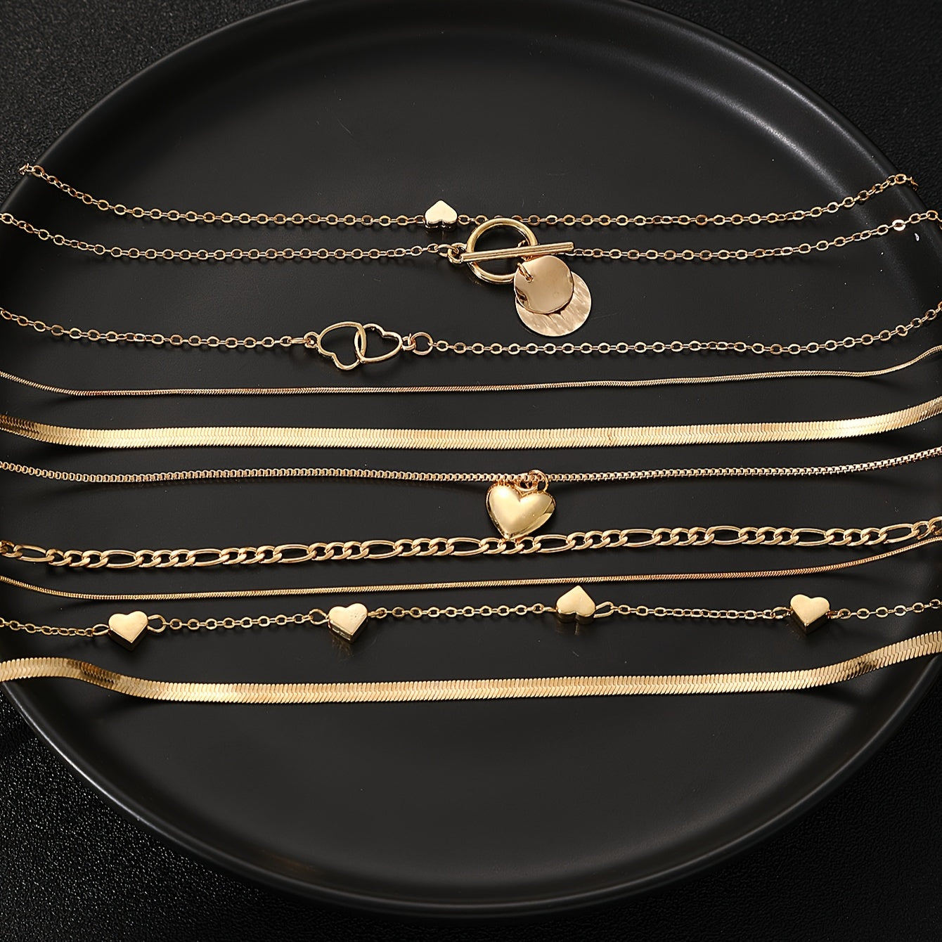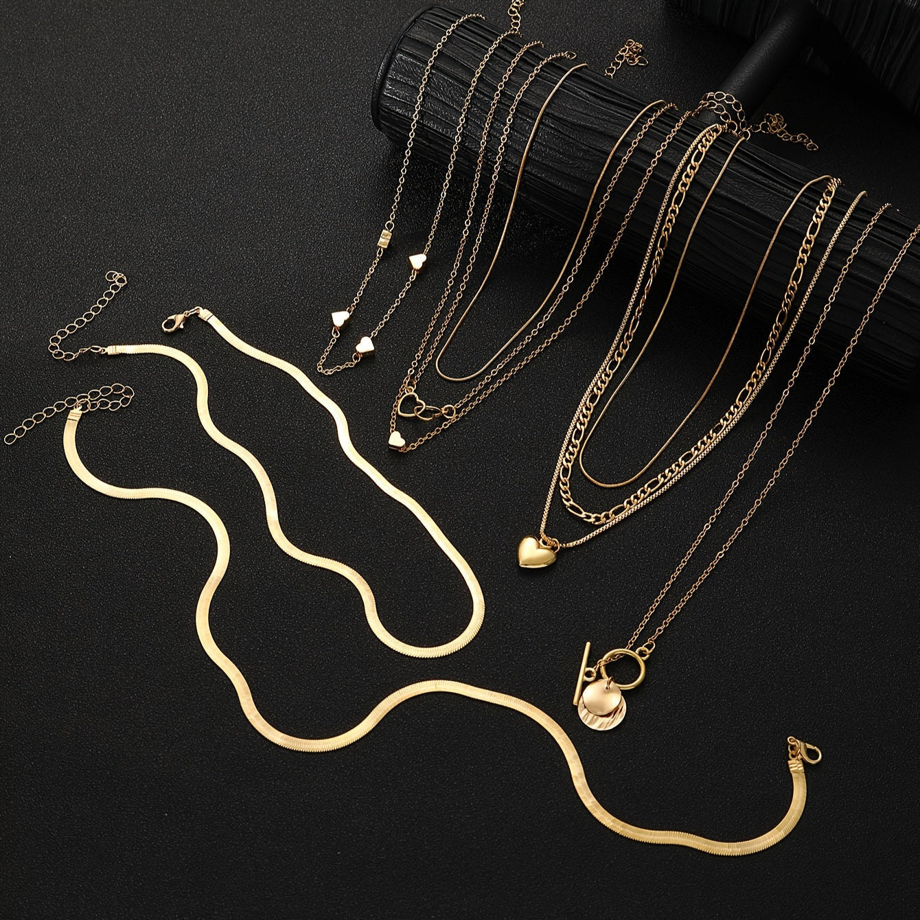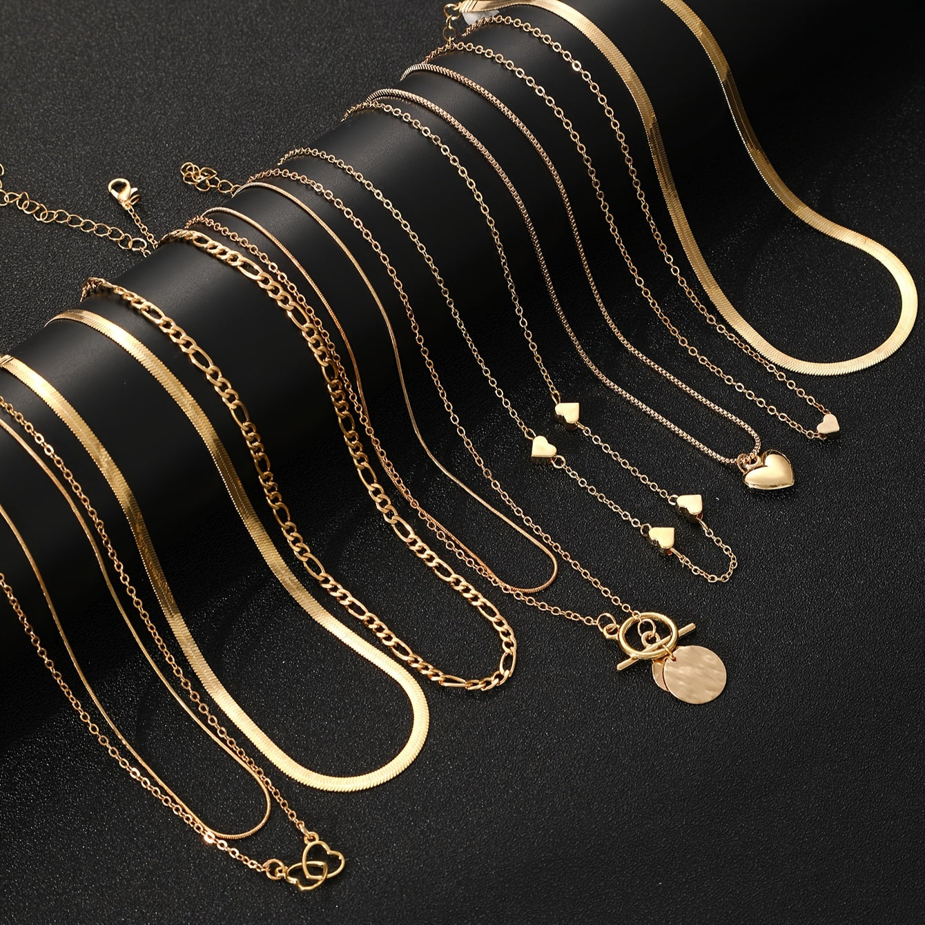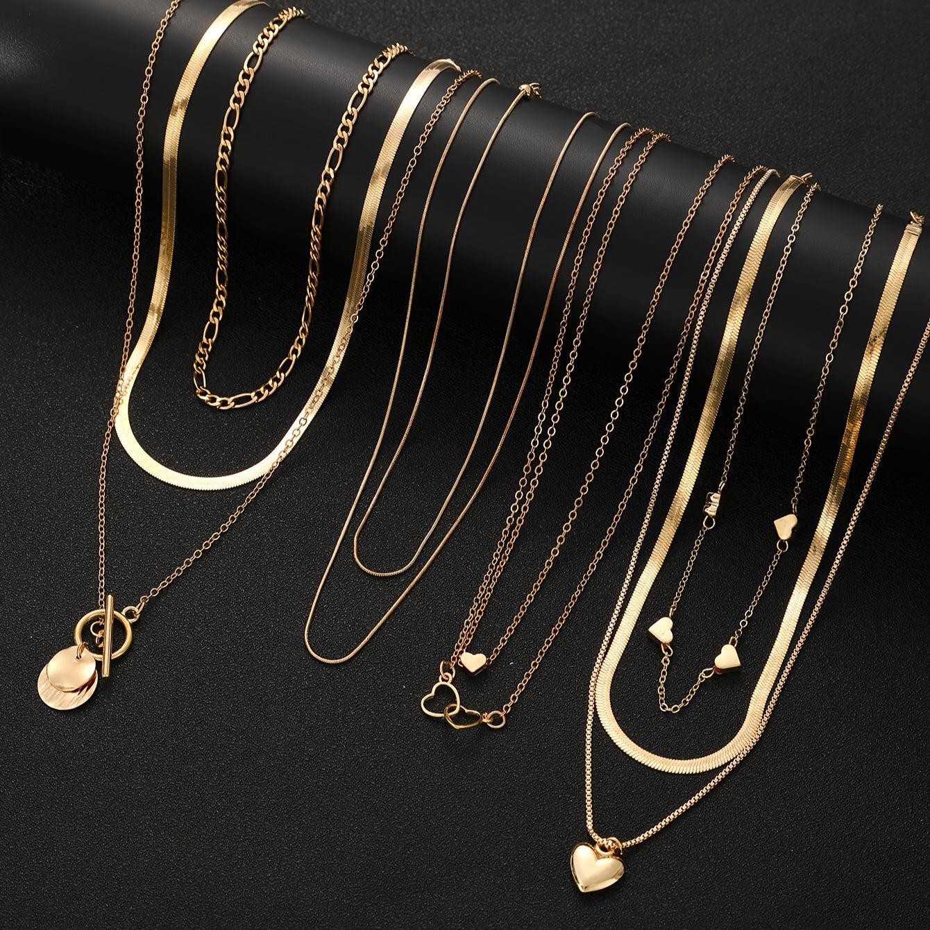Ushbu zamonaviy marjon to'plami 10 ta vintage yurak va geometrik pendantlar bilan ta'minlangan, ilova qilingan ilon zanjiri va OT qopqog'i bilan. Har kuni kiyish, maxsus tadbirlar va sovg'a berish uchun ideal, ushbu pendant marjon mukammal aksessuar.