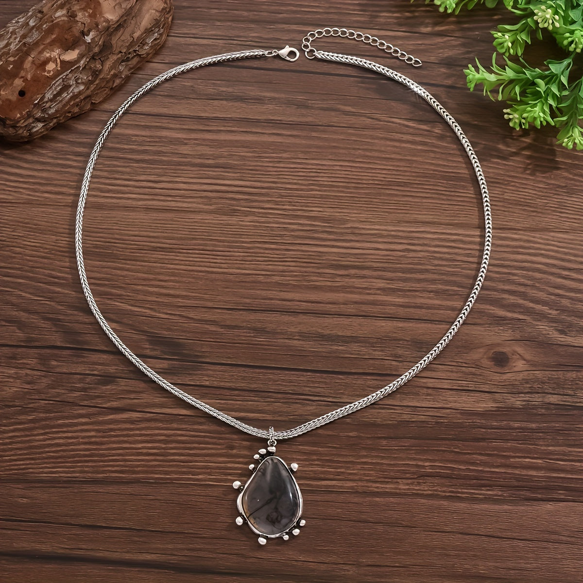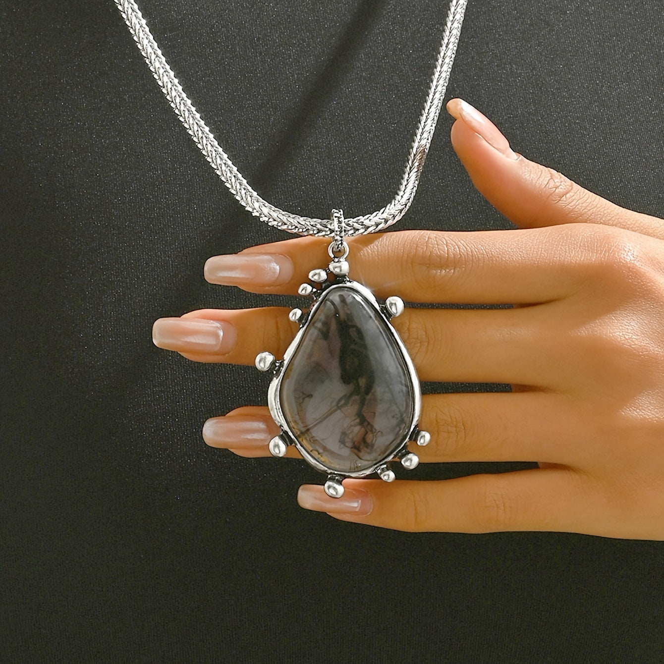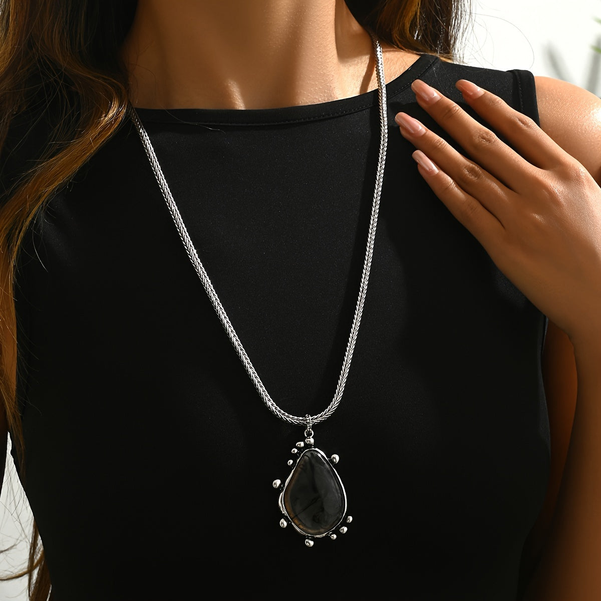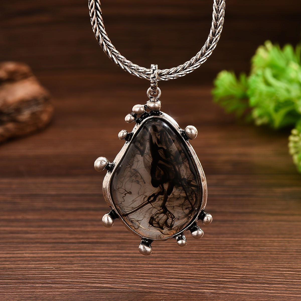 Vintage kumush Herringbone zanjirli taqinchoq, suv tomchisi pendenti va qalam gul naqshli