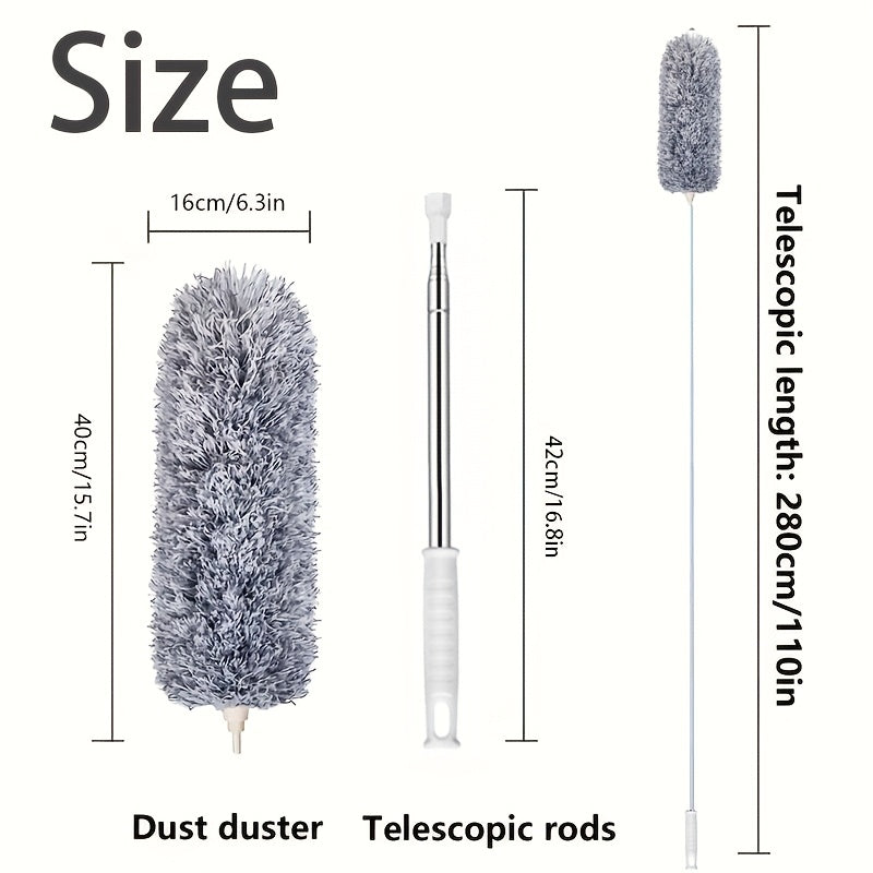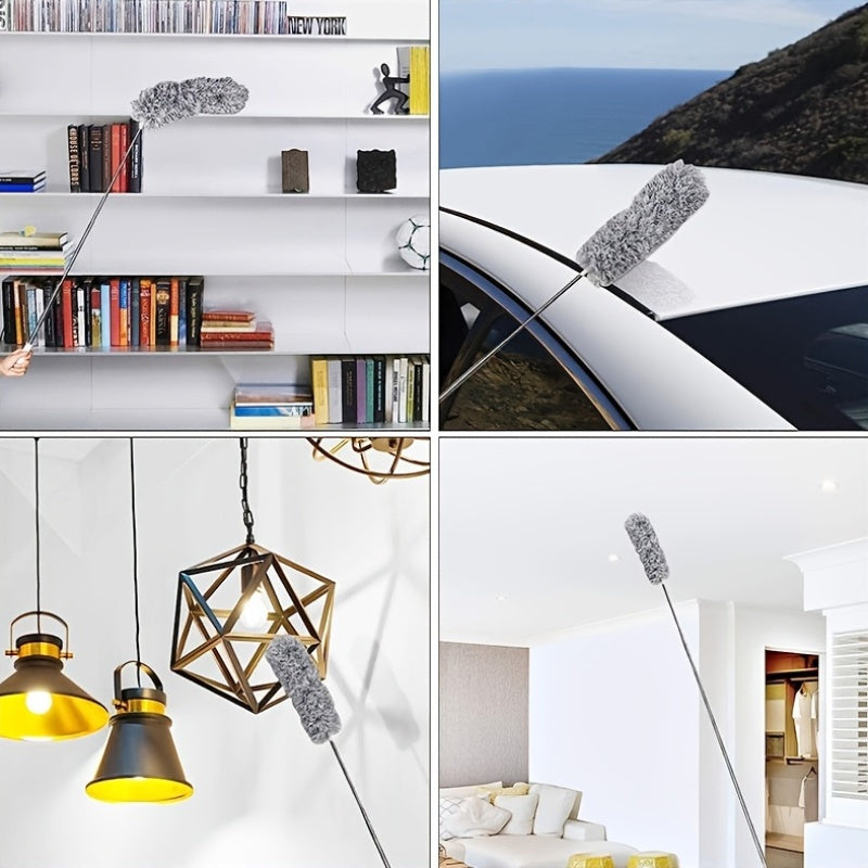 Ushbu ko'p funksiyali 1 dona Qo'shimcha Uzun Mikrofiber Qush Pichog'i 100 dyuymli Telescoping Pol va Ot Junidan Yasalgan Boshga ega. Bu yuqori shiftlar, shift fanatlari, jaluzilar va mebellarga batareyasiz yetib borish uchun mukammaldir. Mustahkam metall