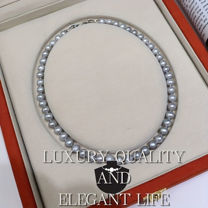 erkaklar uchun tabiiy shaffof daryo marjonlari kulrang 8-zaiflik zamonaviy zargarlik buyumlari sovgʻa qutisi