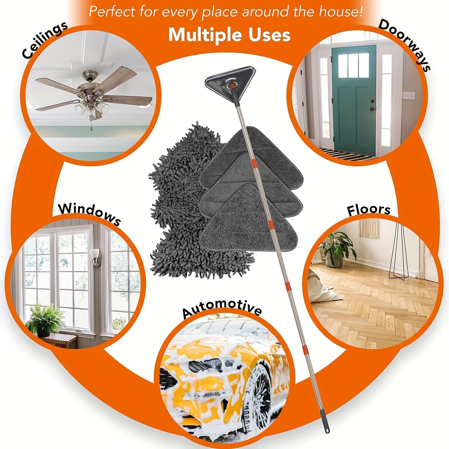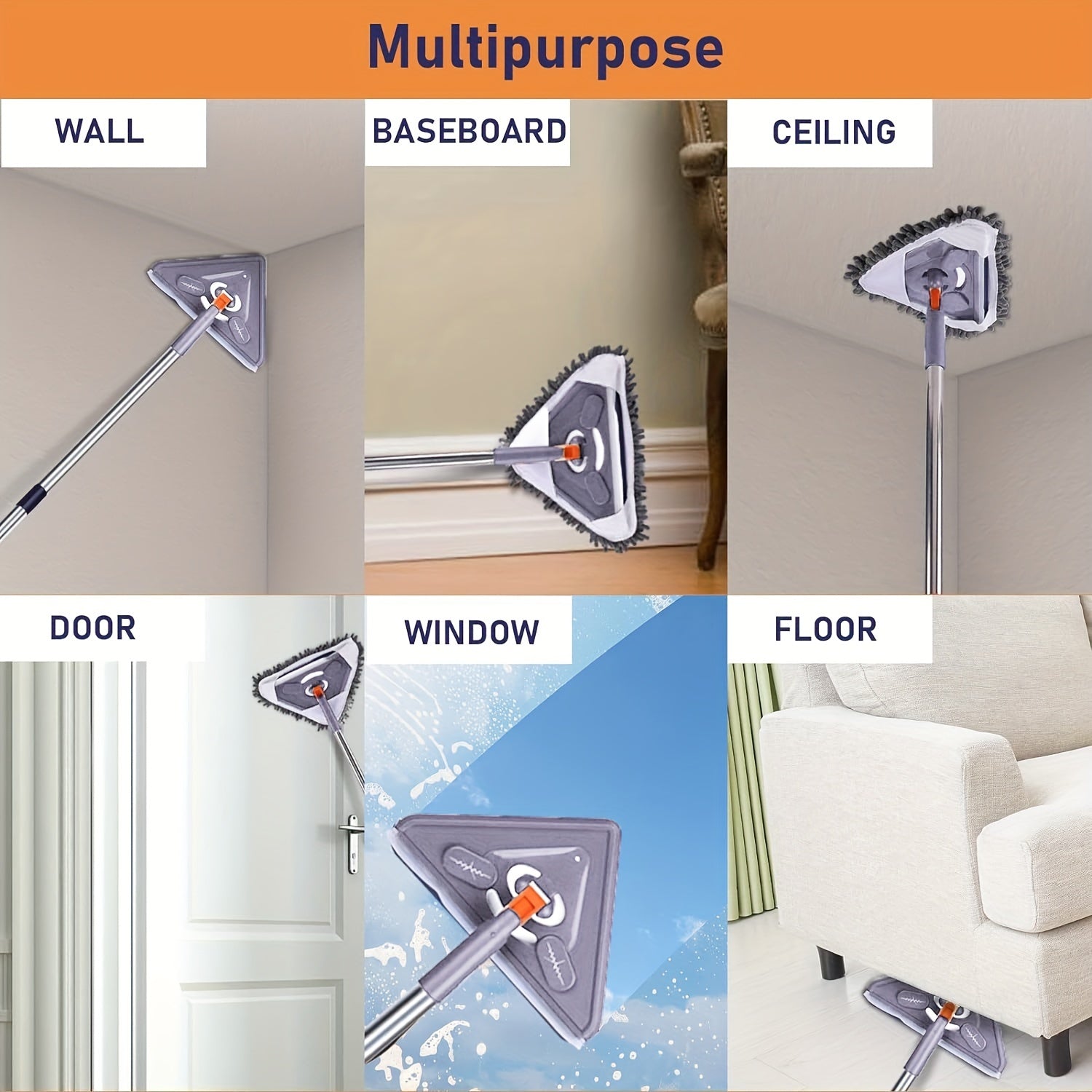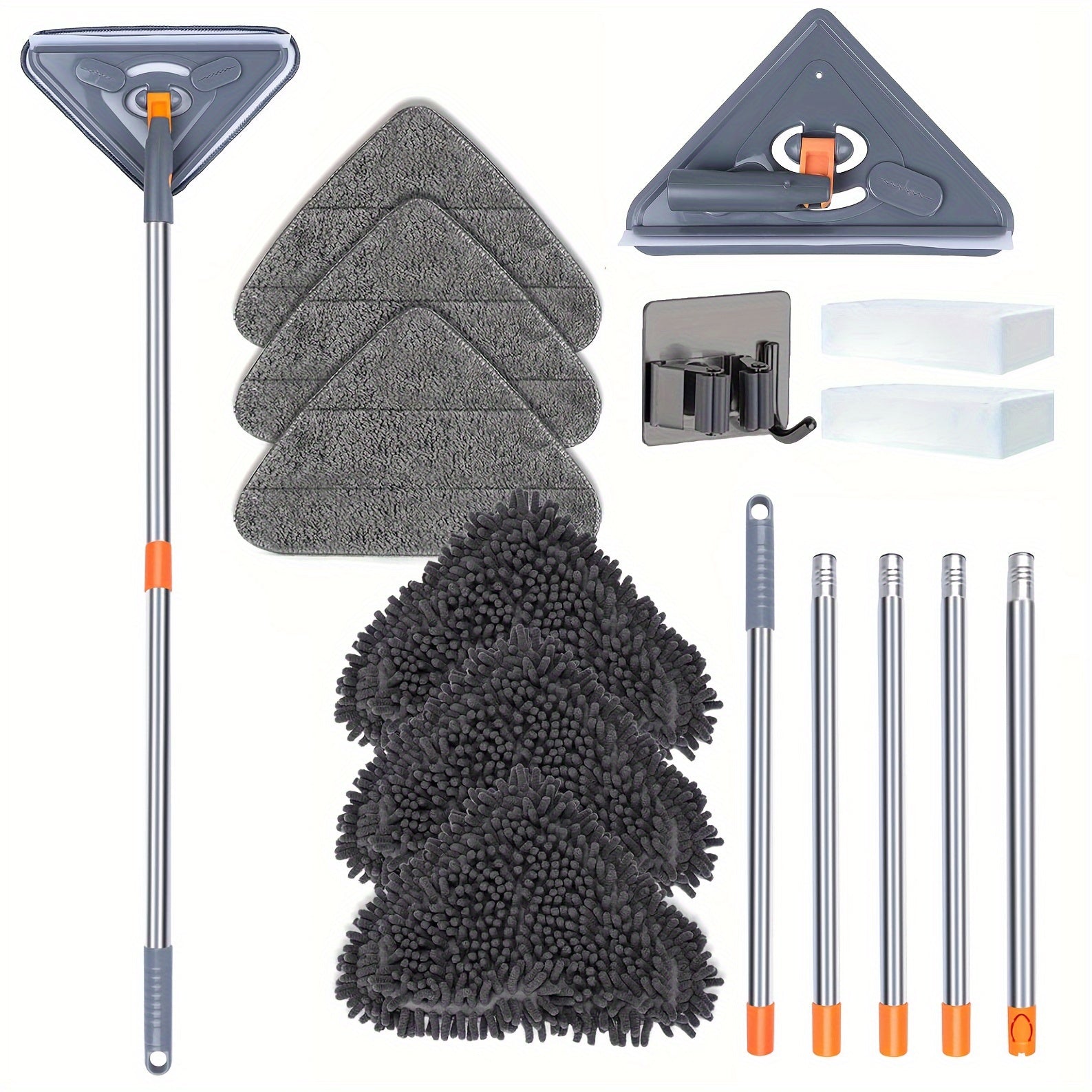 6 ta to'ldirish yostiqchalari va uchburchak boshli kengaytiriladigan devor tozalash moppi
