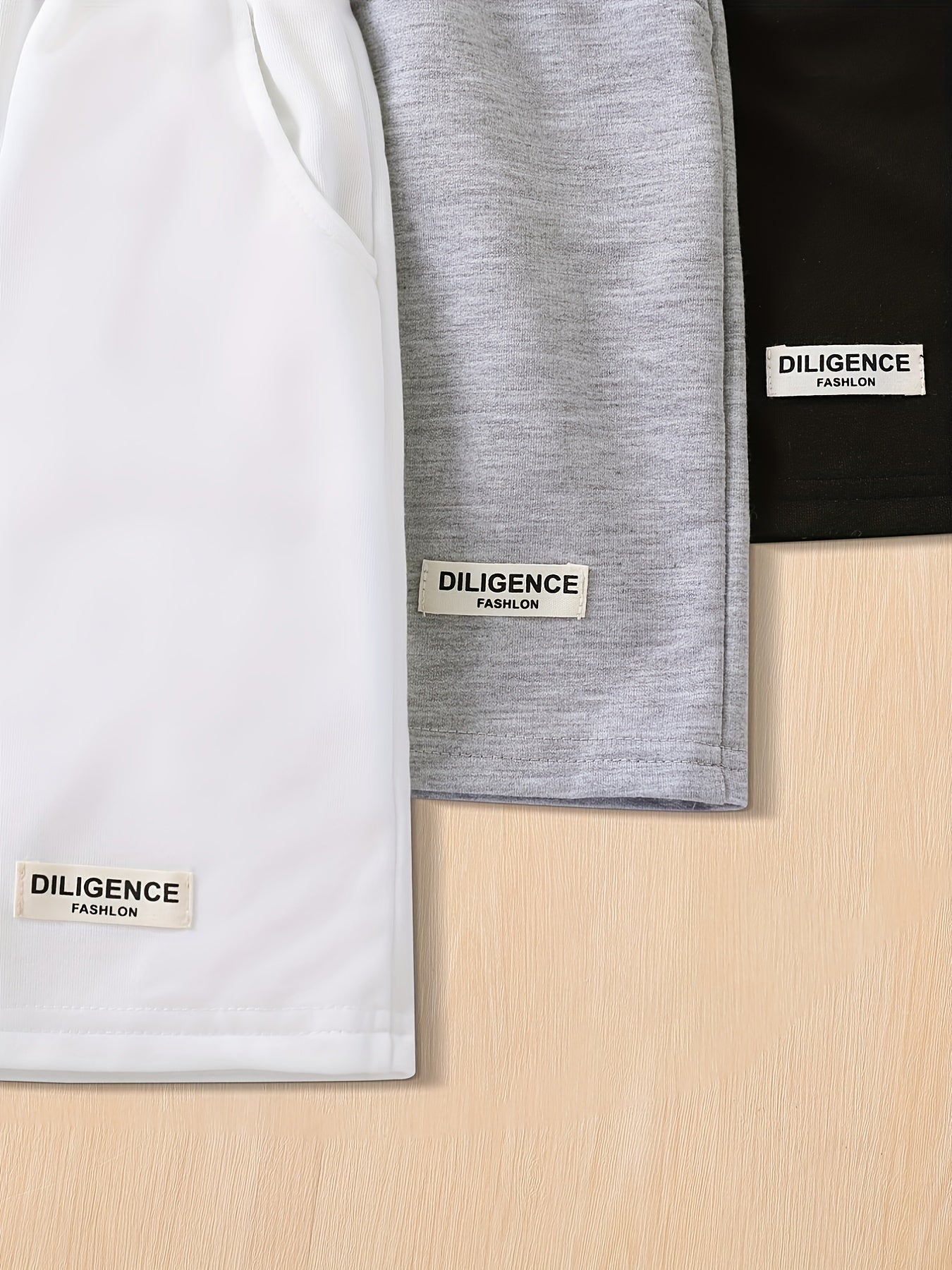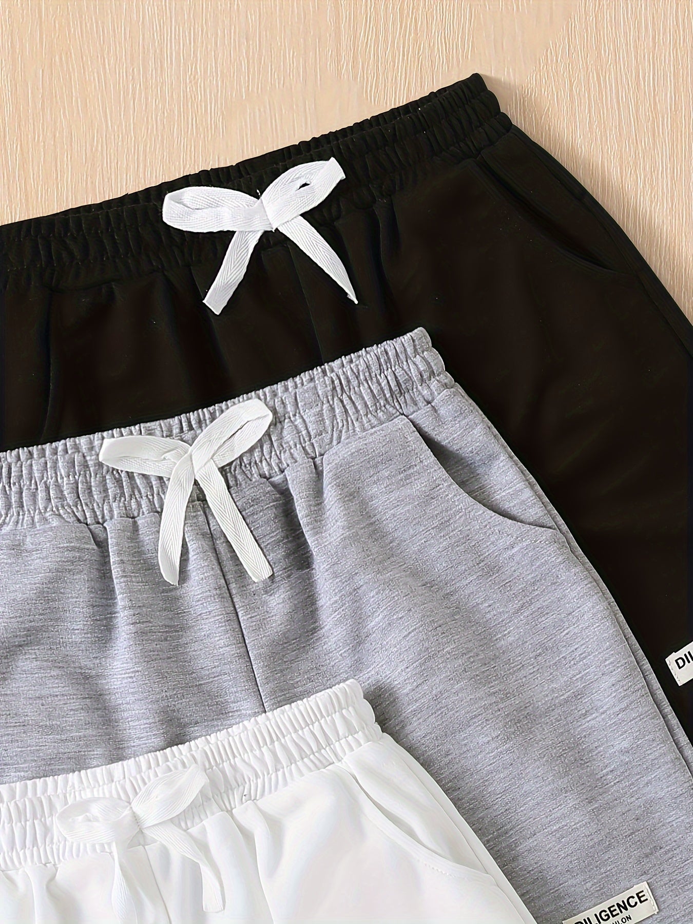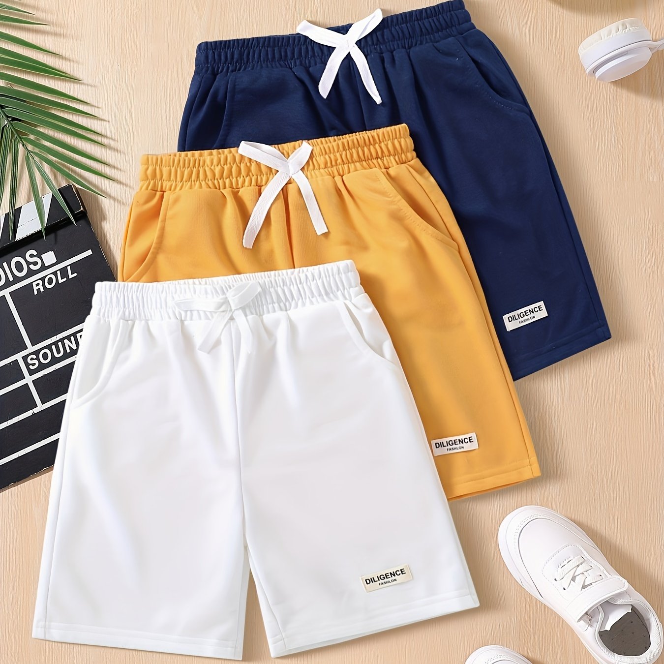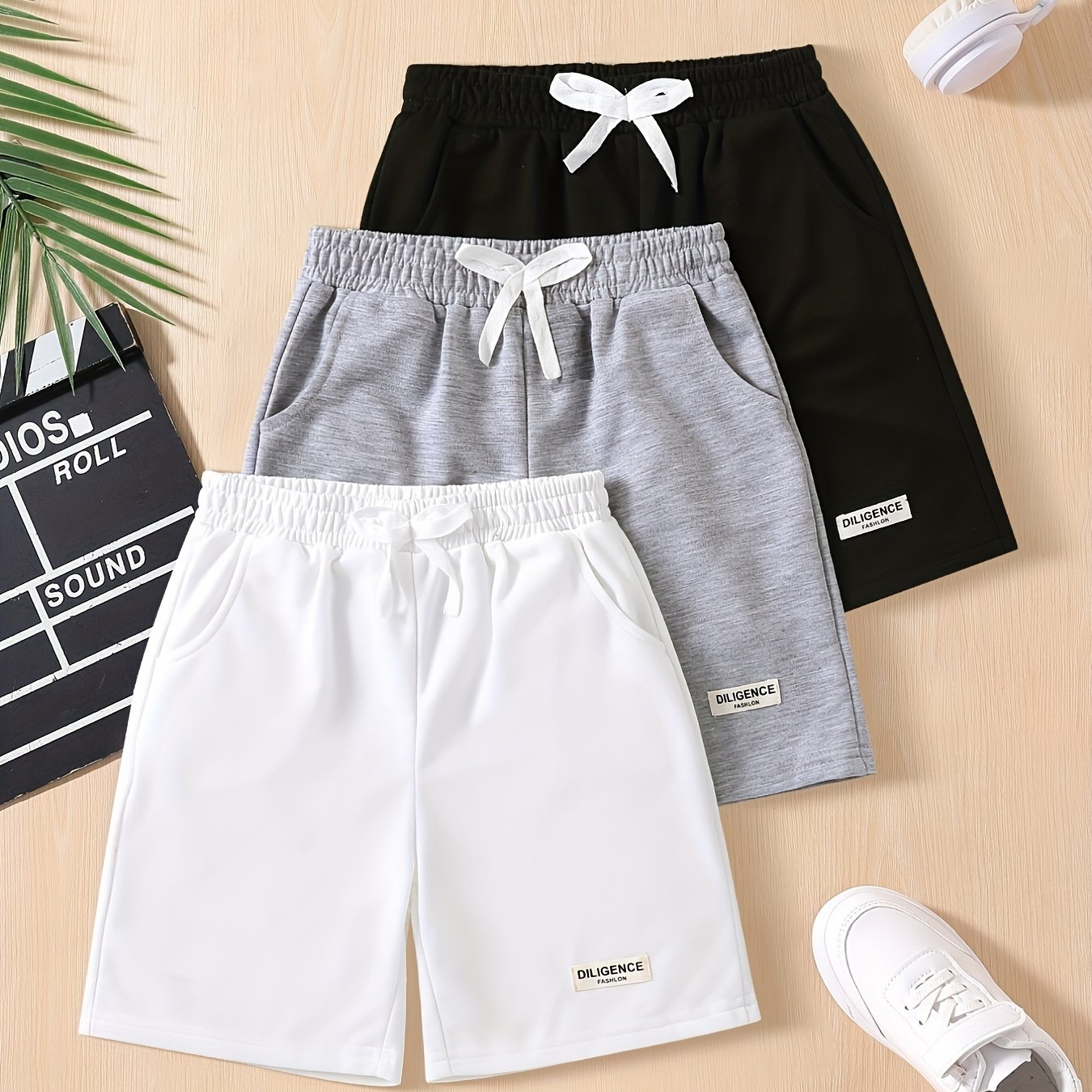 Yigitlar uchun yozgi shortlar 3-to'plam, to'liq rangli polyester to'qima, elastik bel, kundalik va faol kiyim