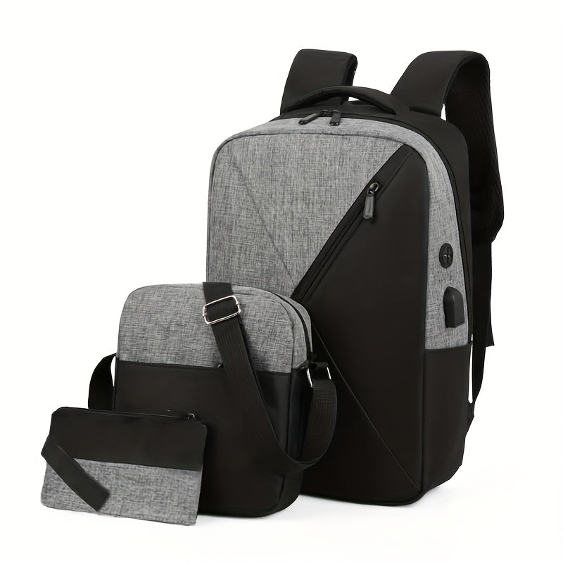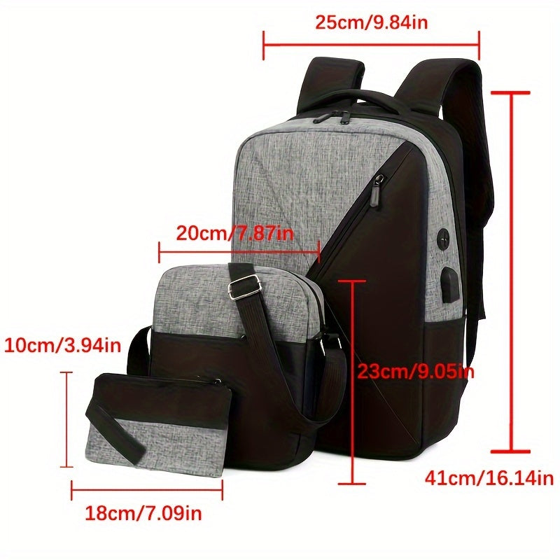 Uch qismli noutbuk ruksak to'plami suv o'tkazmaydigan polyesterdan tayyorlangan, TSA talablariga mos fermuar yopilishi bilan, kulrang, qora, qizil va ko'k ranglarda. Biznes va maktab foydalanishi uchun mos, faqat qo'l bilan yuvish.