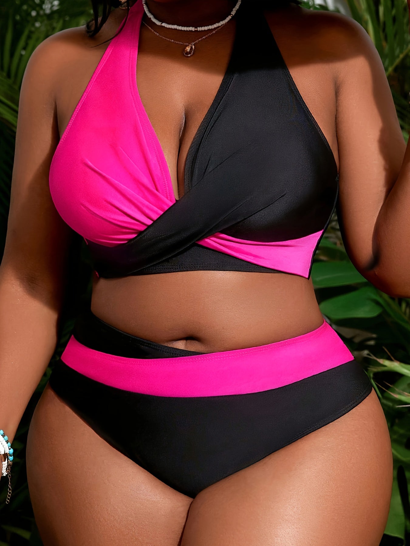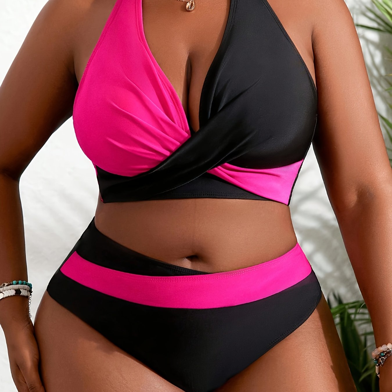TIDALOLY Katta O'lchamdagi Ikki Qismli Suvda Kiymak To'plami - Rangli Blokli Bikini, Qoltsiqsiz Yuzi, Yuqori Cho'zilish, Olib Tashlanadigan Yostiqlar
